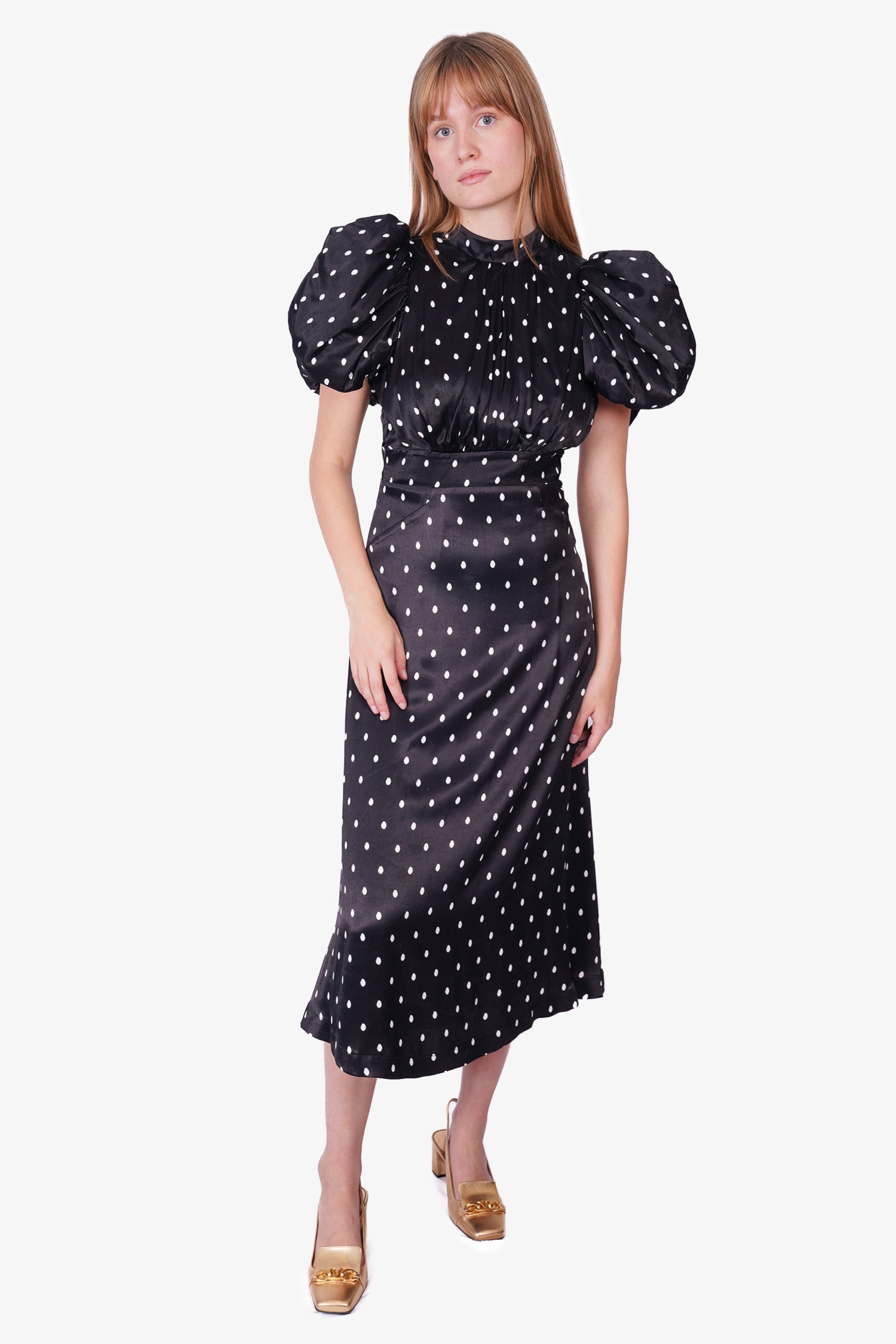 Birger Christensen Black Polka Dot Open Back Puff Sleeve Maxi Dress Size 2 'As Is'