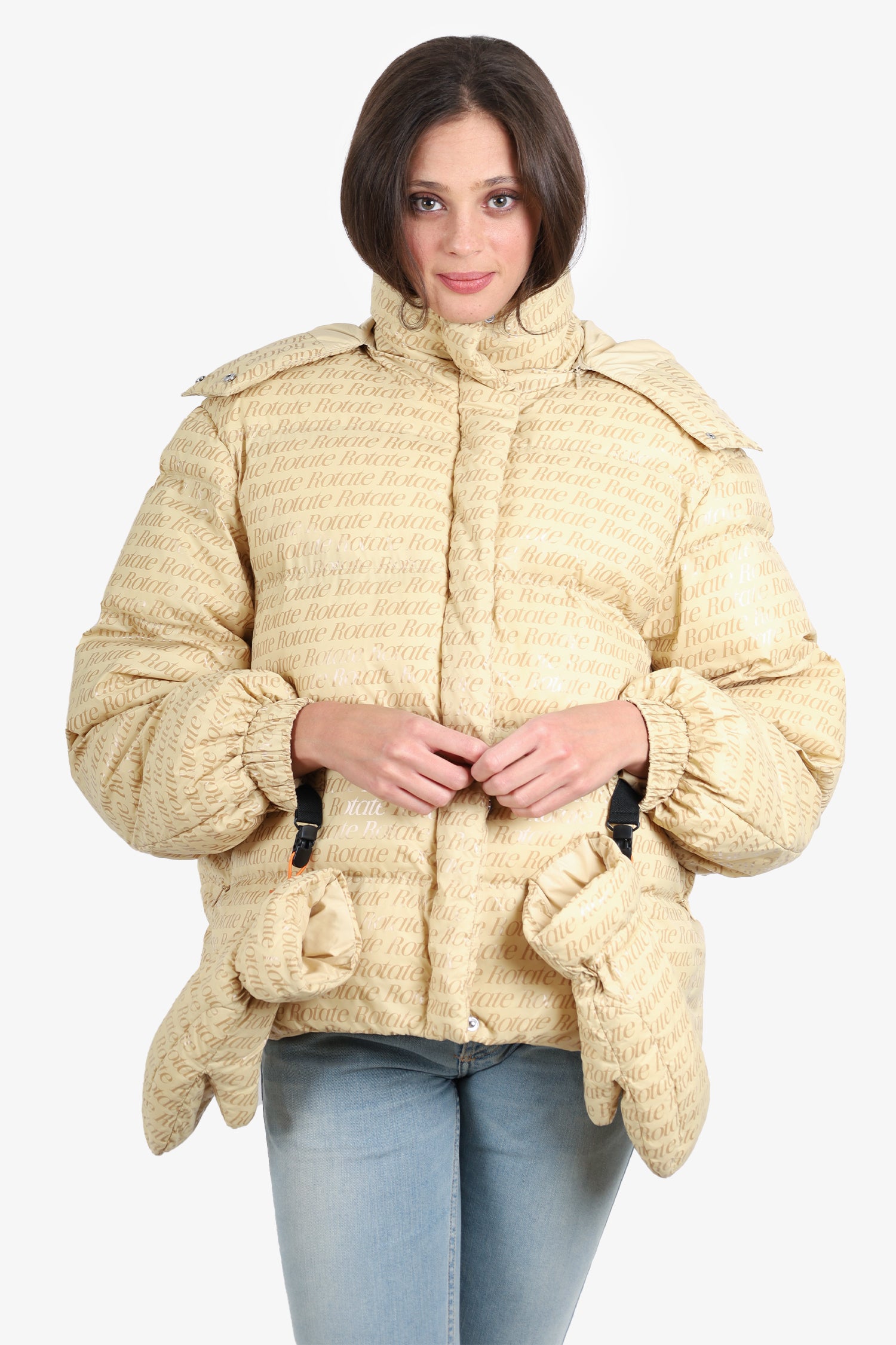 Birger Christensen Yellow Puffer Coat with Detachable Mittens Size M
