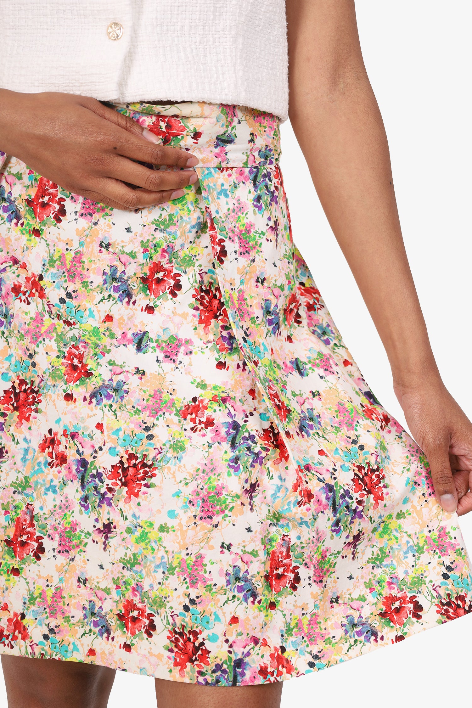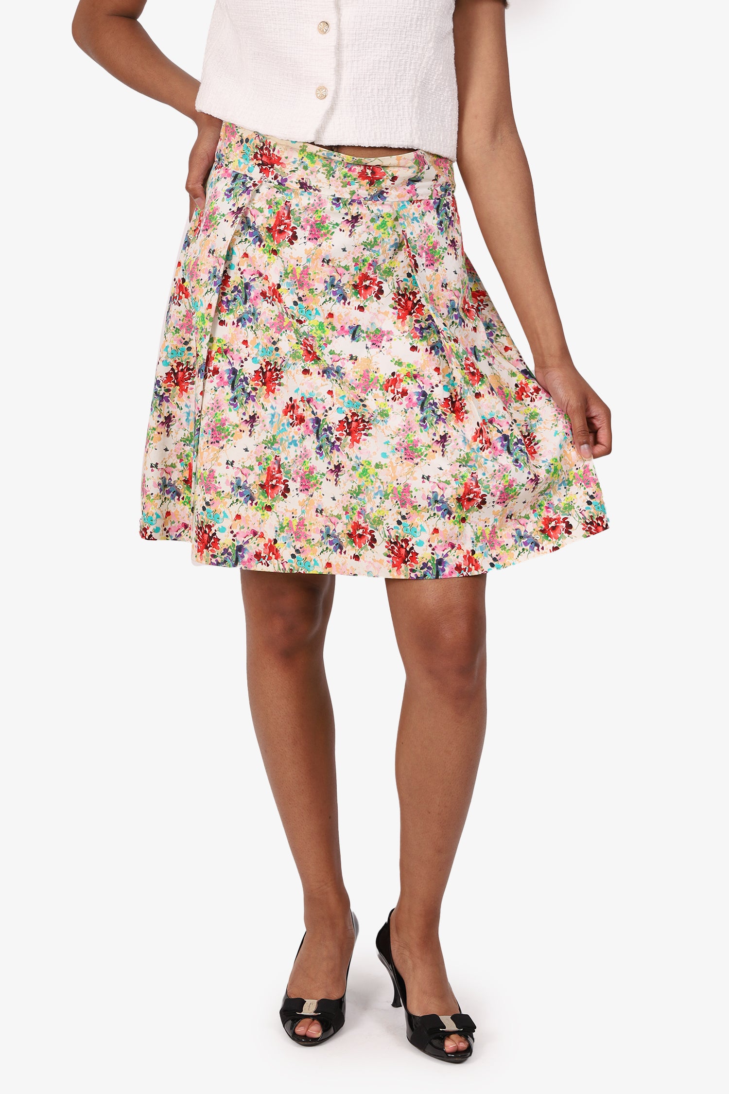 Refresh availabilityBlack Halo White/Multicolor Floral Print Mini Skirt. Slip-on. Rear zip closure. Attached interior lining. Tonal stitching.