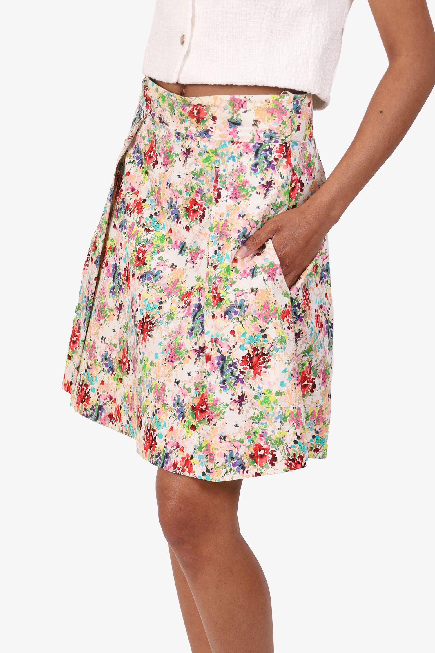 Black Halo White/Multicolor Floral Print Mini Skirt Size 6