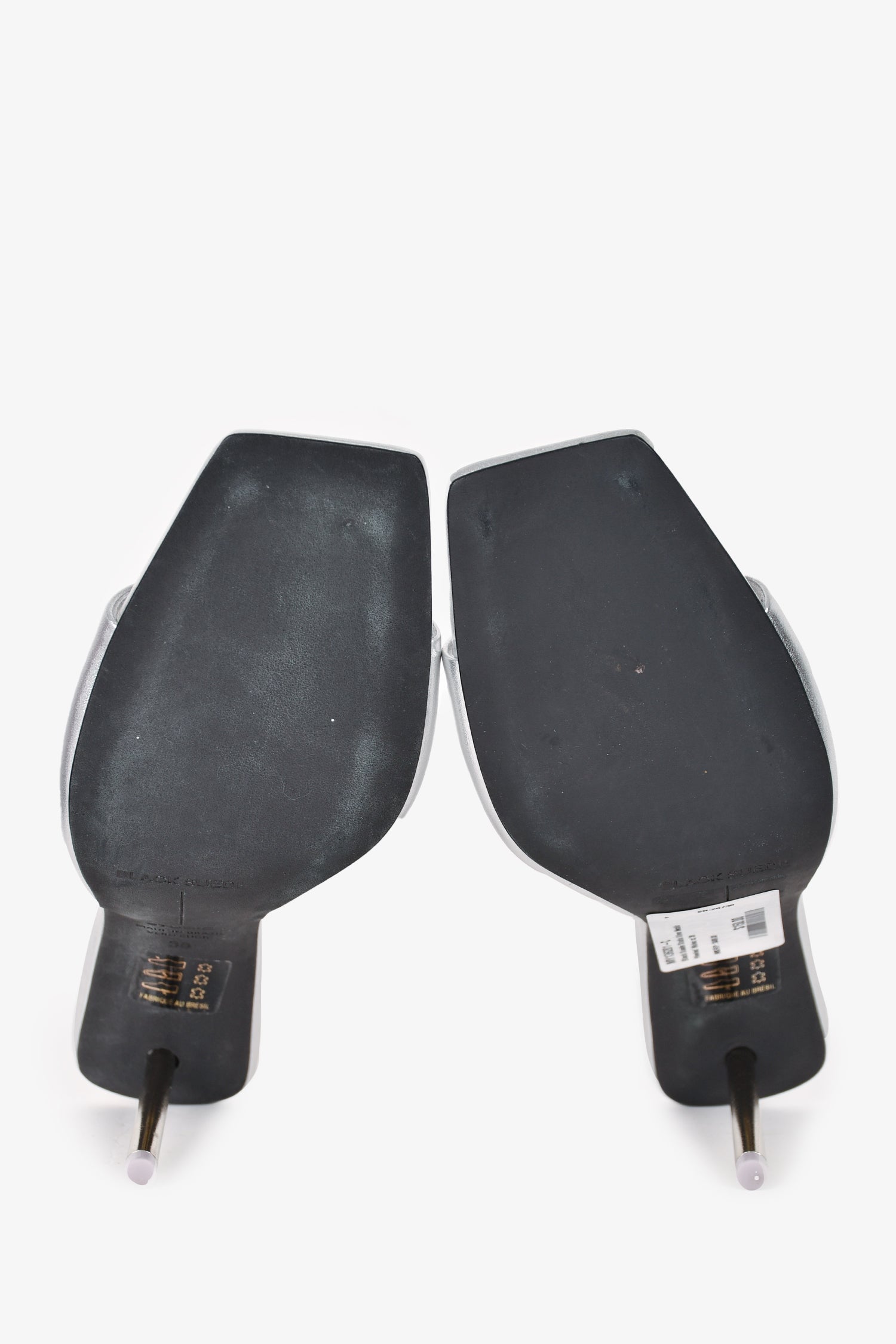 Black Suede Studio Silver Metallic Heeled Mules Size 38