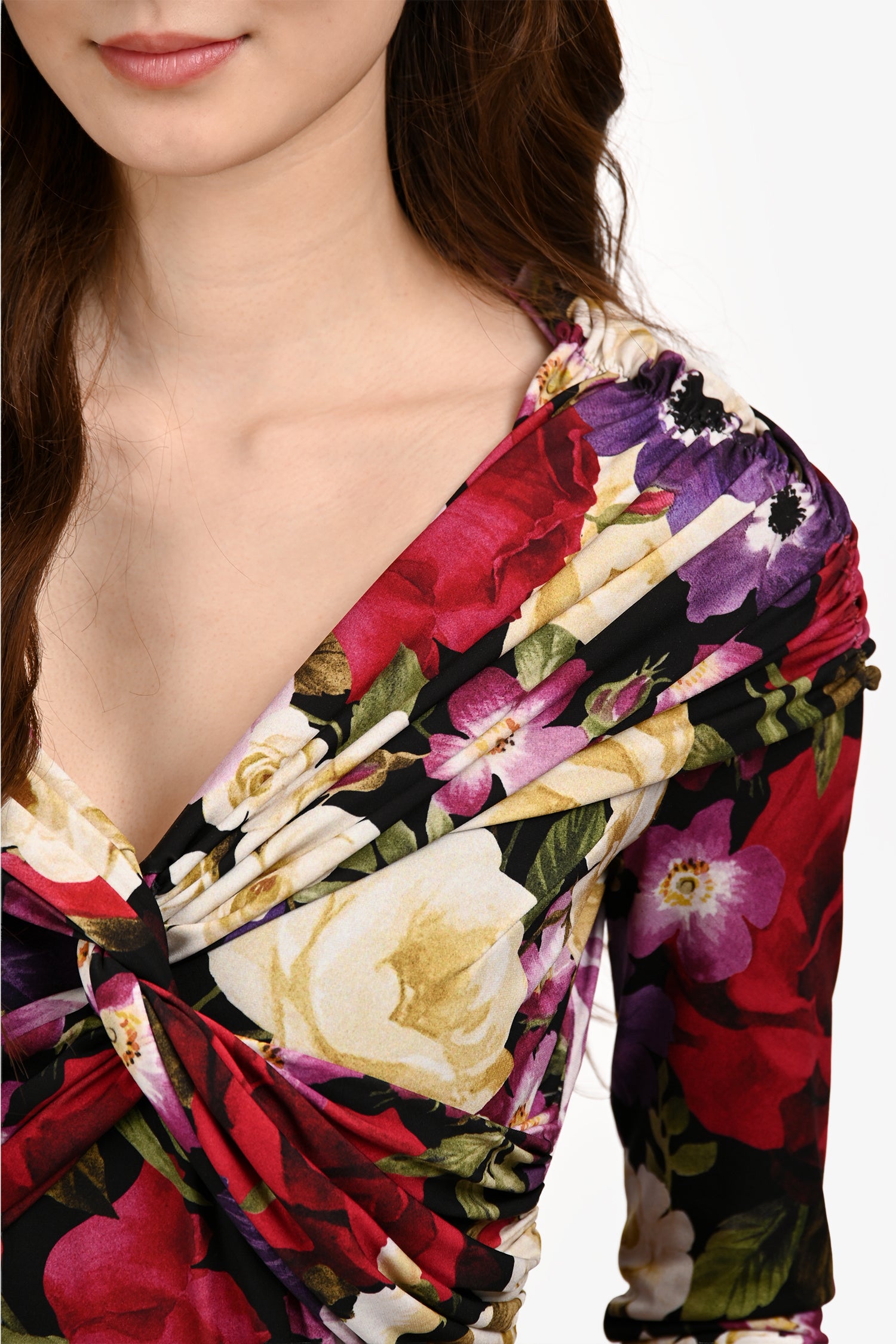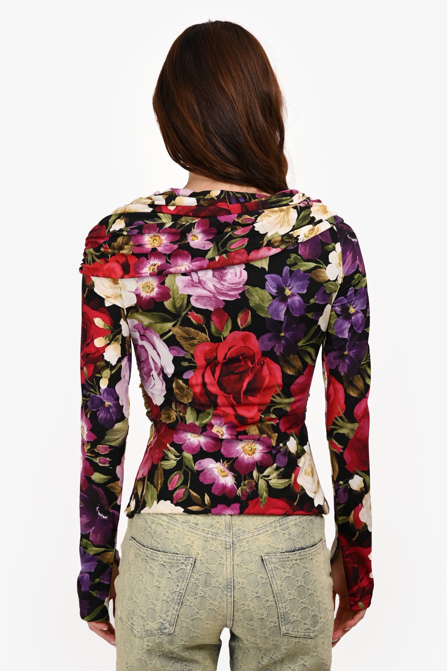 Blumarine Black/Multicolour Floral Print Off Shoulder Ruched Top Est. Size S