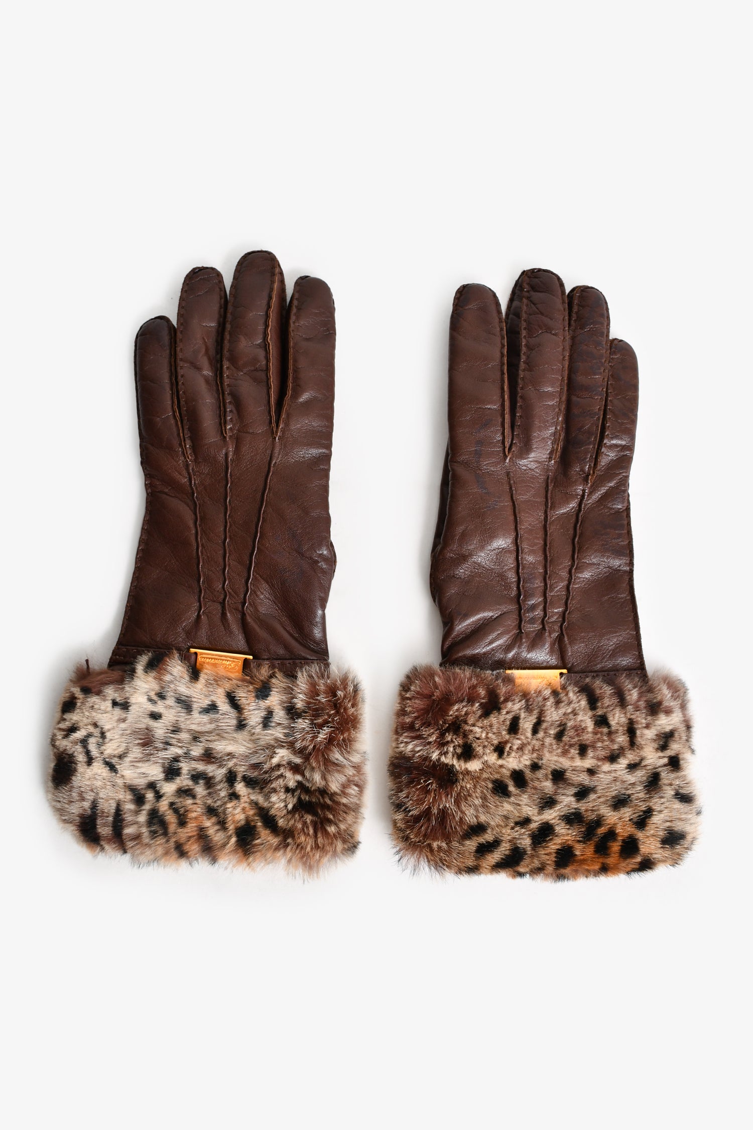 Refresh availabilityBlumarine Brown Leather/Fur Gloves. Lined.