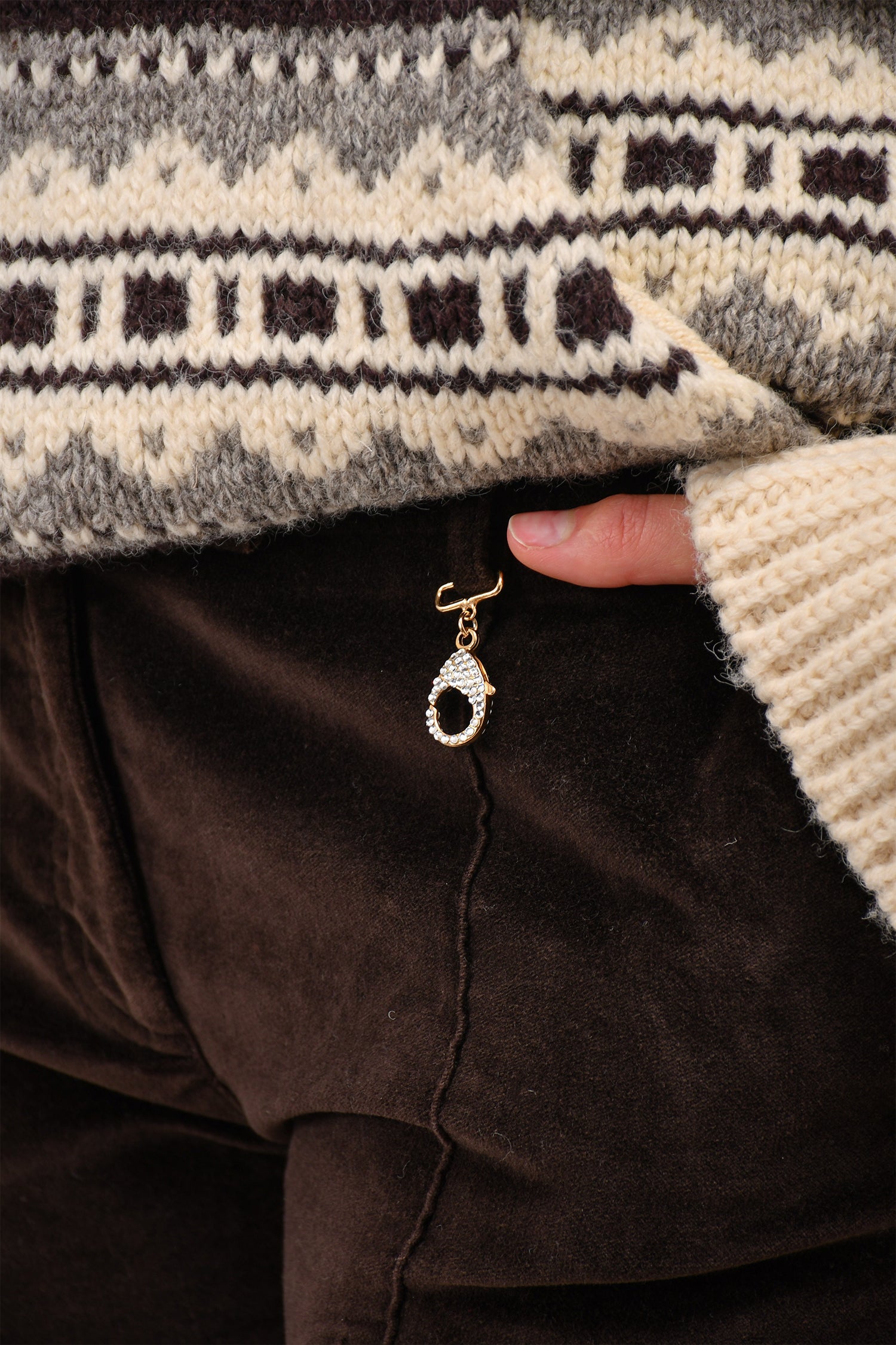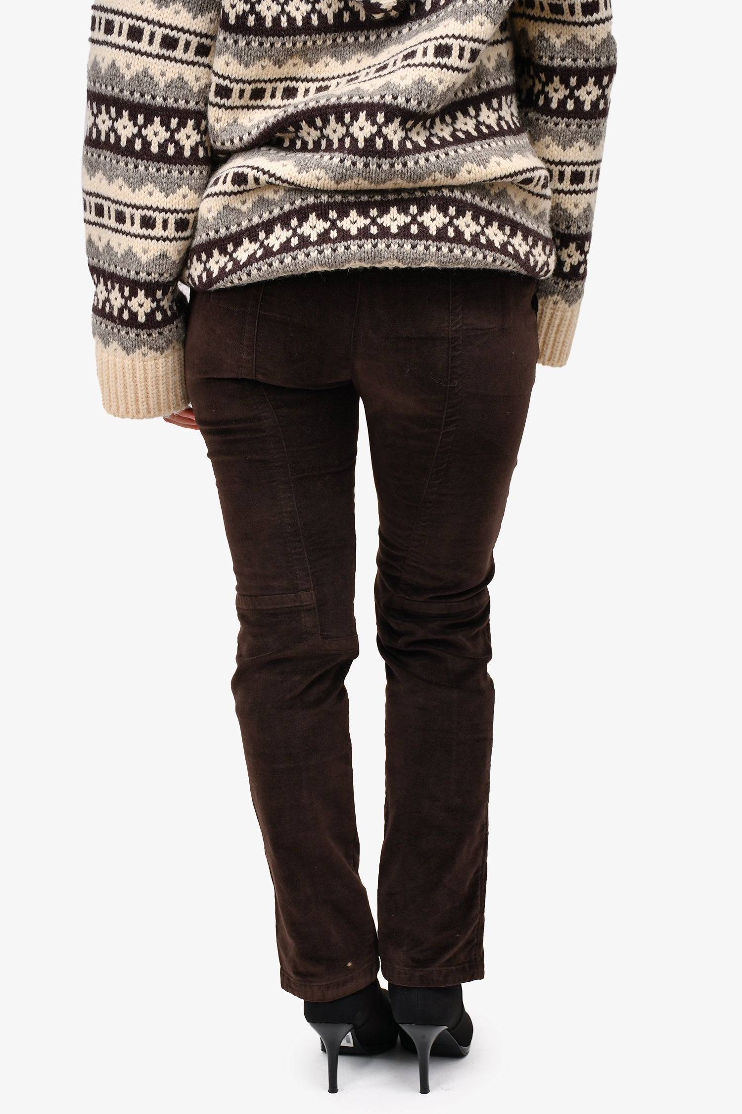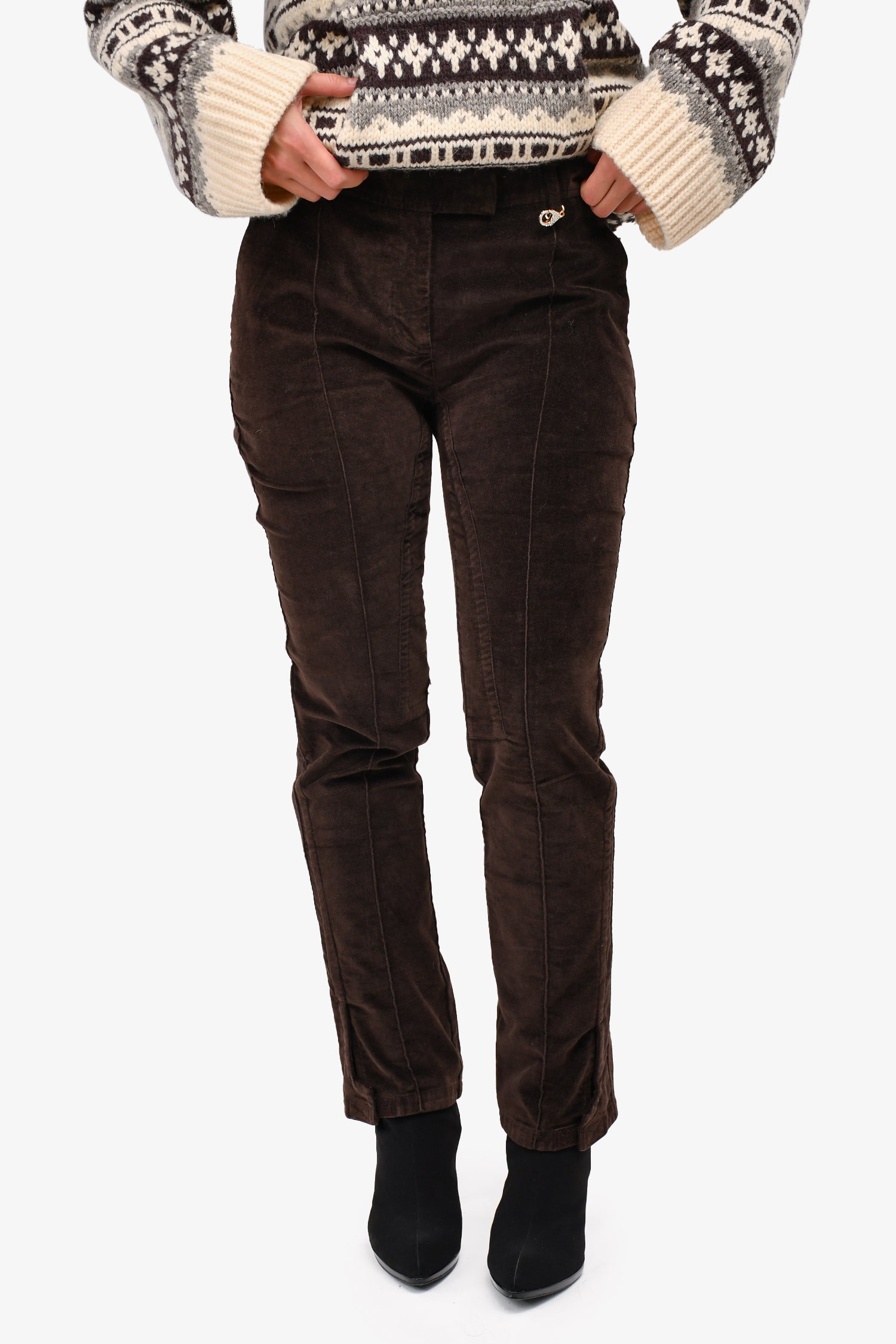 Blumarine Brown Velvet Low Rise Pants with Crystal Keychain Detail Size 46 IT