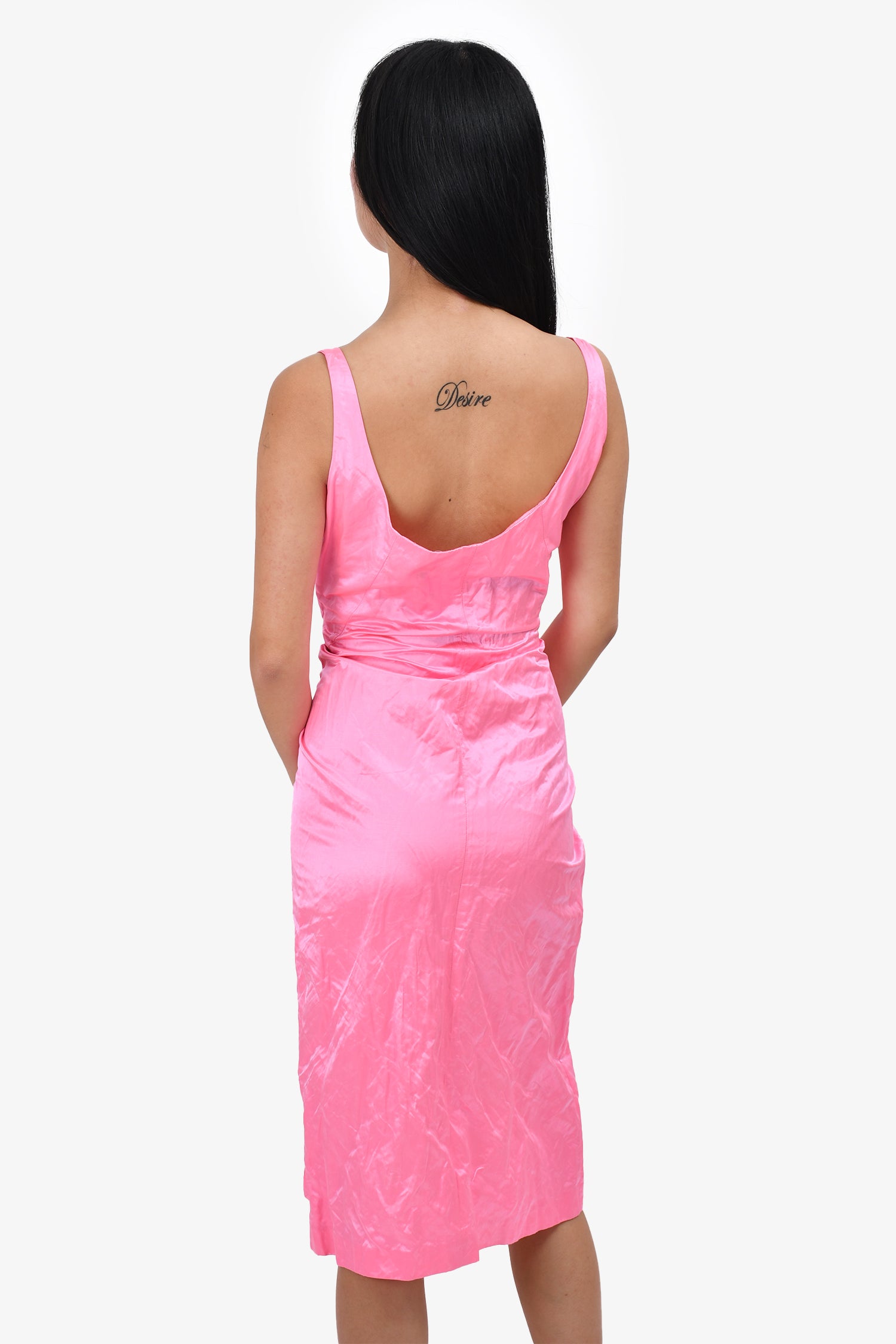 Blumarine Hot Pink Crinkled Satin Embroidered Slit Midi Dress Size 6