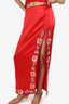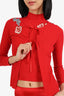 Blumarine Red Floral Applique Top + Cardigan + Maxi Skirt Size 40 Set