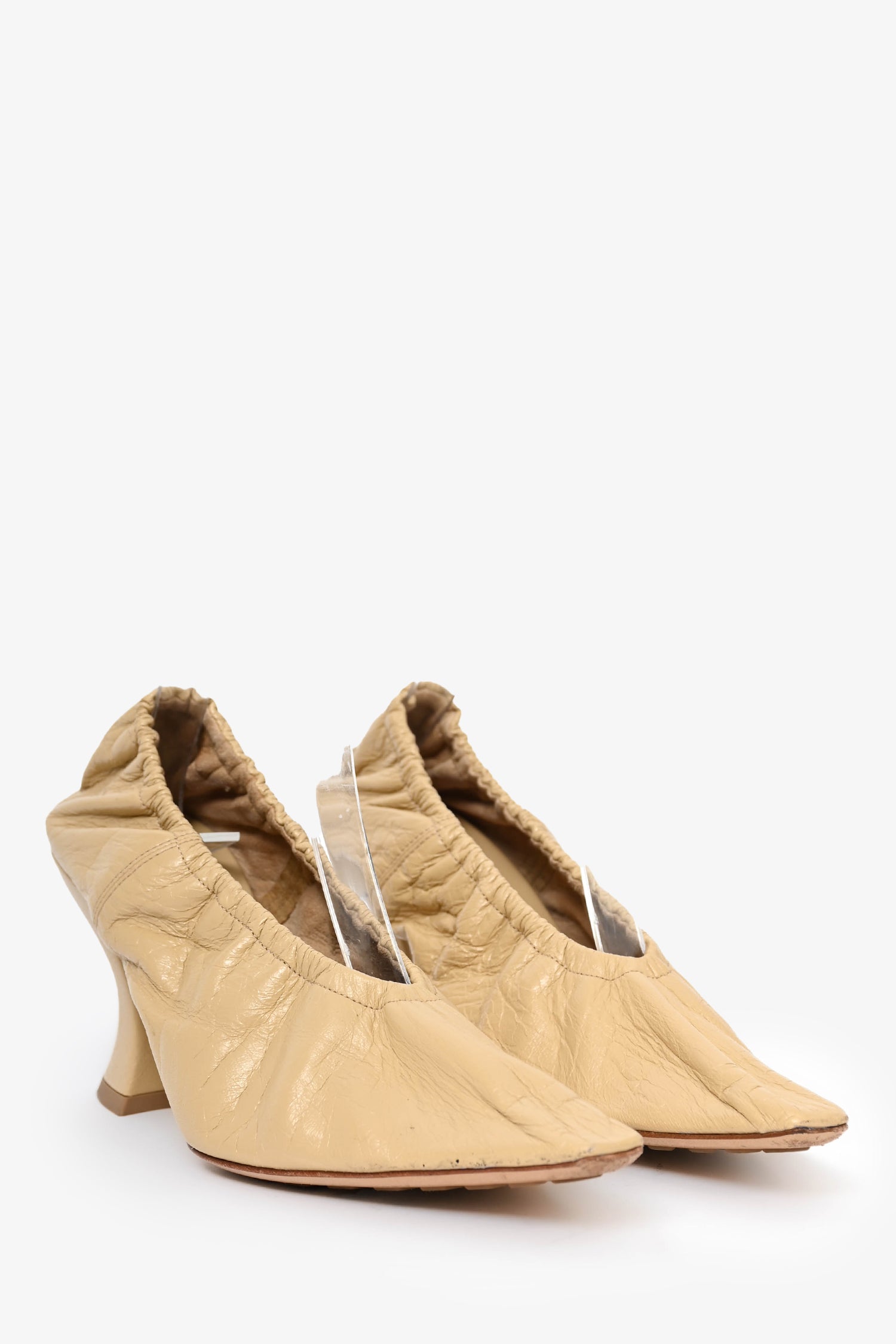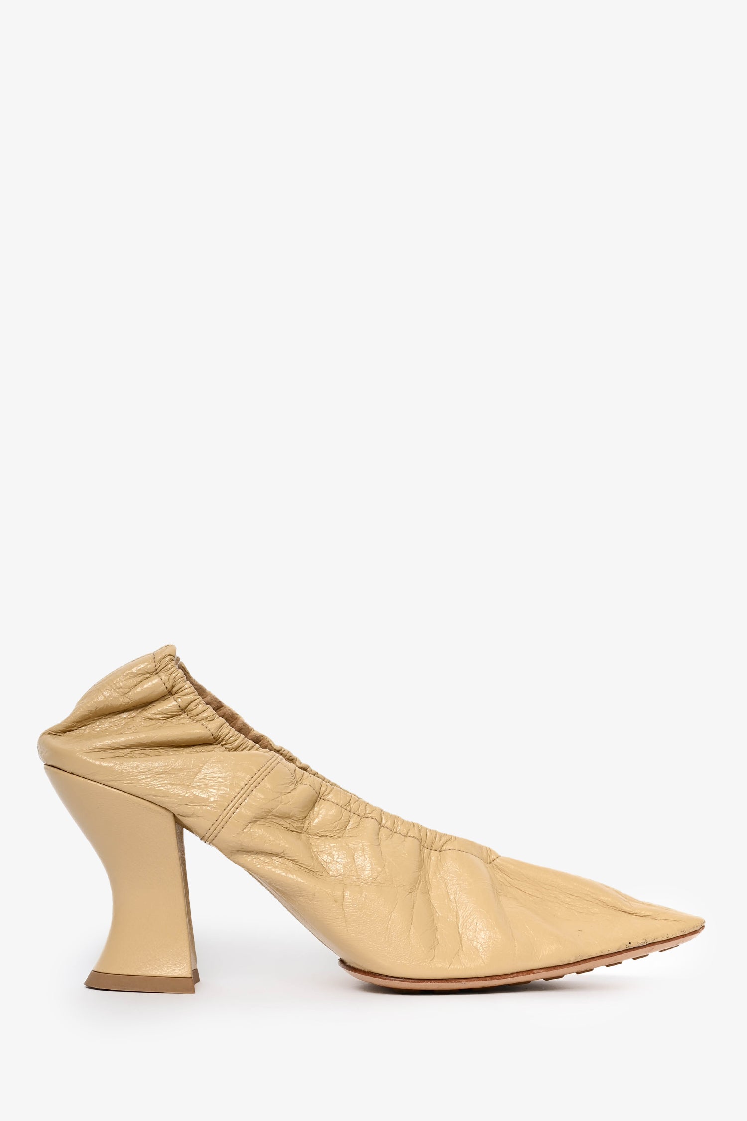 Bottega Veneta Beige Crinkled Leather 'Almond' Heels Size 36.5 (As Is)