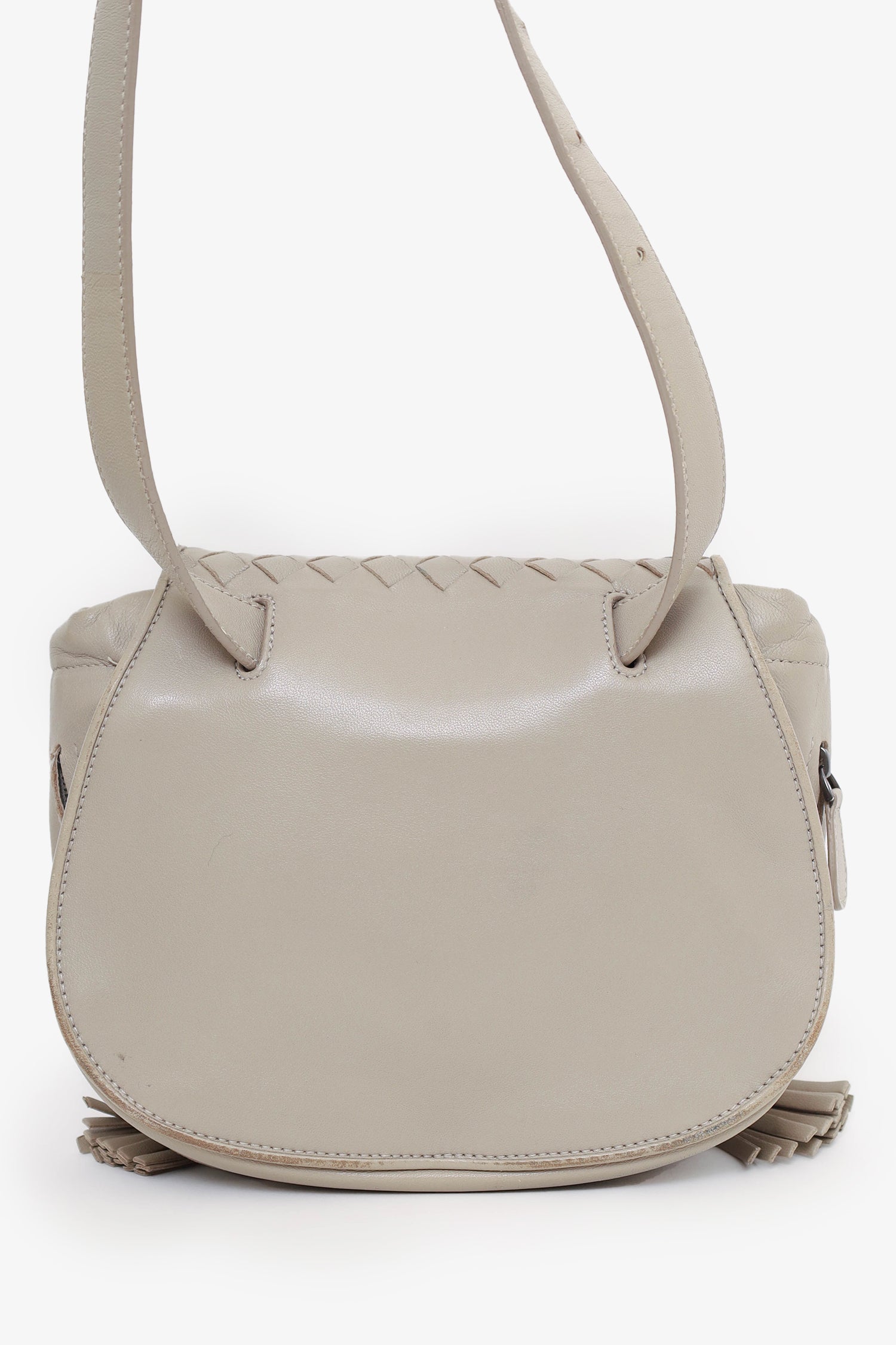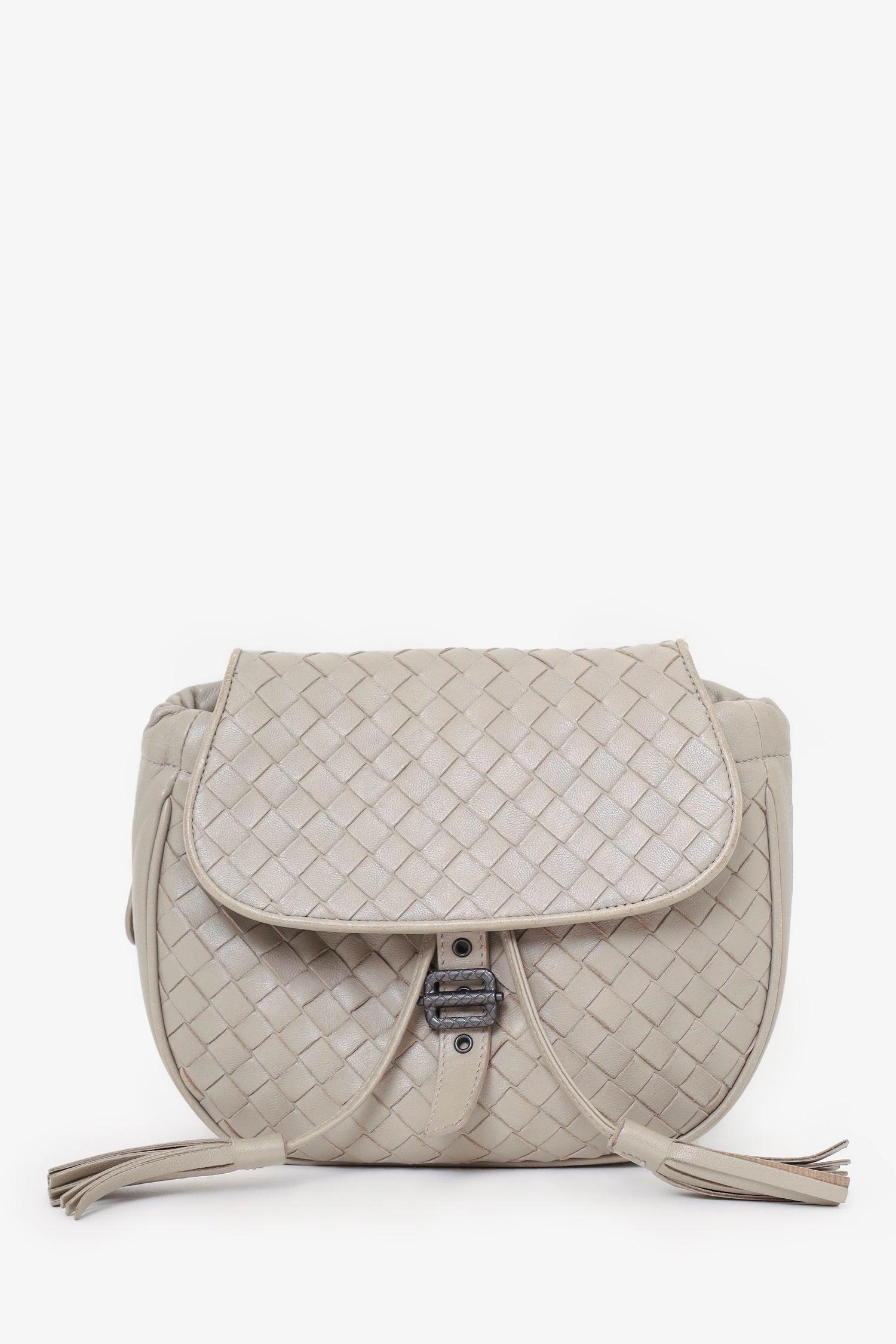 Bottega Veneta Beige Intrecciato Leather Tassel Flap Waist Bag