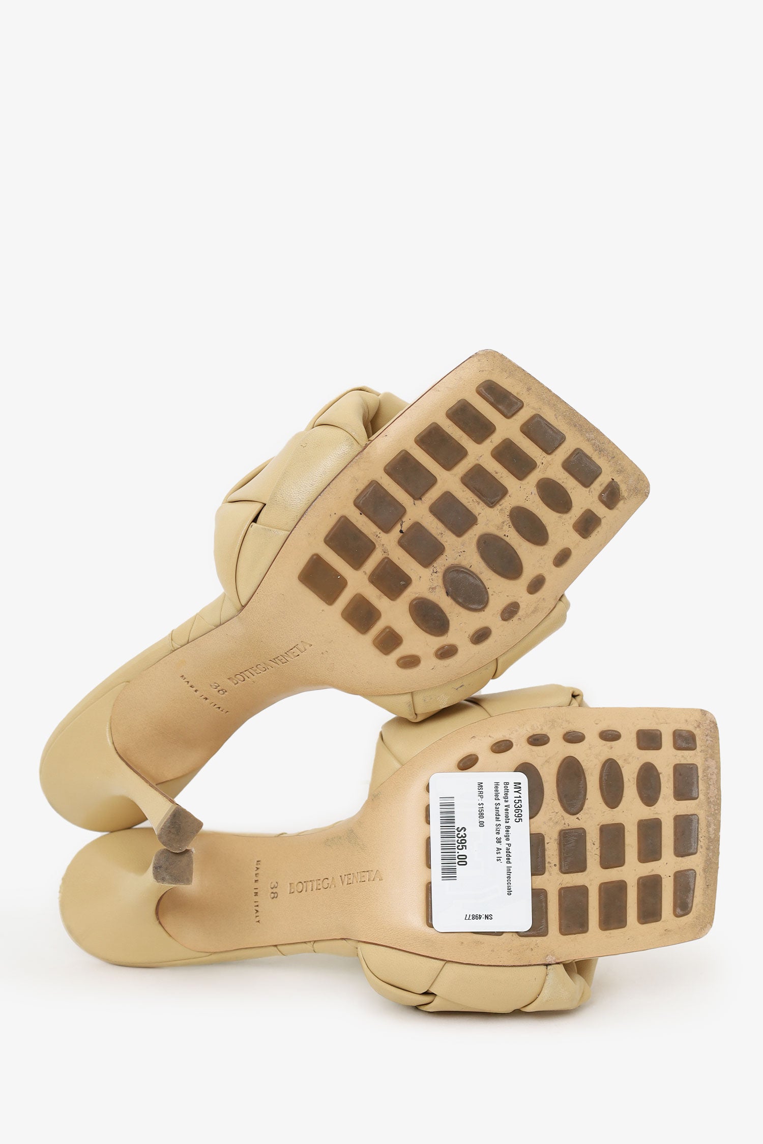 Bottega Veneta Beige Padded Intrecciato Heeled Sandal Size 38' As Is'