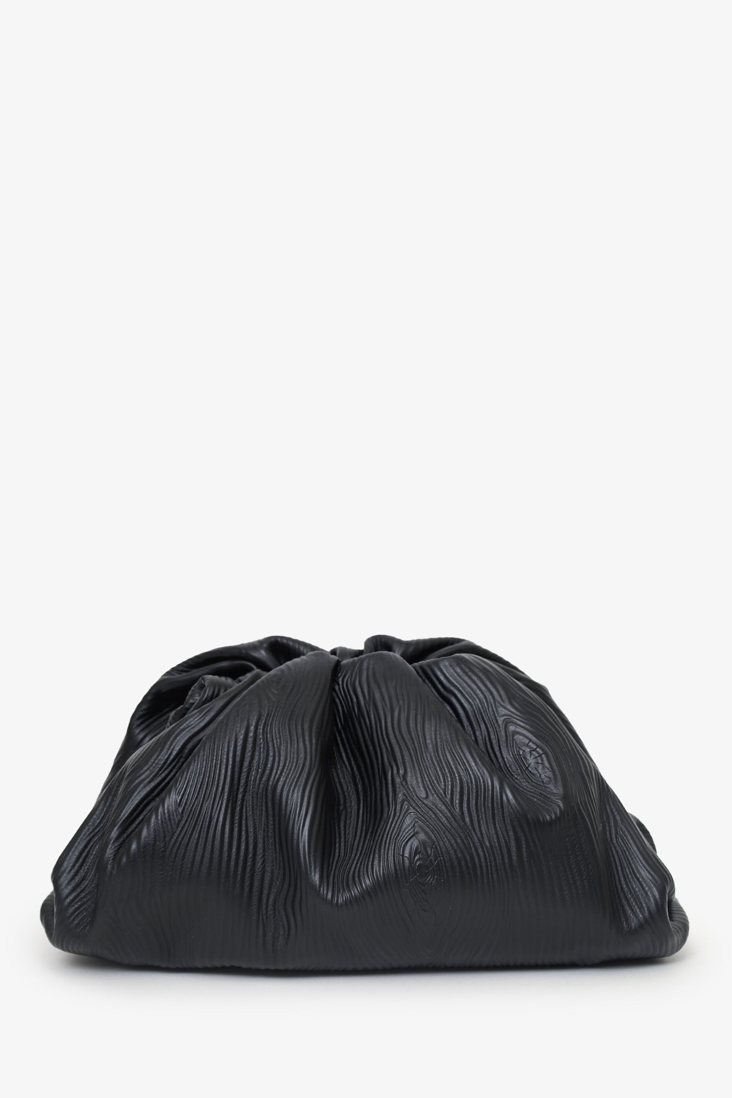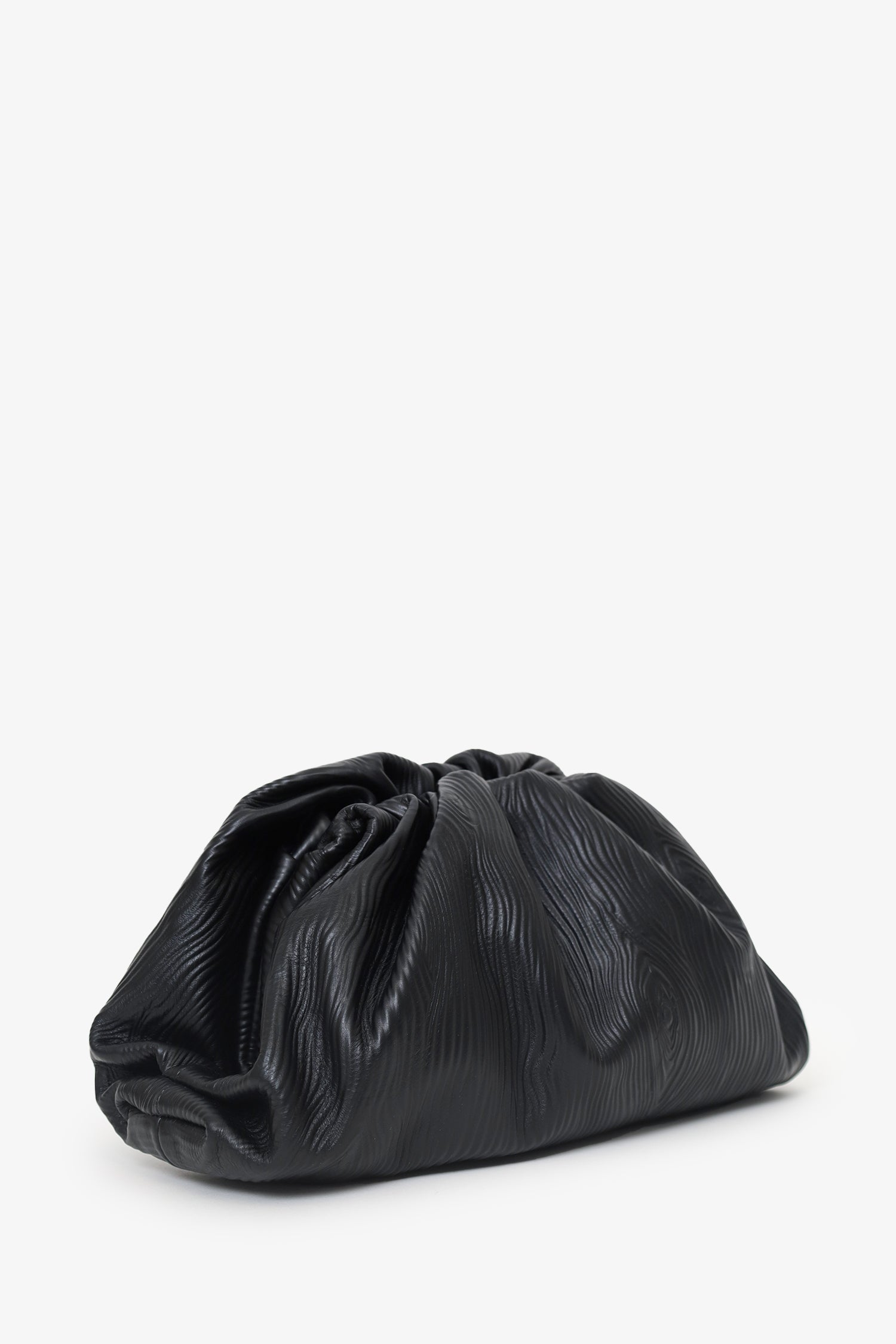 Refresh availabilityBottega Veneta Black Bark-Embossed Nero Oversized The Pouch. Top magnetic closure. Open leather-lined interior. Silver-tone hardware. Tonal stitching.