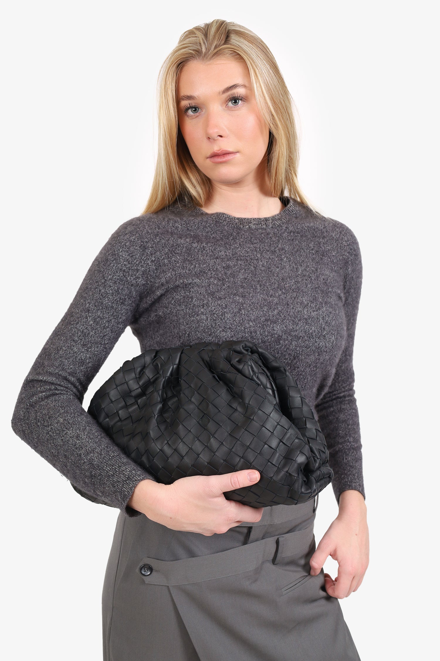 Bottega Veneta Black Intrecciato Leather Large The Pouch