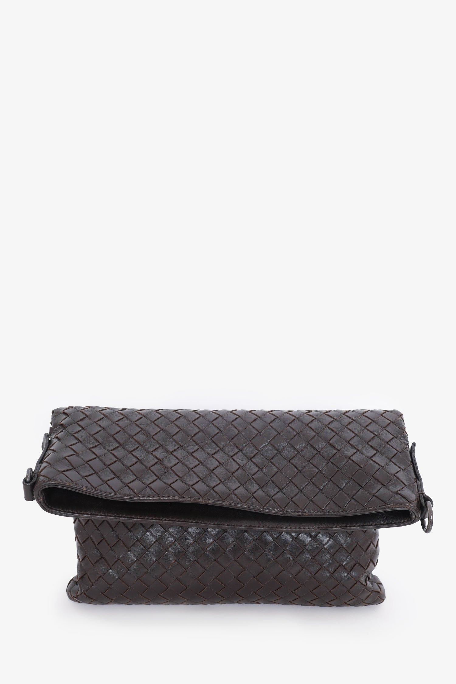Refresh availabilityBottega Veneta Black Intrecciato Leather Messenger Bag. Top zip closure. Single internal slip pocket. Removable and adjustable canvas/leather crossbody strap. Brass/silver tone hardware. Tonal stitching.