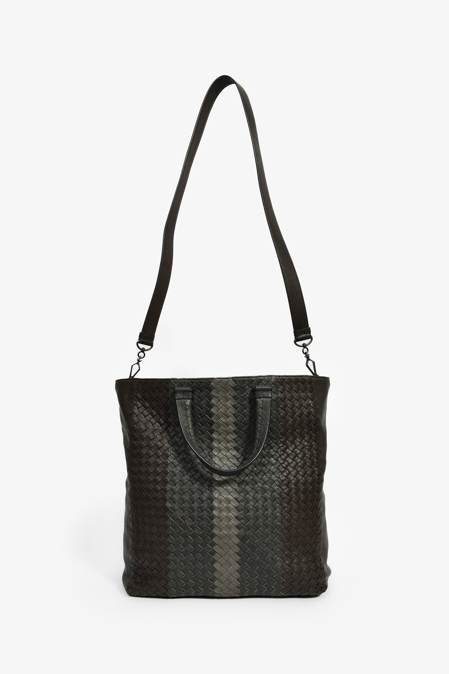 Refresh availabilityBottega Veneta Black Intrecciato Leather Top Handle Tote Bag. Concealed upper zipper. 2 top handles and an attachable shoulder strap. Lined interior with a zipped compartment. Gunmetal-tone hardware. Tonal stitching.
