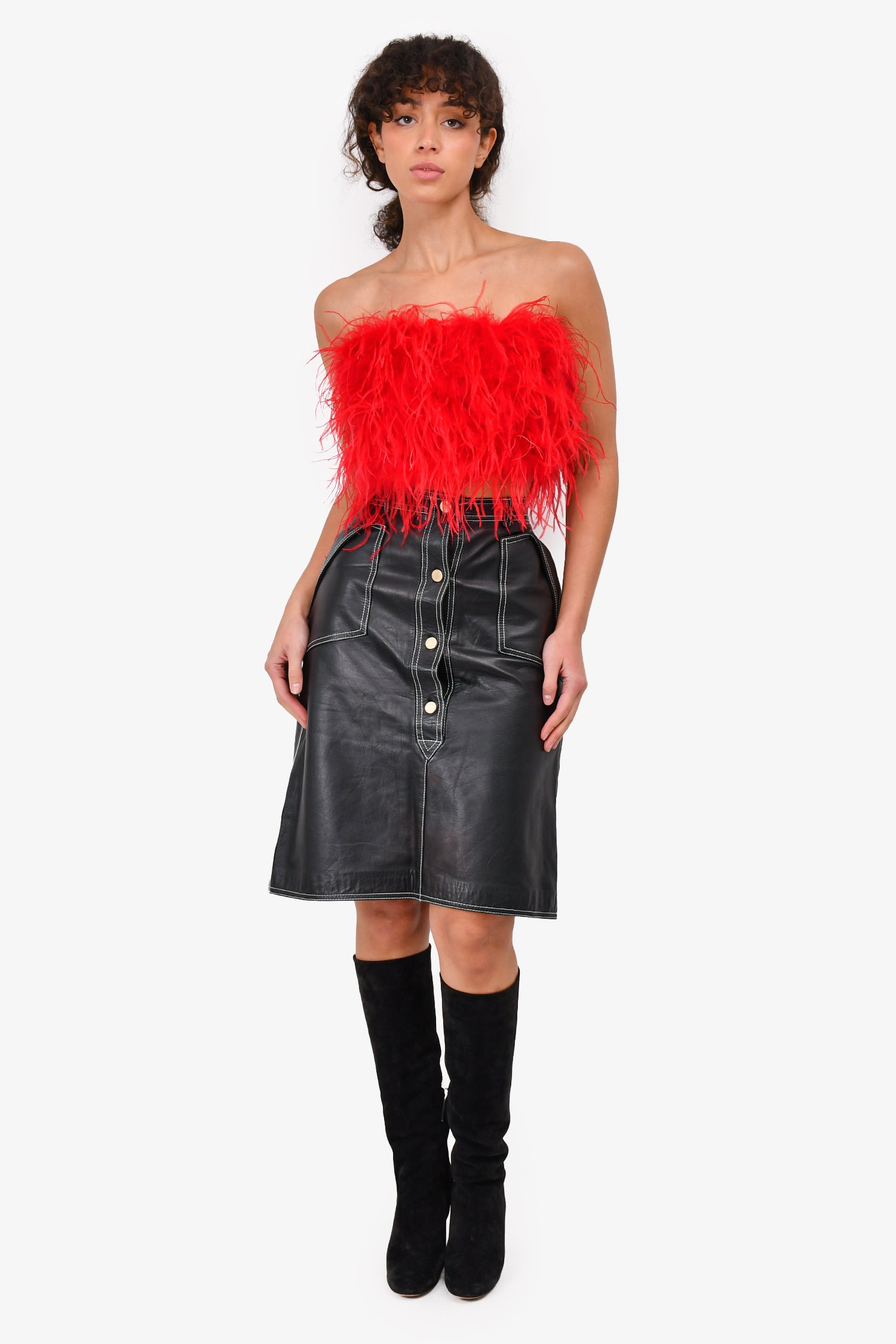 Bottega Veneta Black Leather Contrast Stitched Button Skirt Size 42