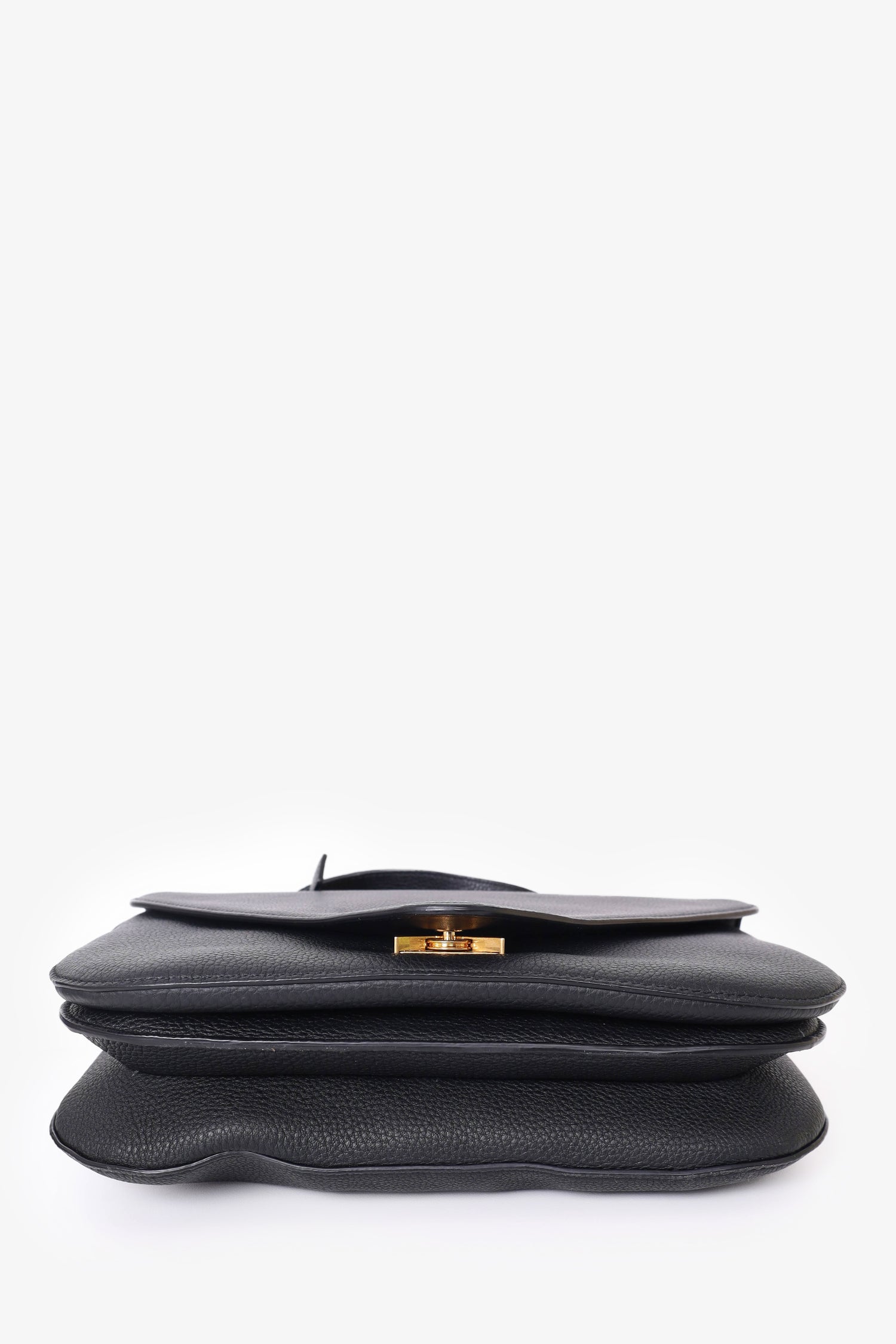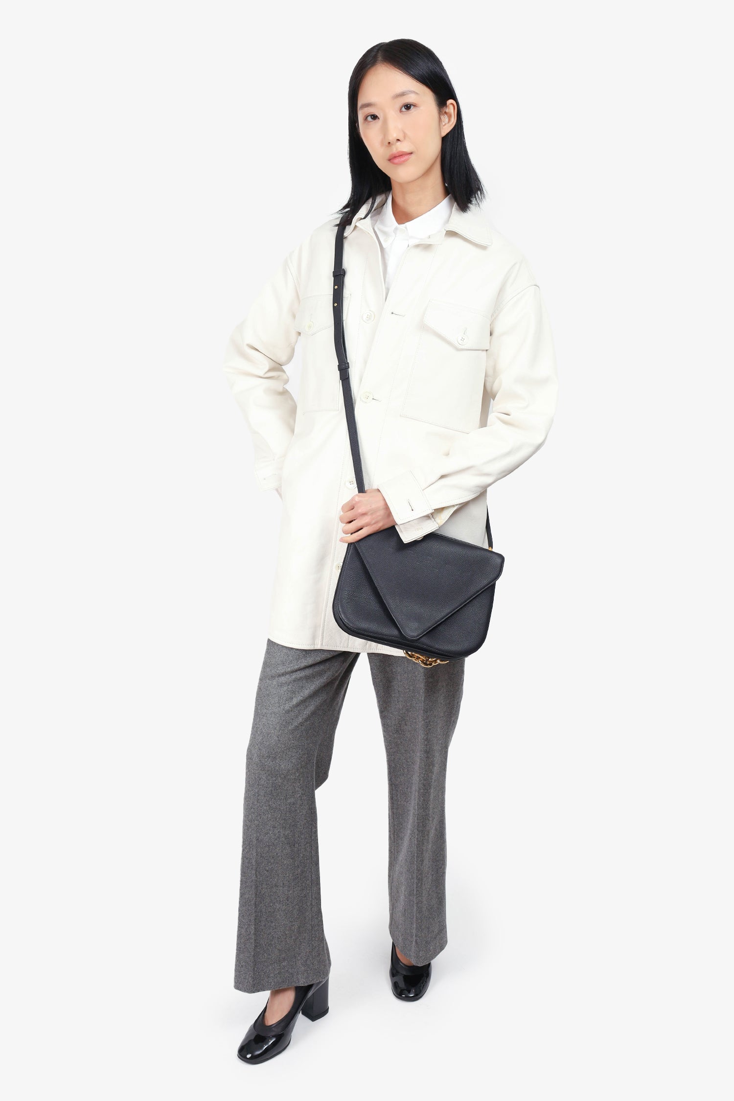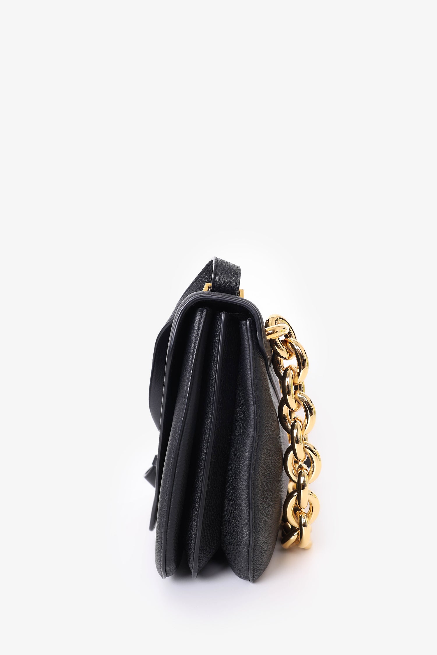 Refresh availabilityBottega Veneta Black Leather Mount Envelope Shoulder Bag. Front fold-over flap with hook closure. 2 interior sections. Single wall slip pocket. Adjustable crossbody strap. Gold-tone chain shoulder strap. Tonal stitching.