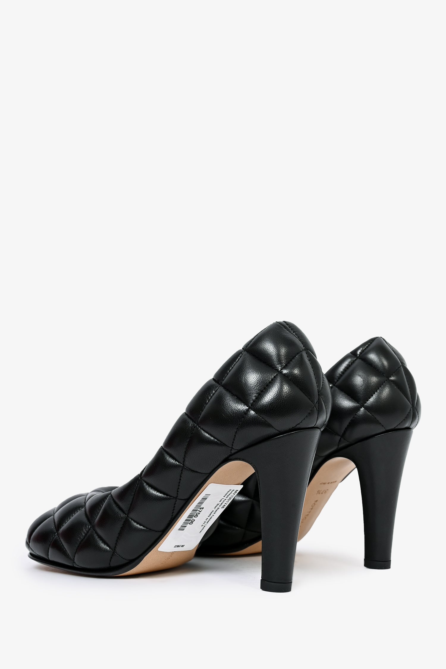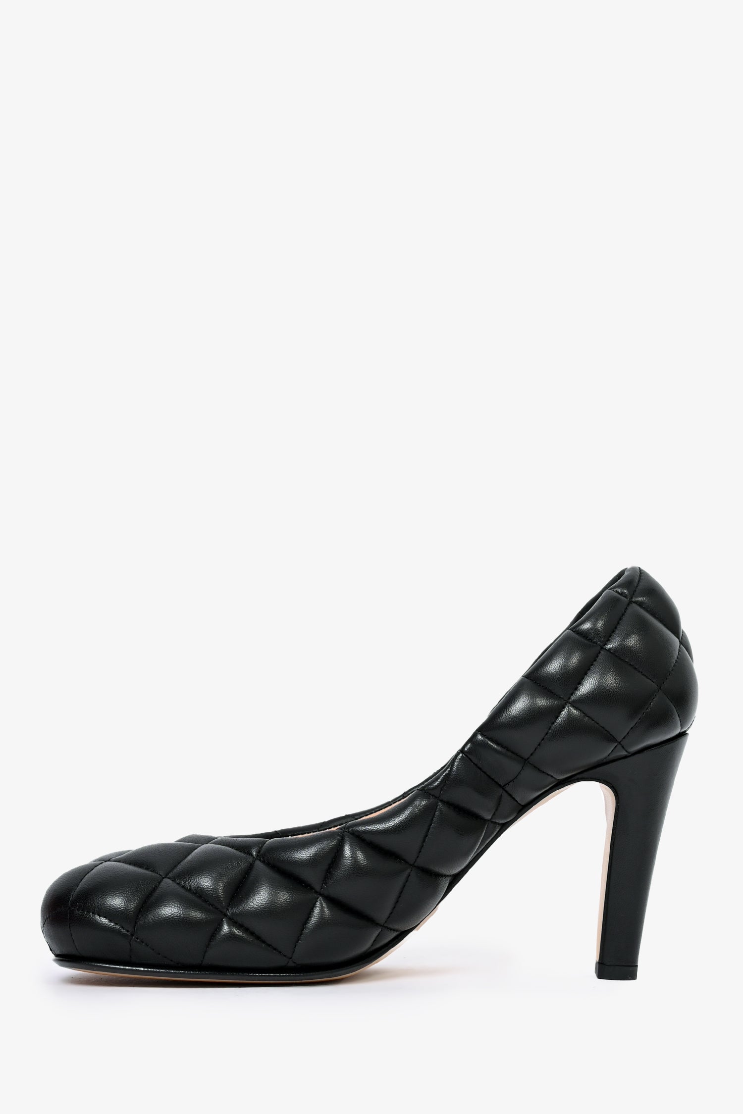 Refresh availabilityBottega Veneta Black Padded Leather Square Toe 'Bloc' Heels. Square toe. Tonal stitching. Leather covered heel.