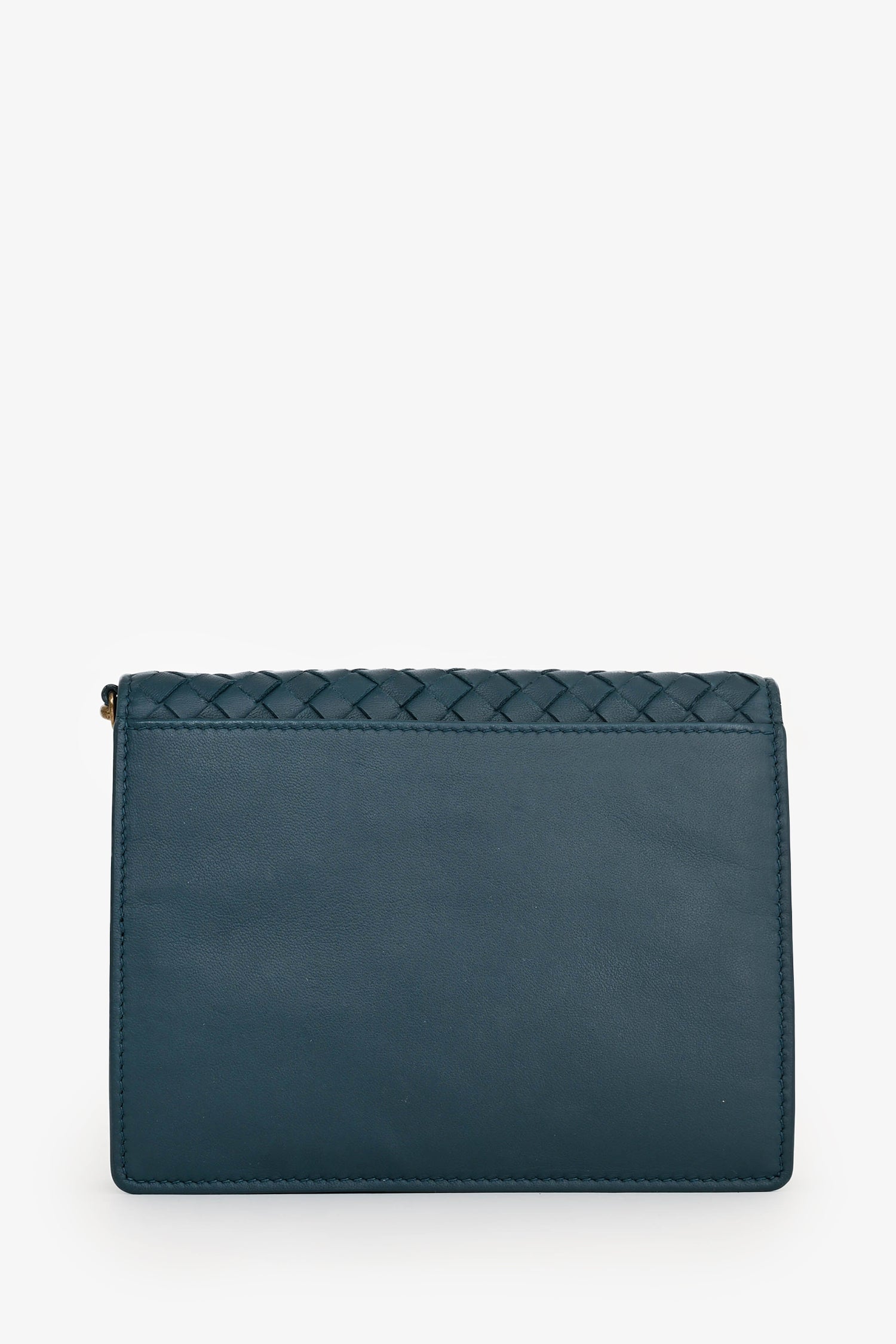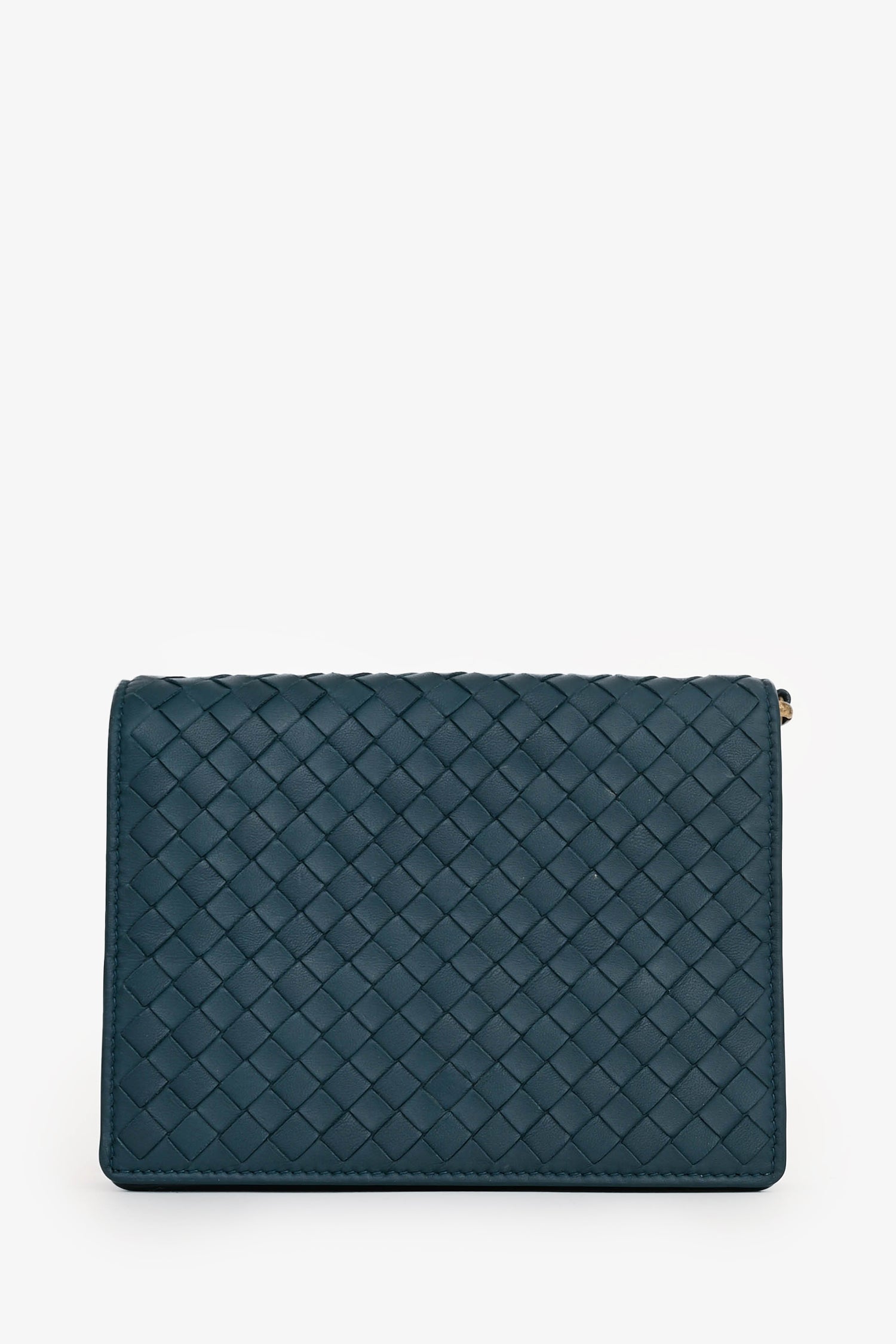 Bottega Veneta Blue Intrecciato Flap Wallet on Chain