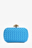 Bottega Veneta Blue Intrecciato Woven Satin Knot Clutch