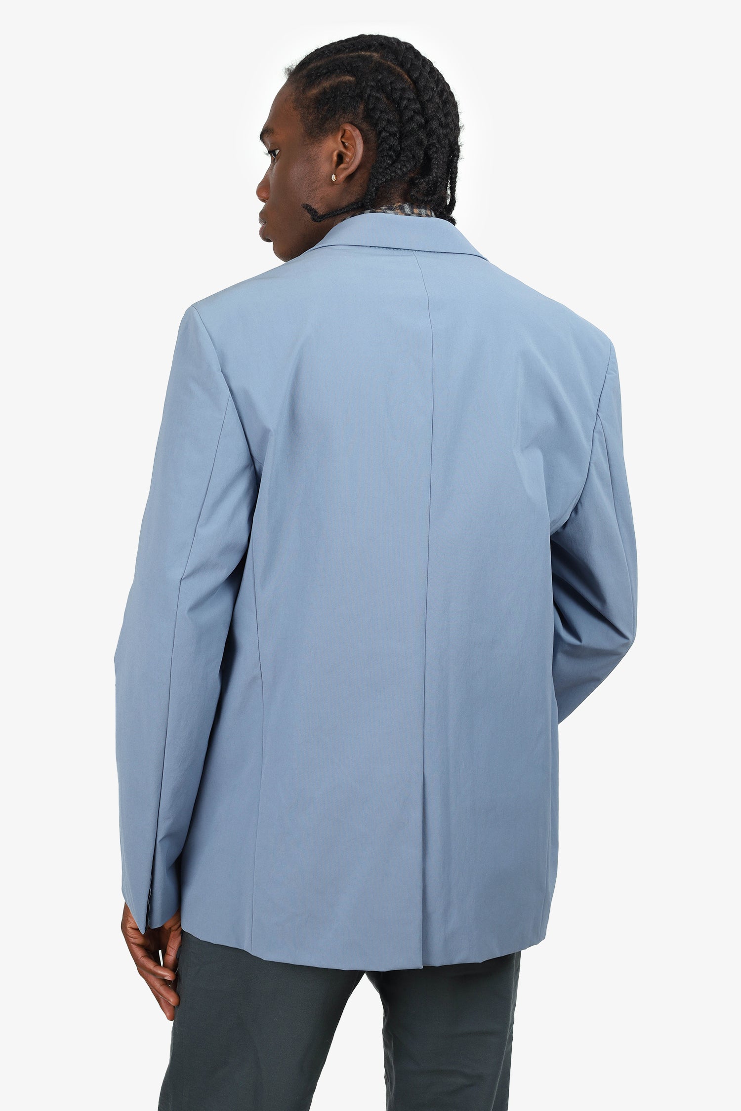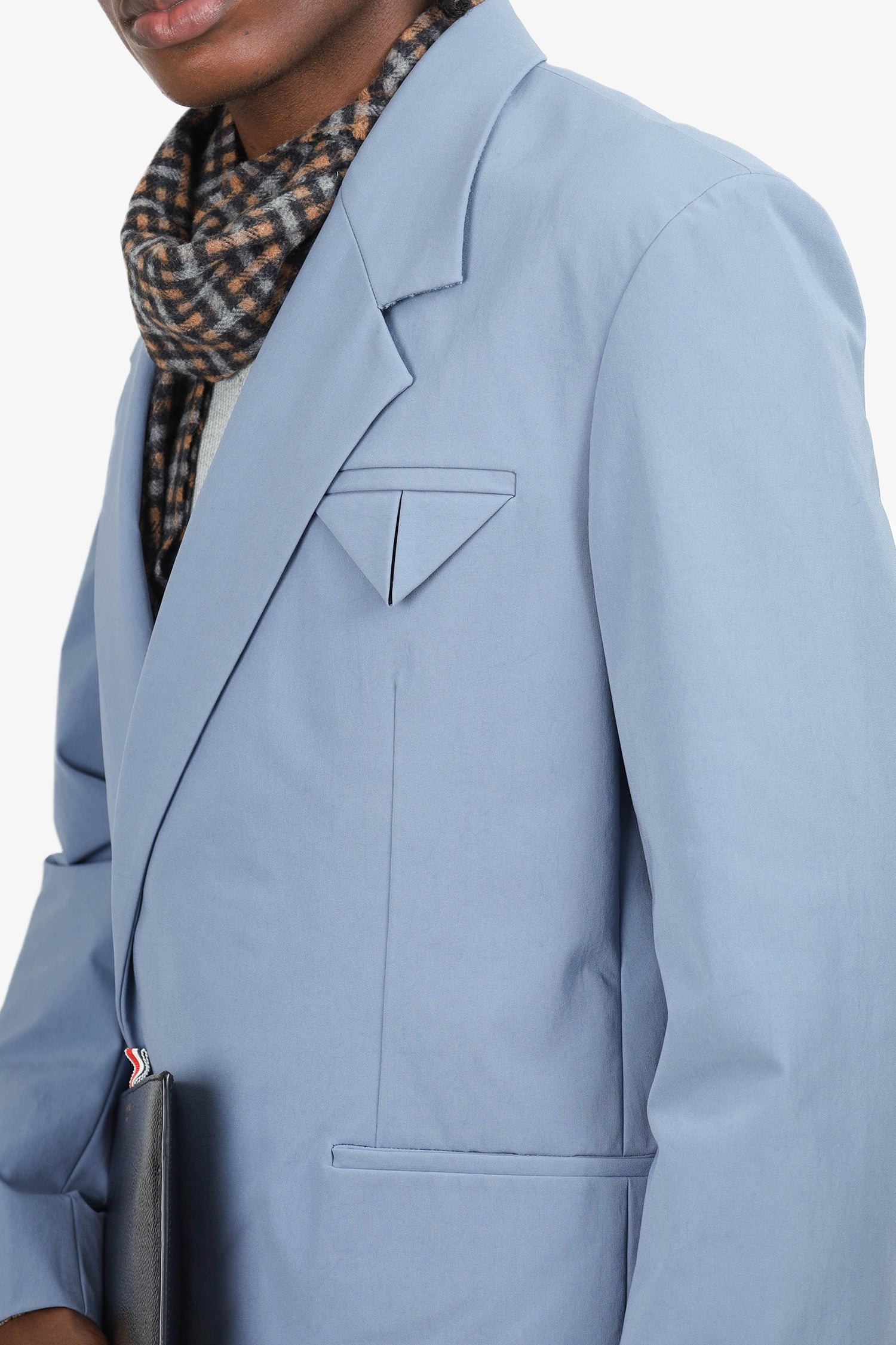 Refresh availabilityBottega Veneta Blue Stretch Nylon Blazer. Notch lapels. Single front chest pocket, two front slip pockets. Hidden buttoned cuffs. Rear vent. Lined. Tonal stitching.