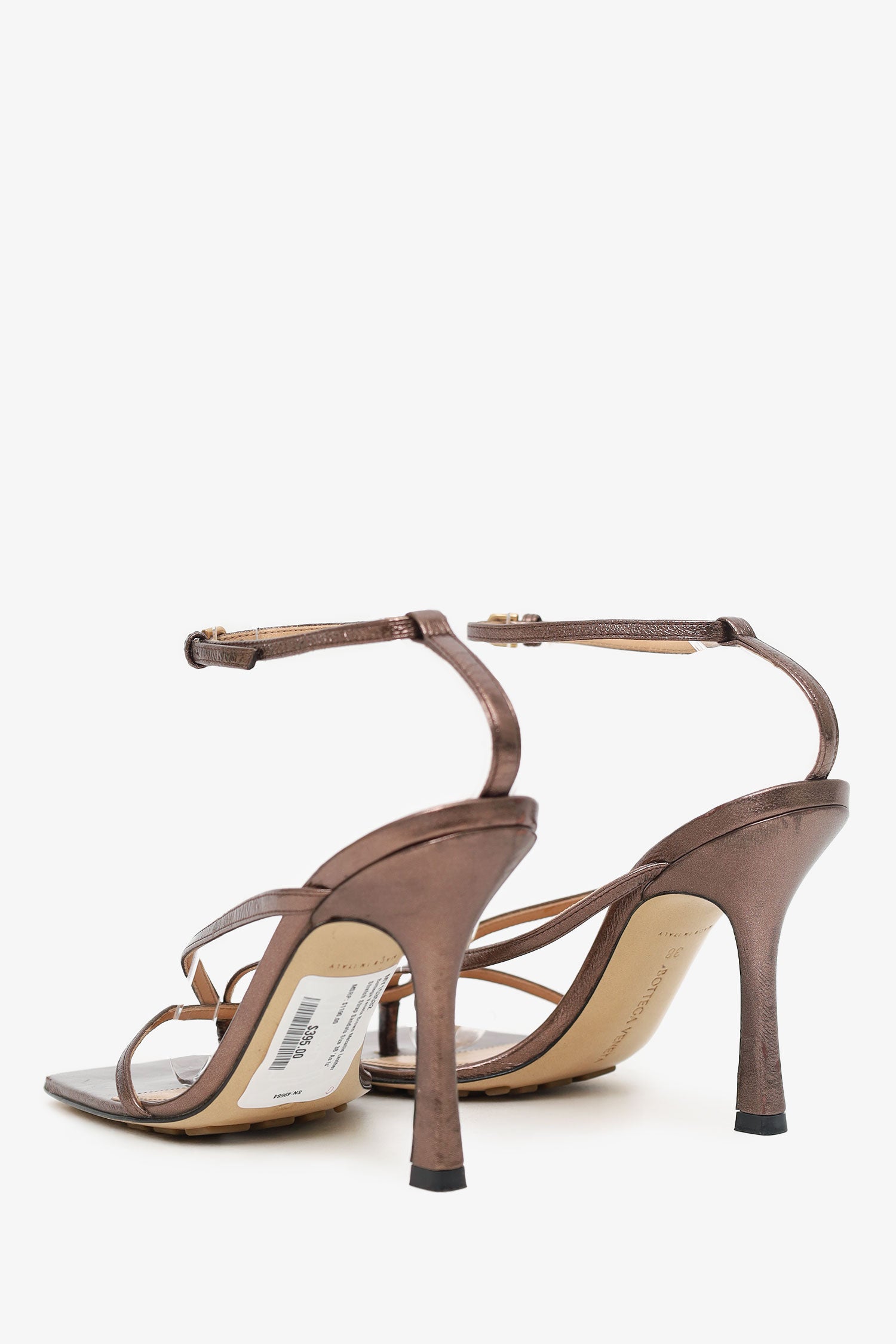 Bottega Veneta Brown Metallic Leather Stretch Strap Sandals Size 38 (As Is)