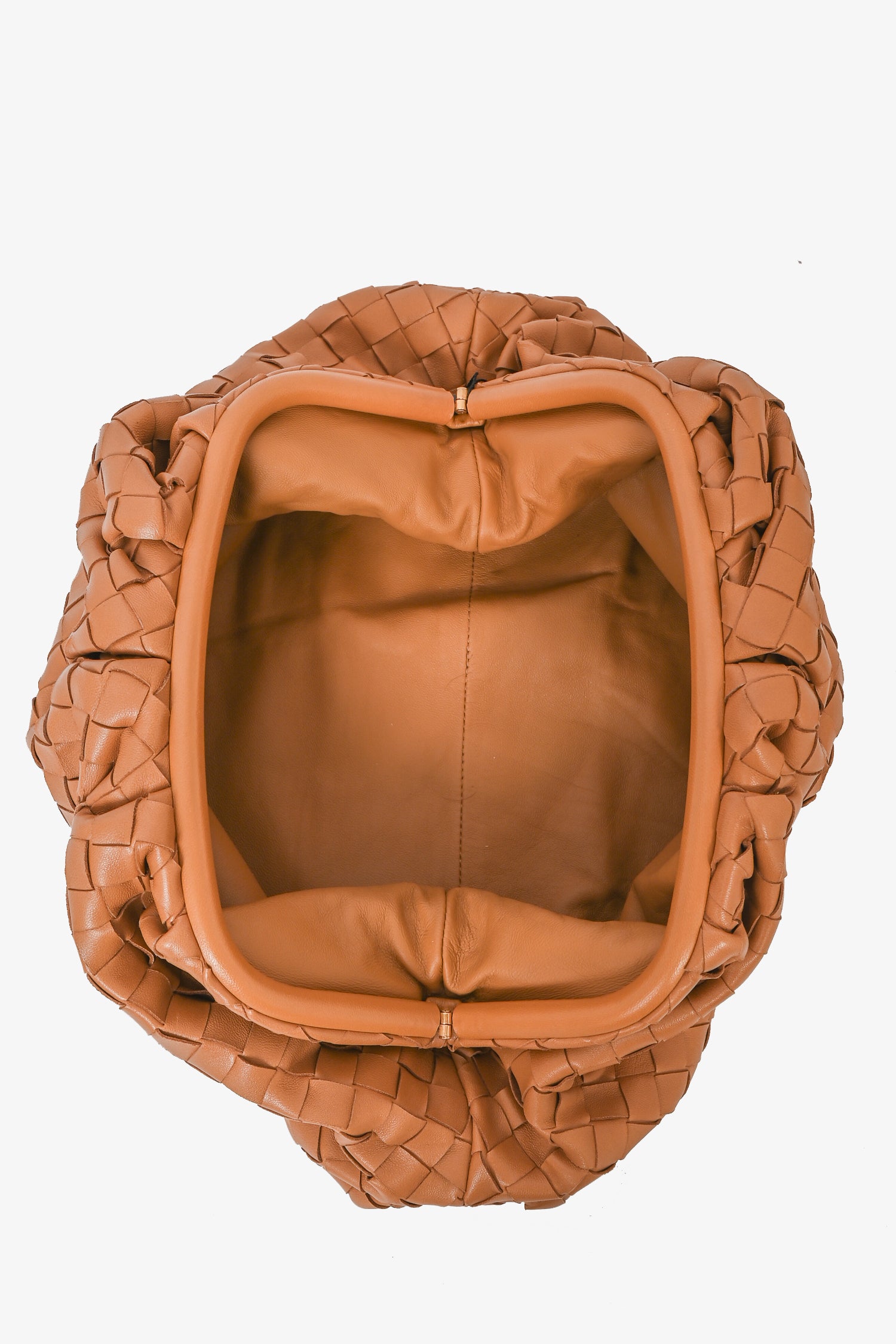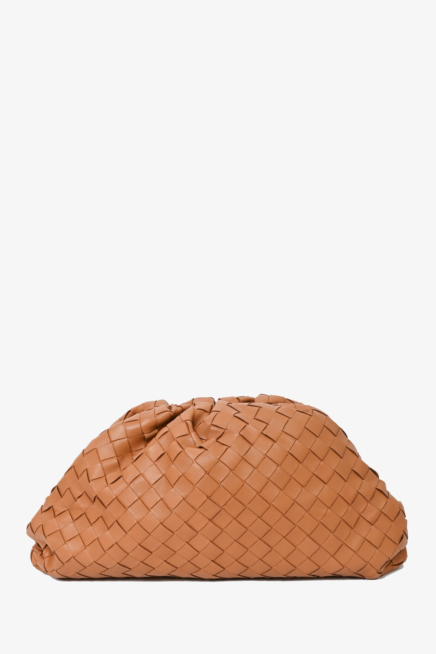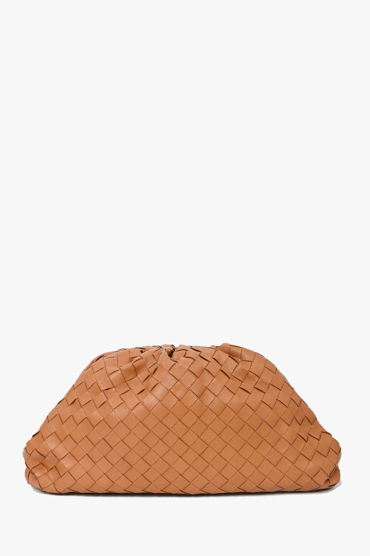 Refresh availabilityBottega Veneta Caramel Intrecciato Leather Classic Pouch Clutch. Top magnet closure. Open interior. Tonal stitching. Tonal interior.
