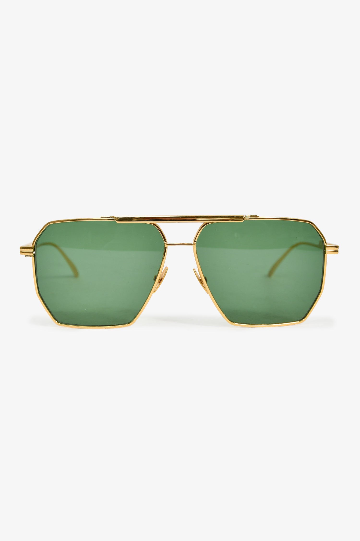 Refresh availabilityBottega Veneta Gold Frame/Green Tinted Aviator Sunglasses. Built-in nose pads. Gold-tone hardware.