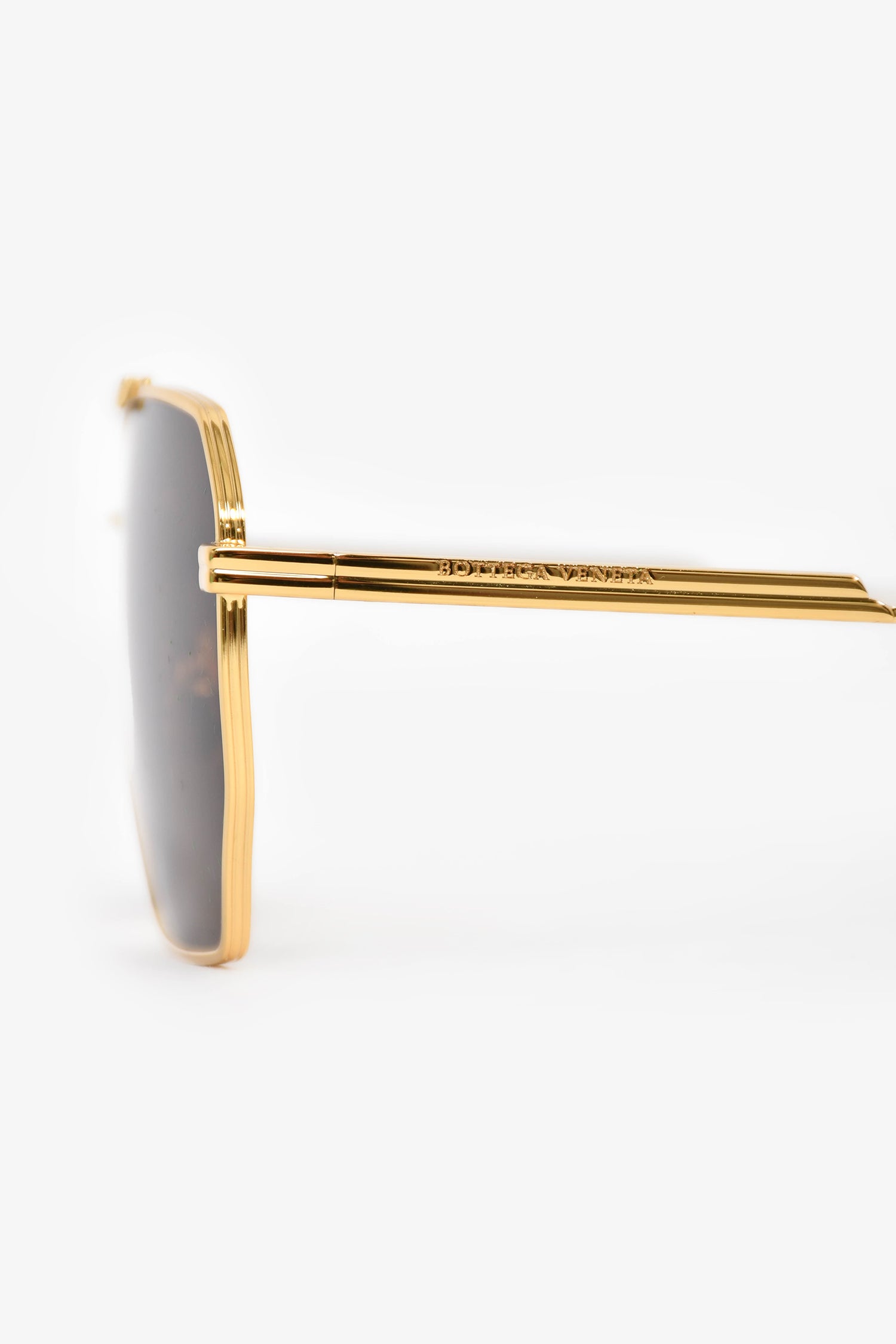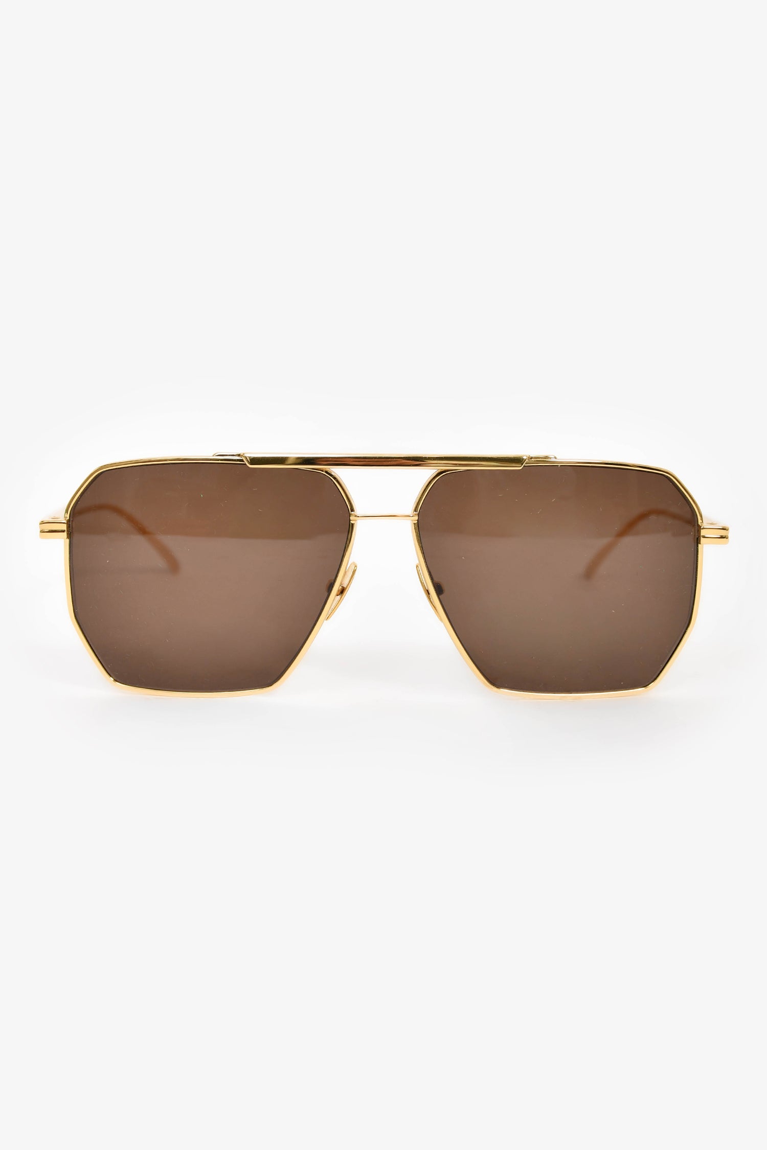 Refresh availabilityBottega Veneta Gold Tone Rectangular Aviator Sunglasses. Adjustable nose pads. Gold-tone hardware.