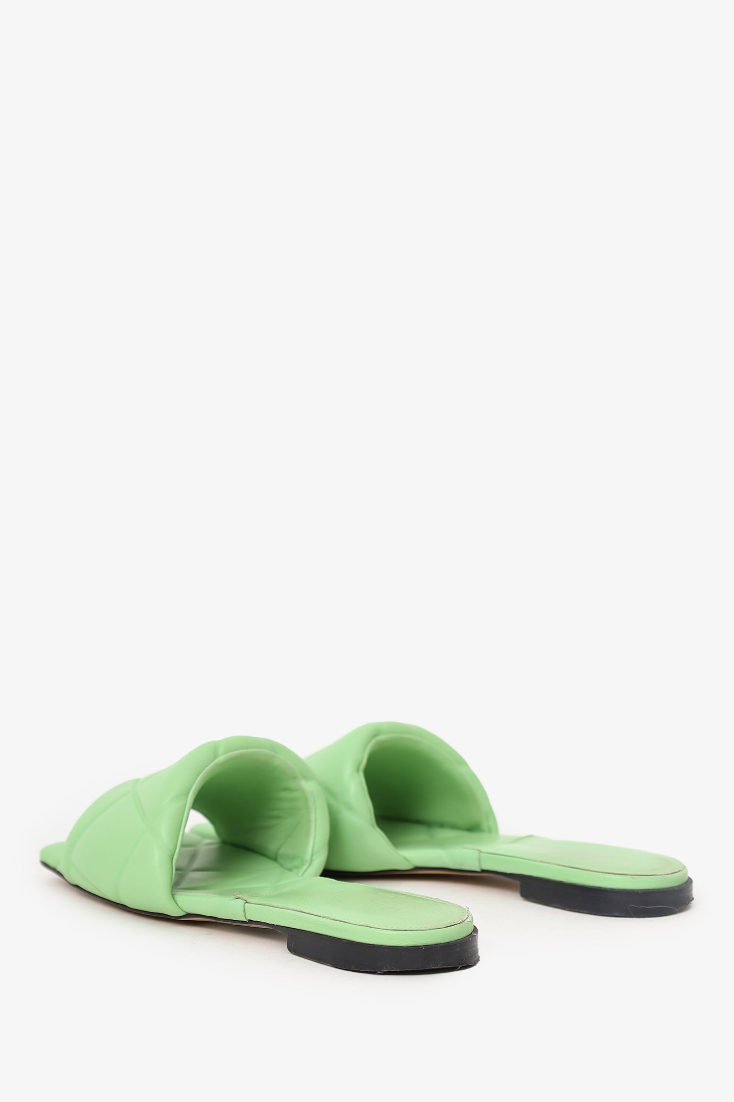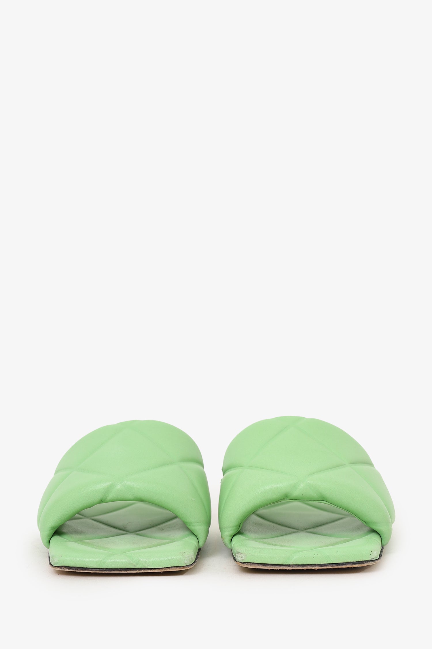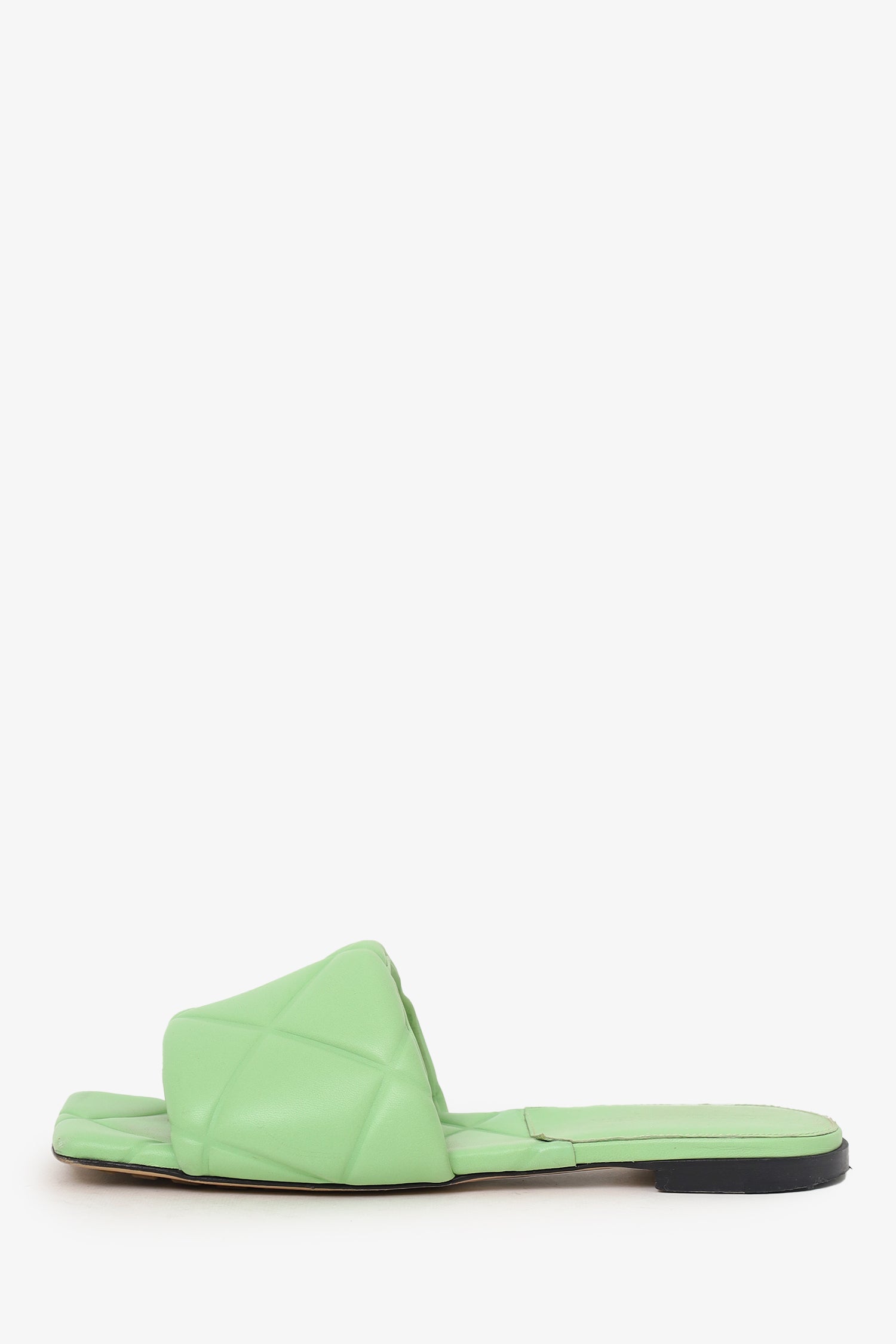 Refresh availabilityBottega Veneta Green Intrecciato Leather 'Lido' Slide Sandals. Slip-on. Open square-toe. Leather insoles. Tonal stitching.