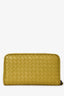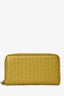 Bottega Veneta Green Metallic Leather Intrecciato Zip Around Long Wallet