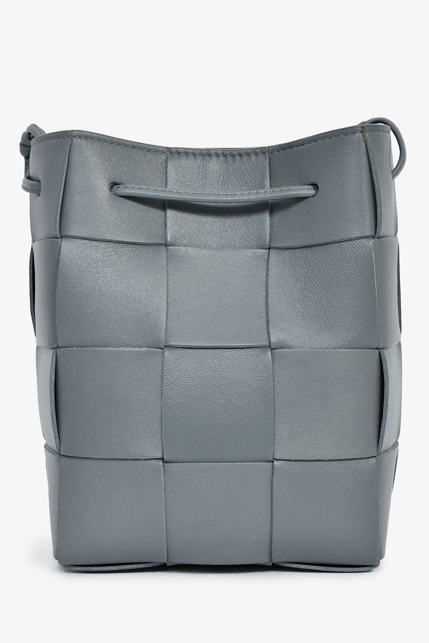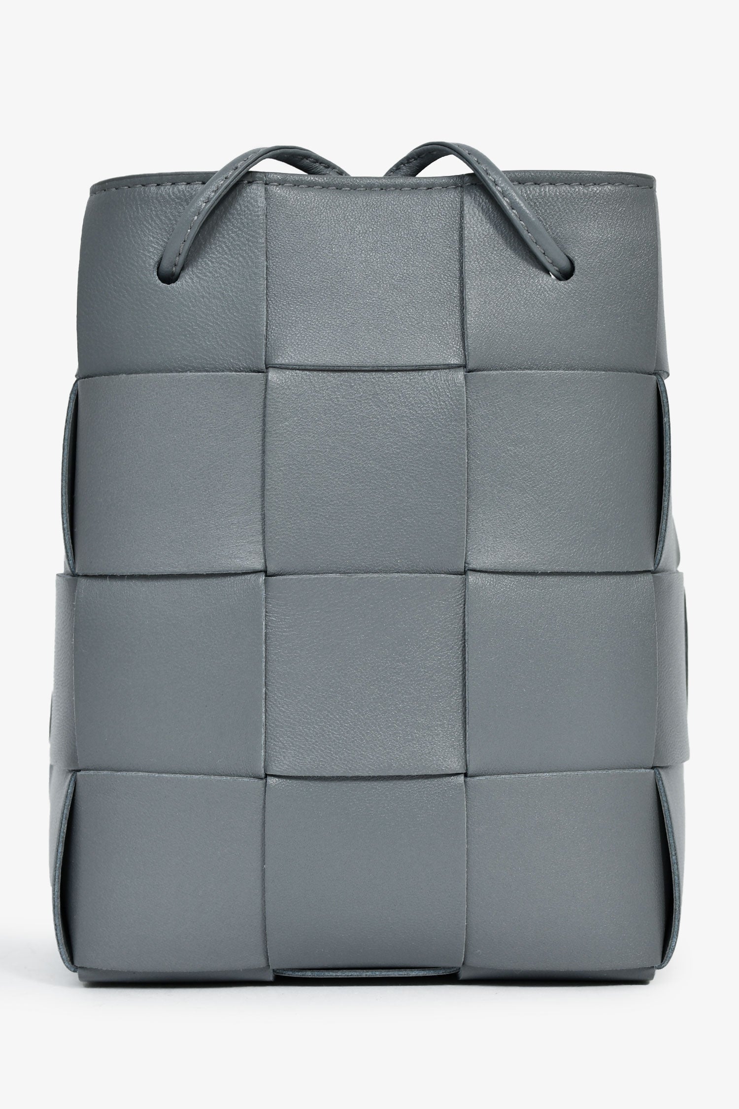 Refresh availabilityBottega Veneta Grey Lambskin Cassette Mini Bucket Bag. Open interior. Double shoulder straps. Tonal stitching.