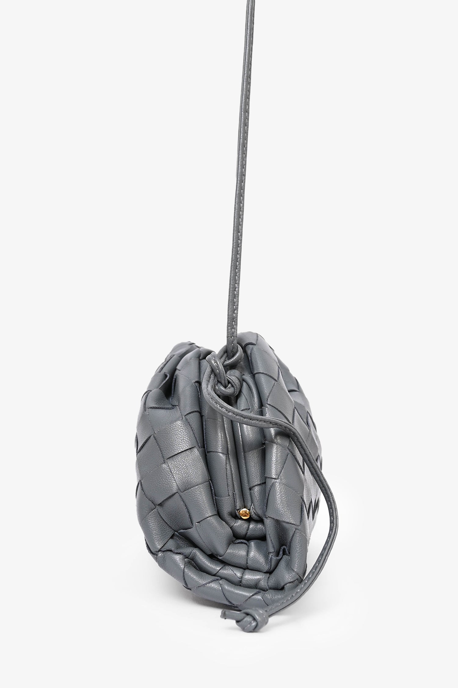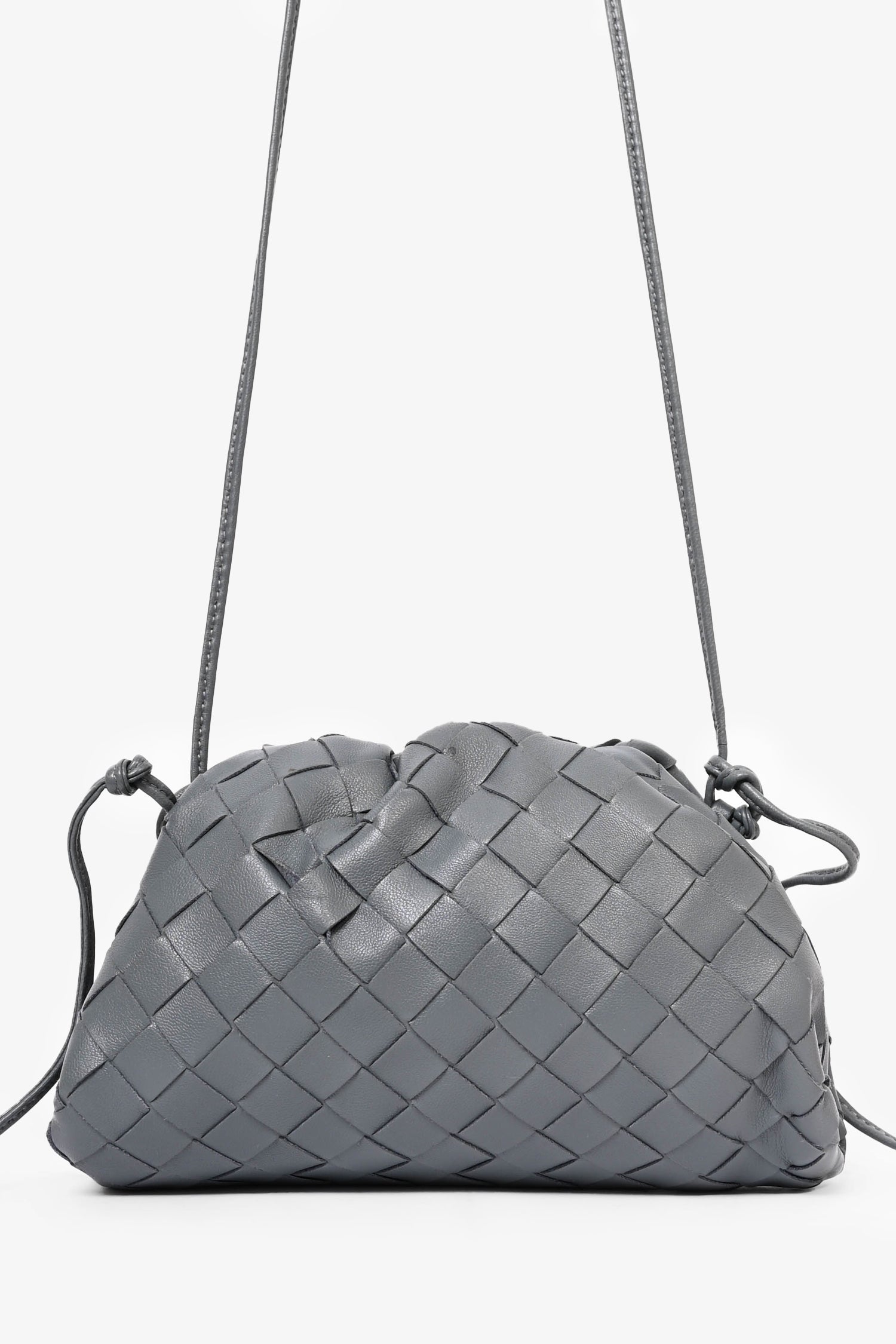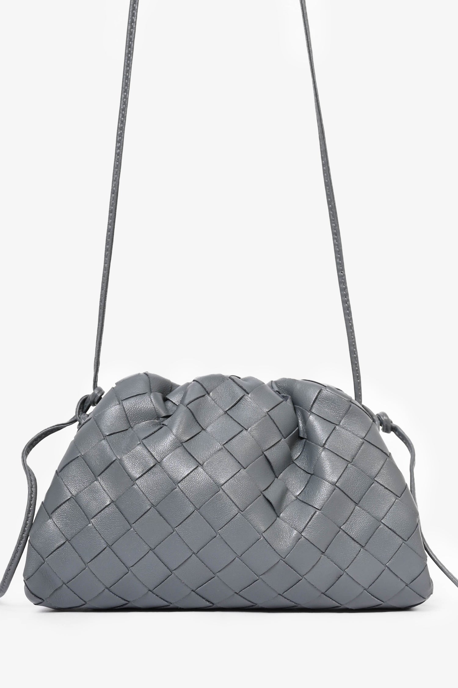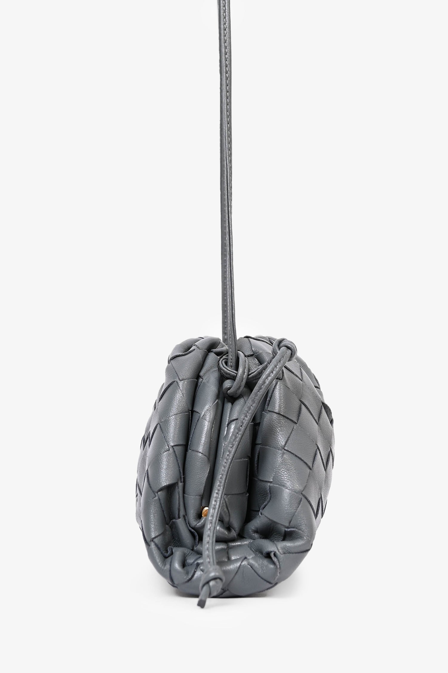 Refresh availabilityBottega Veneta Grey Leather 'The Mini' Pouch Bag. Tonal stitching. Intrecciato detailing. Magnetic closure. Unlined interior. Leather strap.