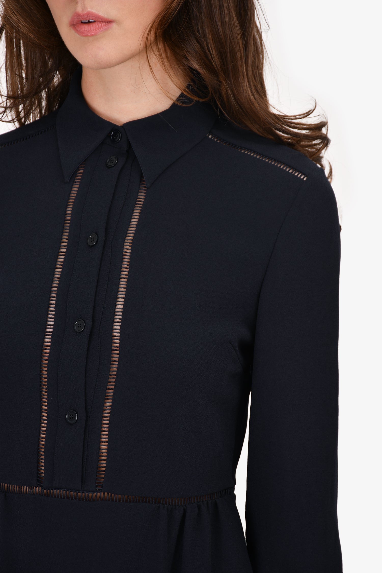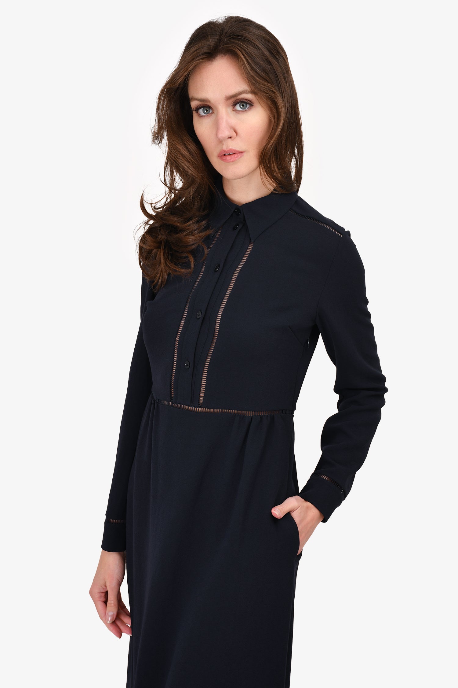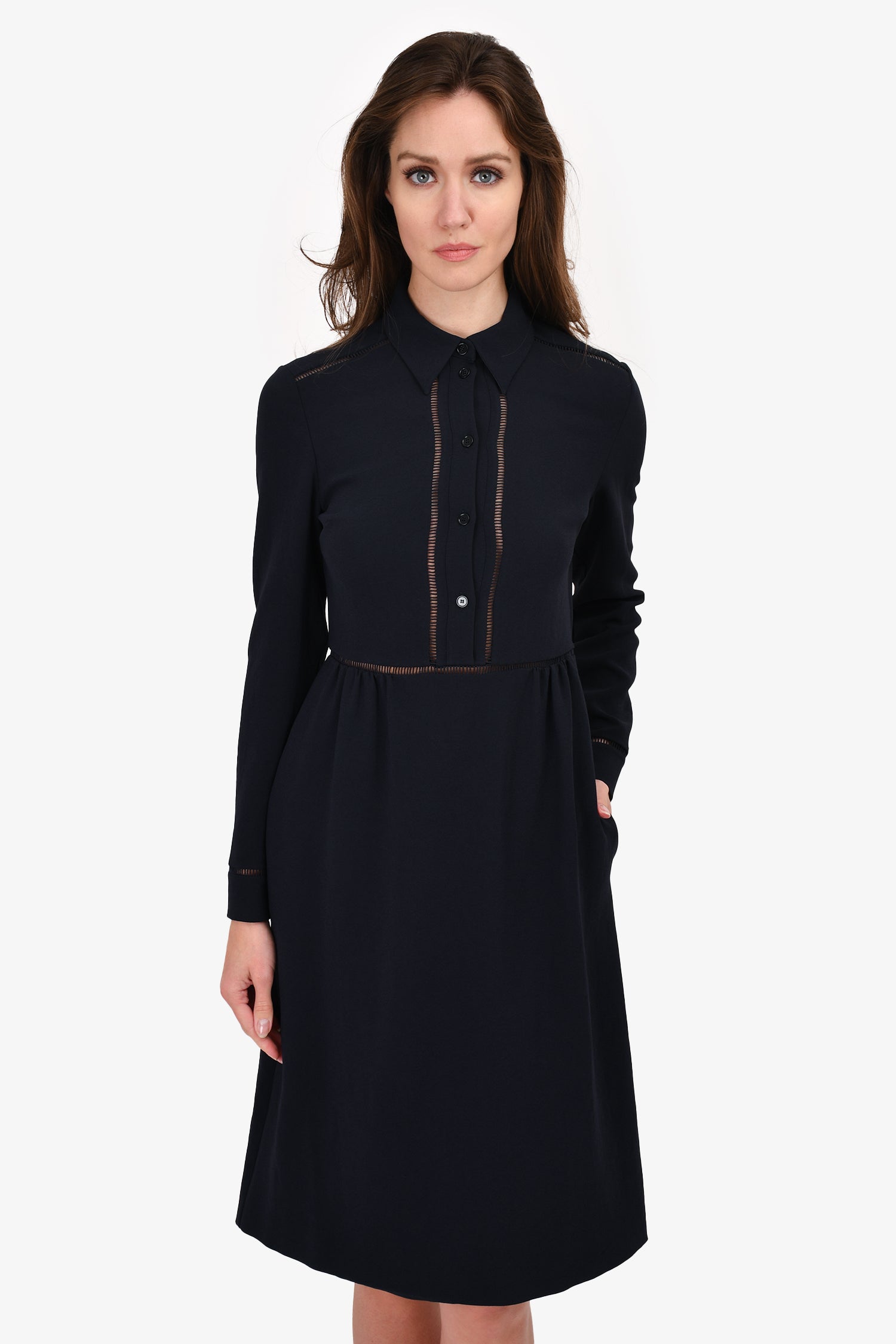 Refresh availabilityBottega Veneta Navy Shift Dress. Front button-up closure. Front pockets. Lined.