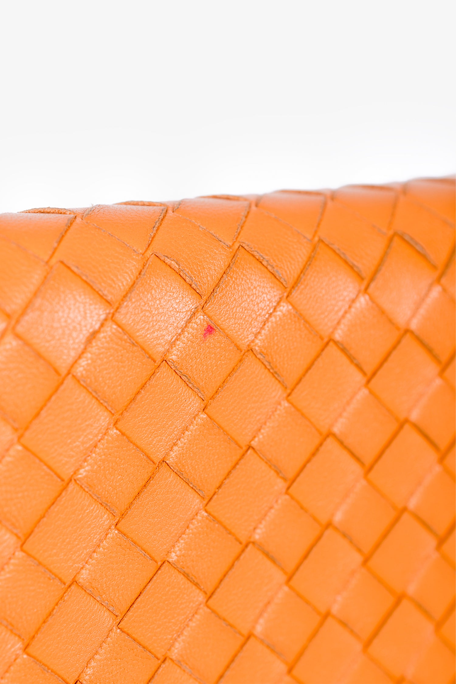 Refresh availabilityBottega Veneta Orange Leather Intrecciato Zip Around Long Wallet. 8 card slots. 2 billfold compartments. 1 zippered coin compartment. Silver-tone hardware.