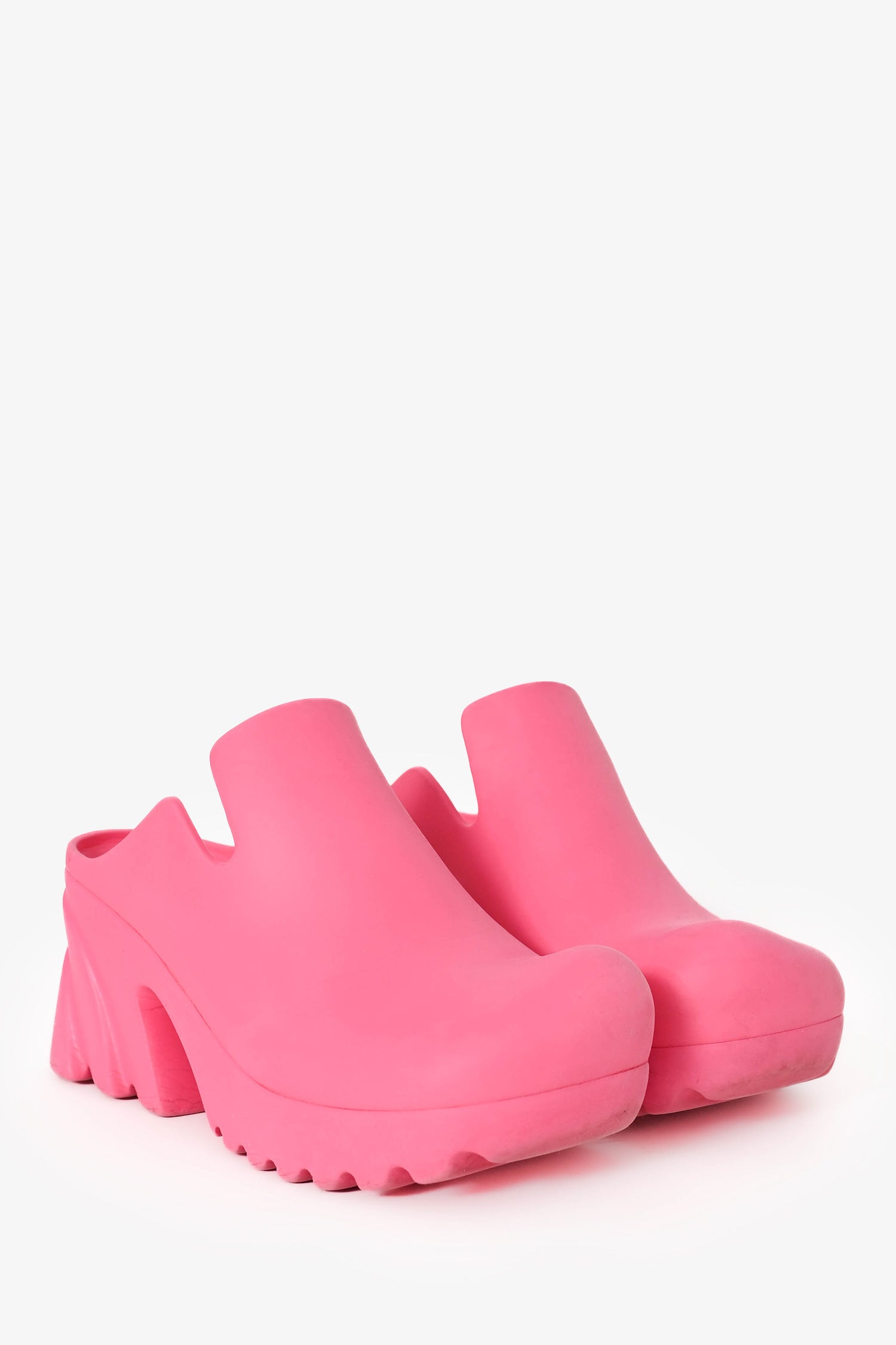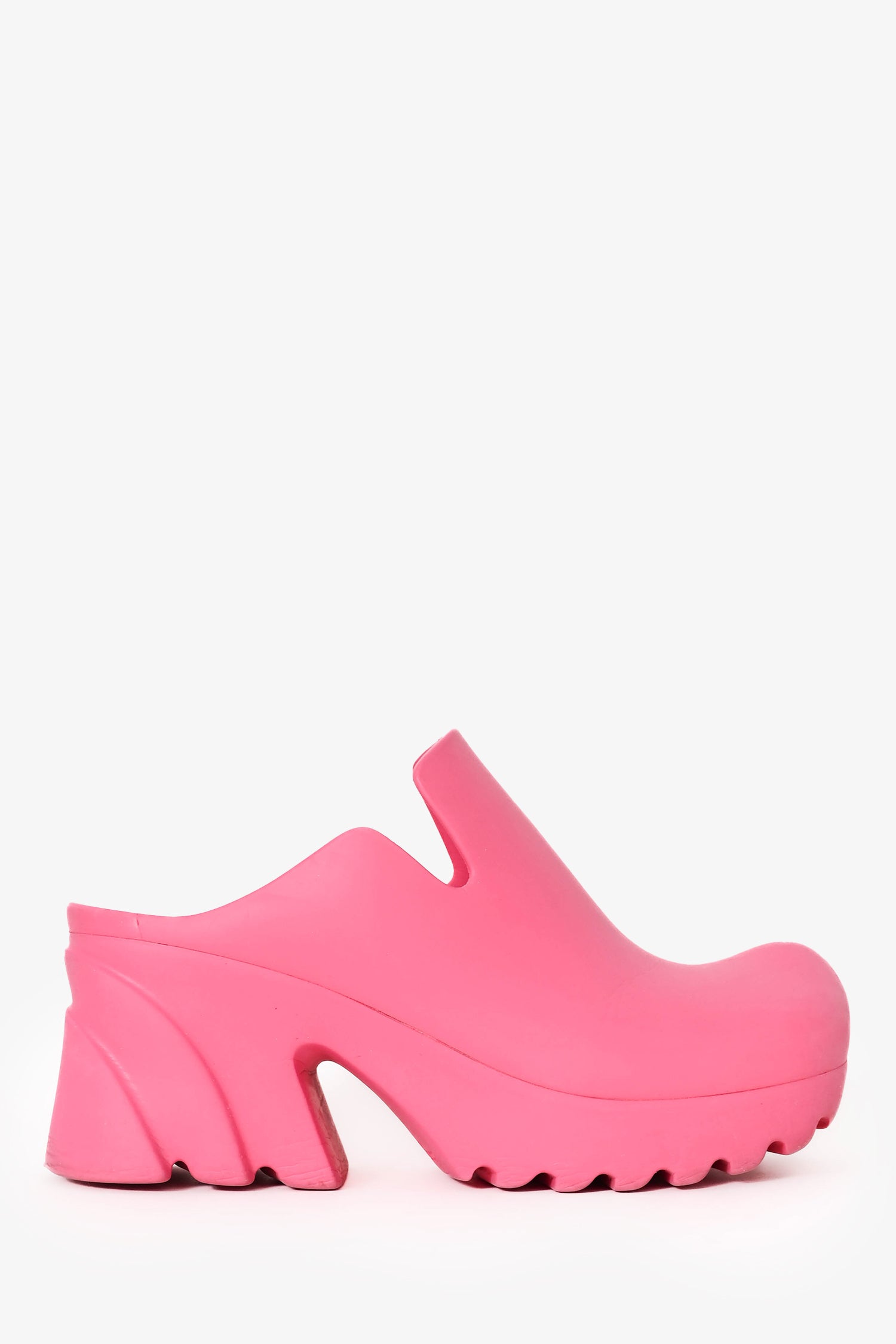 Refresh availabilityBottega Veneta Pink Rubber Flash Clogs. Slip-on. Open back. Square toe.