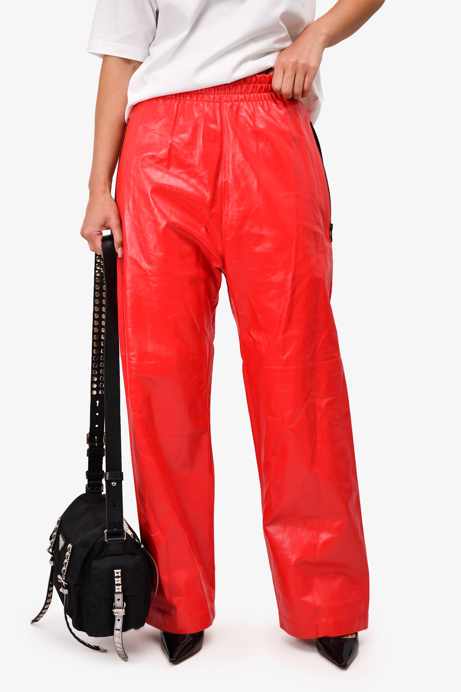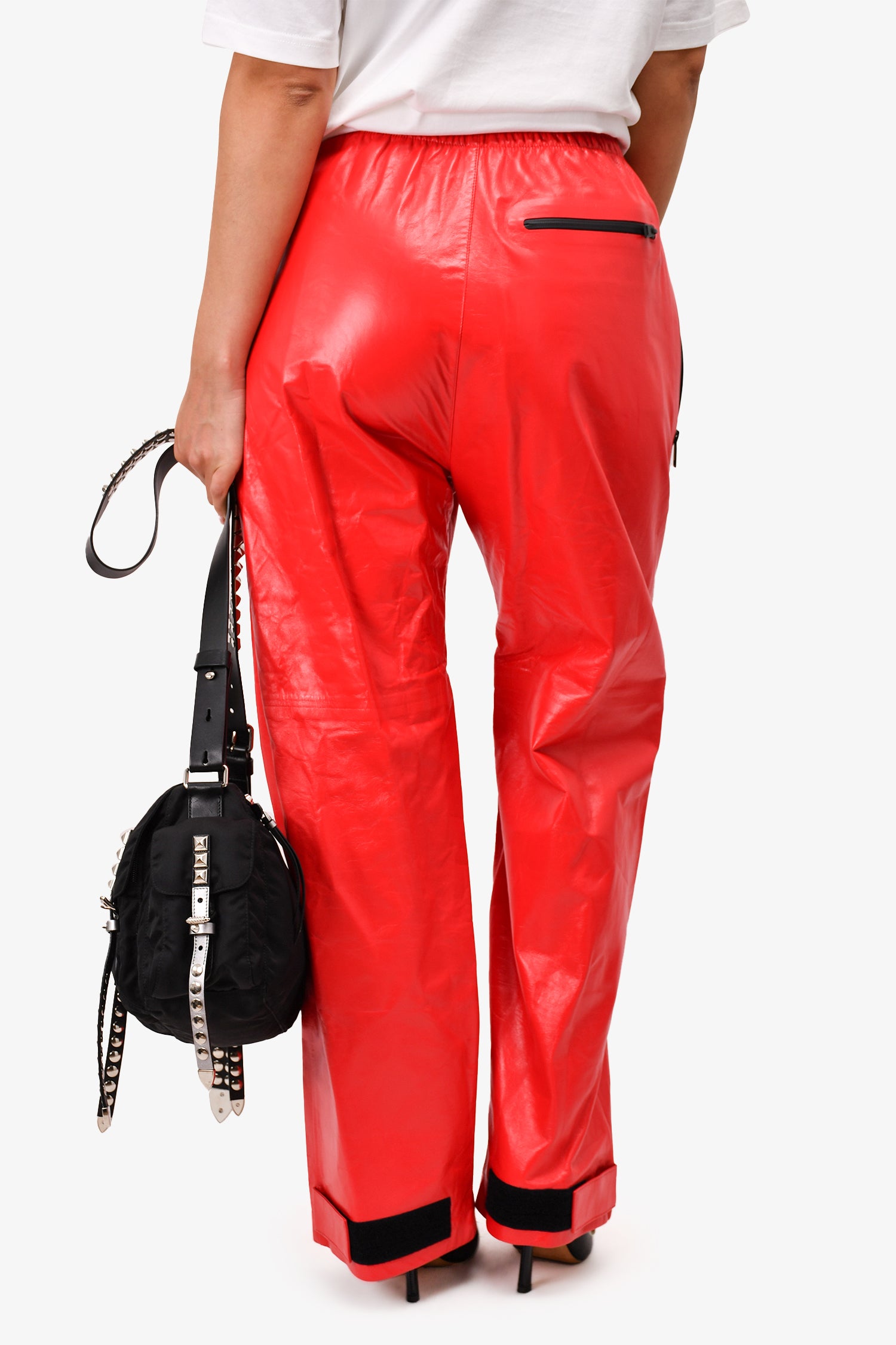 Refresh availabilityBottega Veneta Red Leather Elastic Waist Pants. Front zip pockets. Velcro closure on the cuffs.