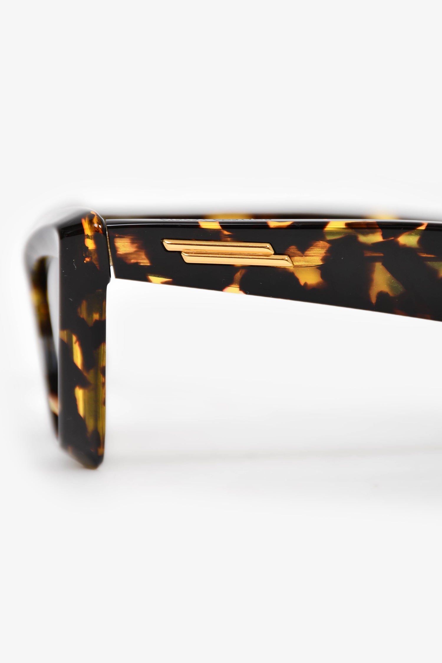 Refresh availabilityBottega Veneta Tortoise Shell Angle Acetate Pointed Cat Eye Sunglasses. Frame nose pads. Gold-tone hardware.