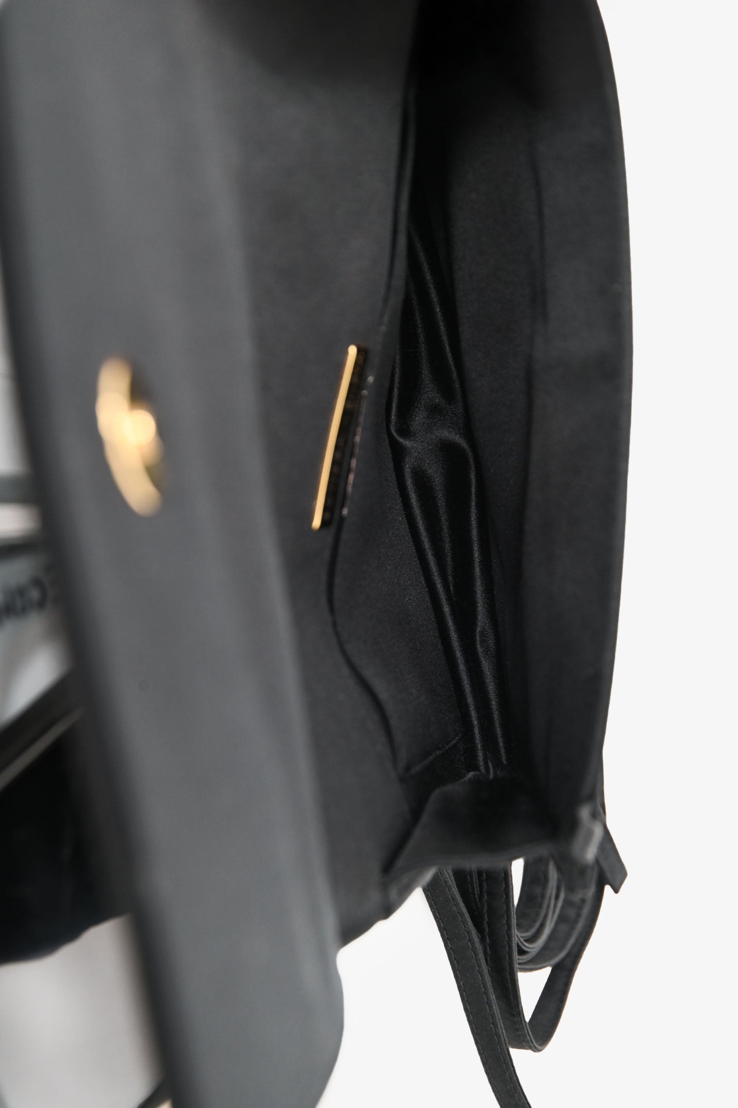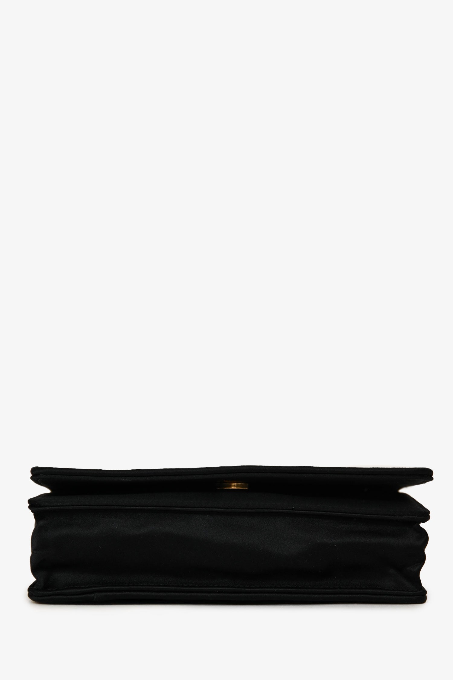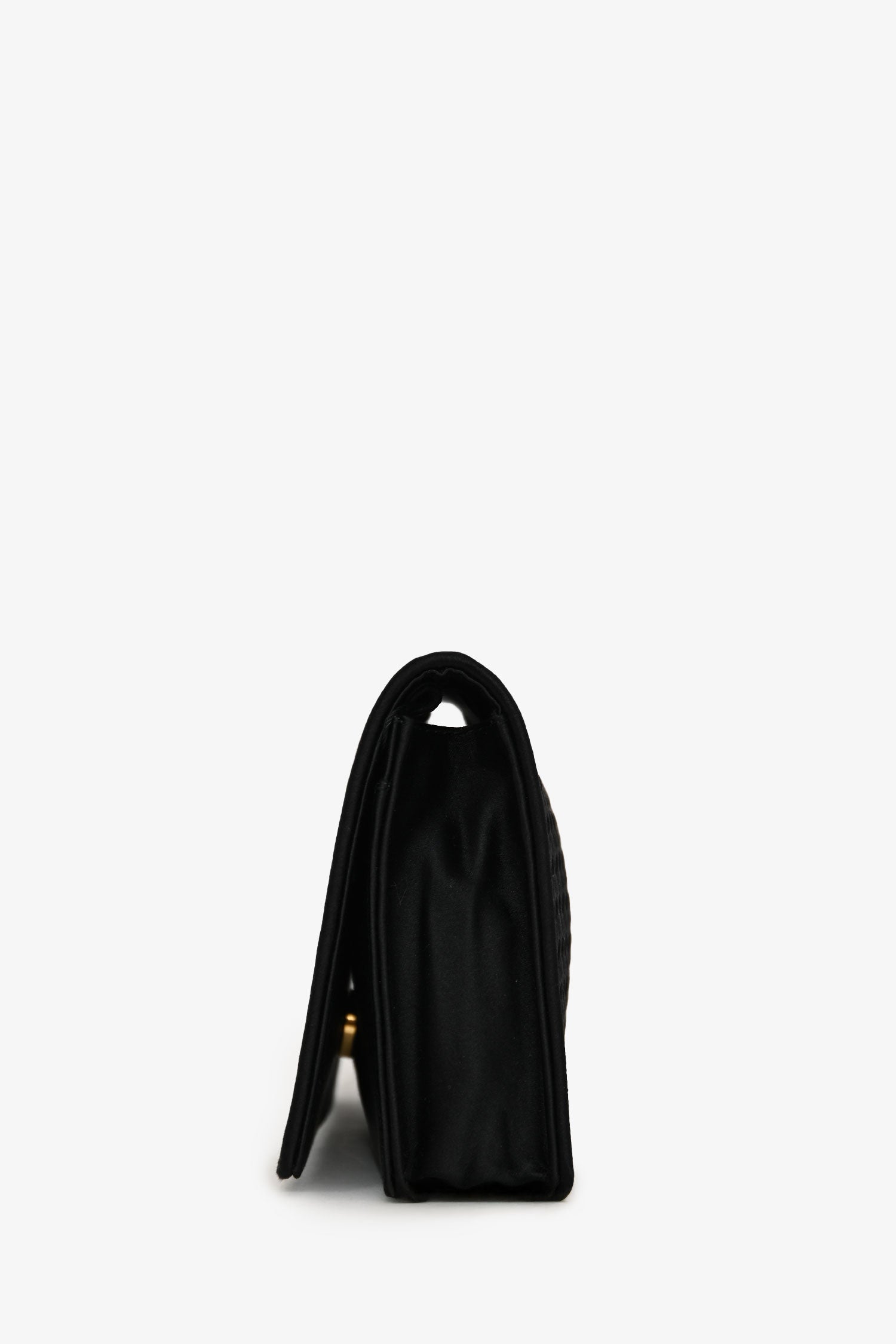 Bottega Veneta Vintage Black Satin Intrecciato Clutch with Strap
