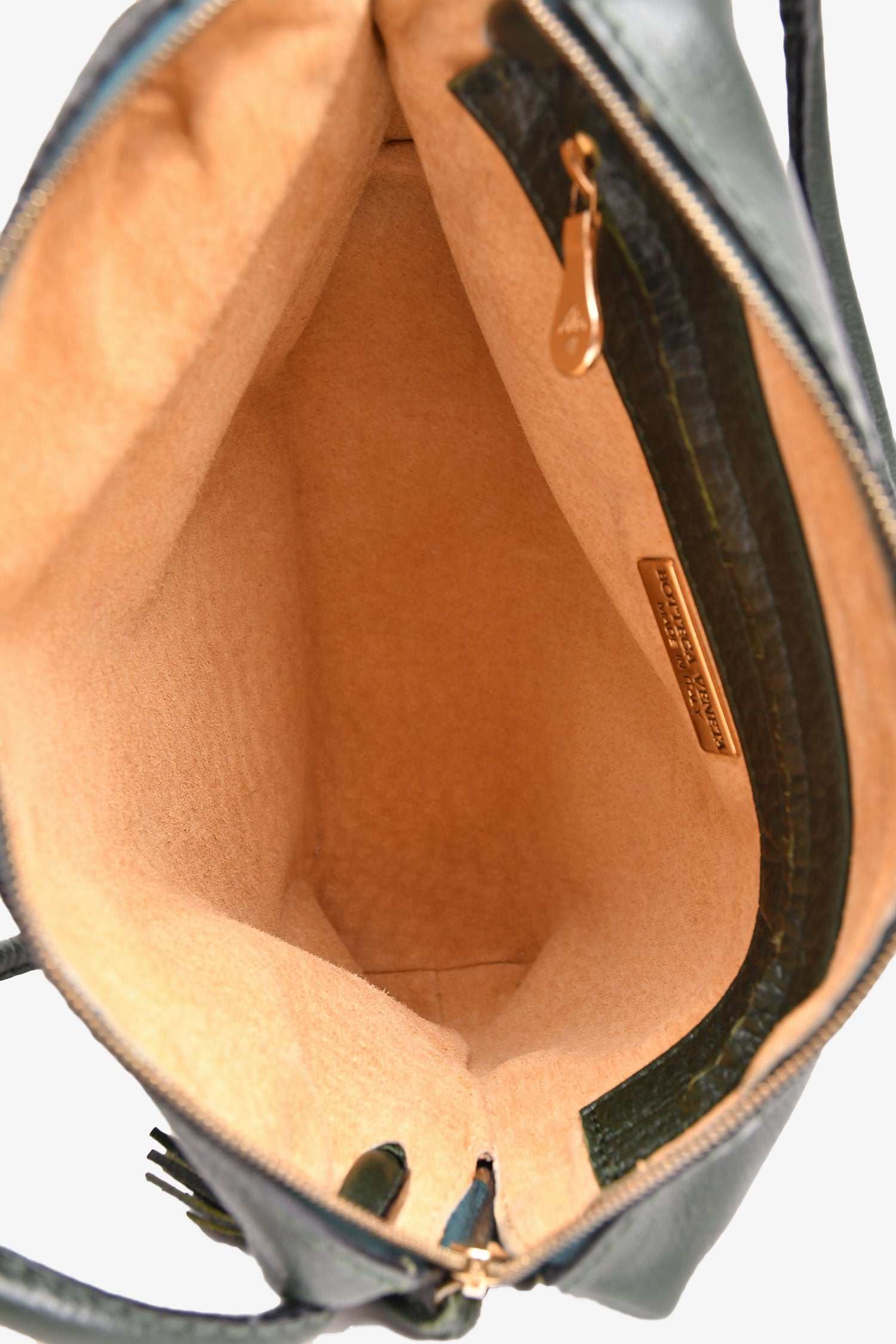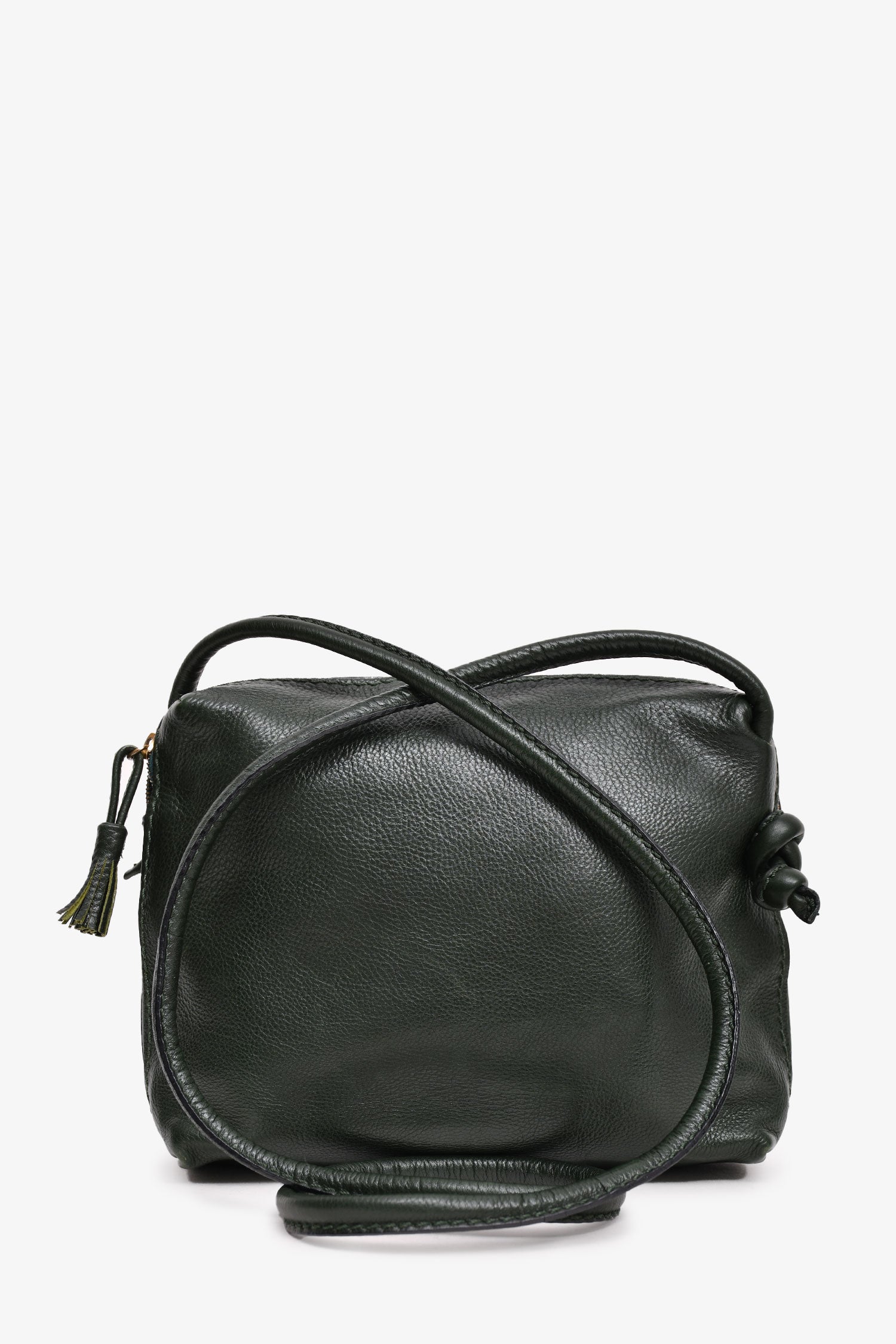 Refresh availabilityBottega Veneta Vintage Dark Green Leather Crossbody Bag. Top zip closure. Beige suede interior lining. Single interior wall zip pocket. Gold-tone hardware.