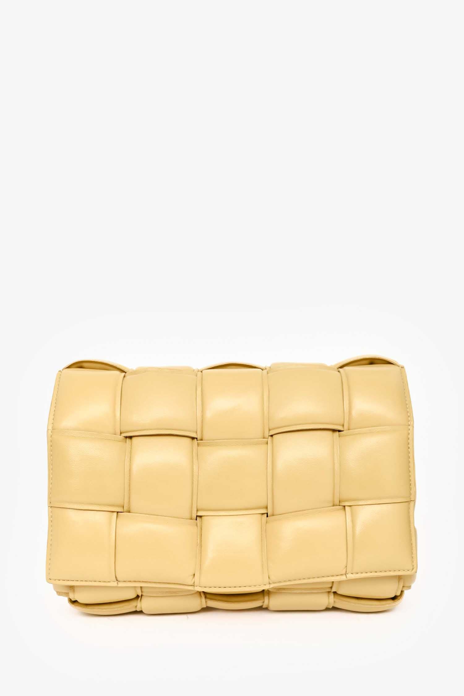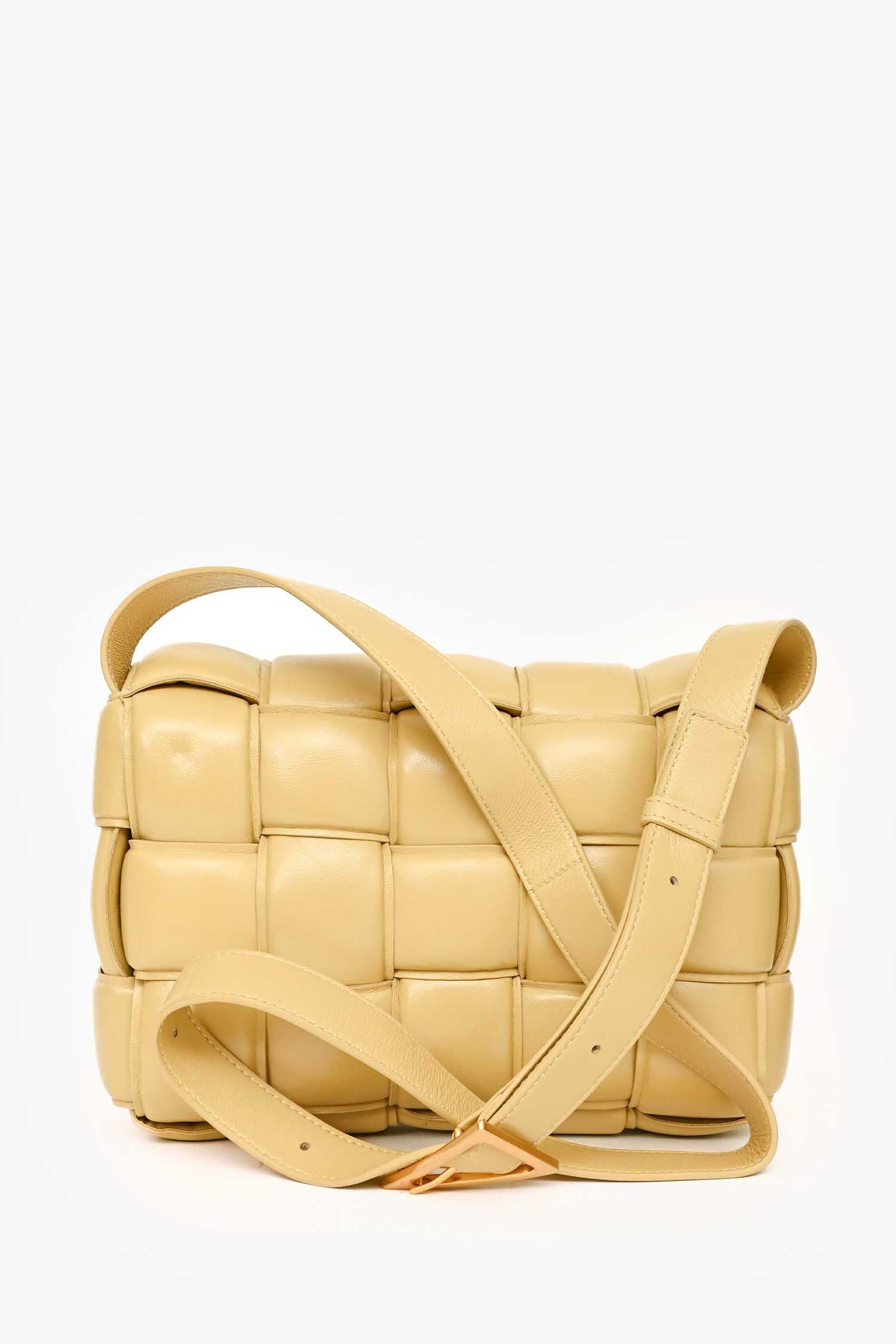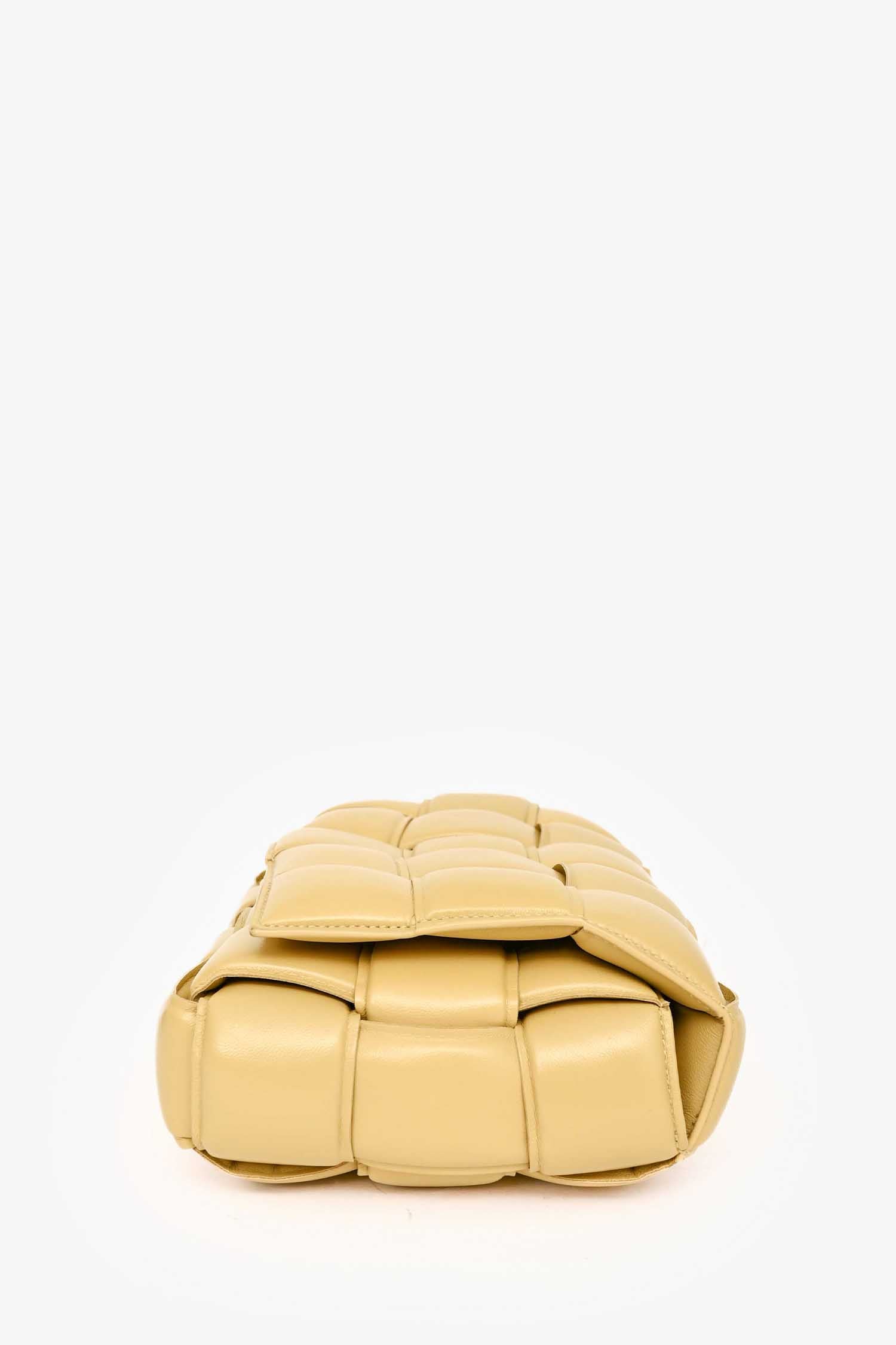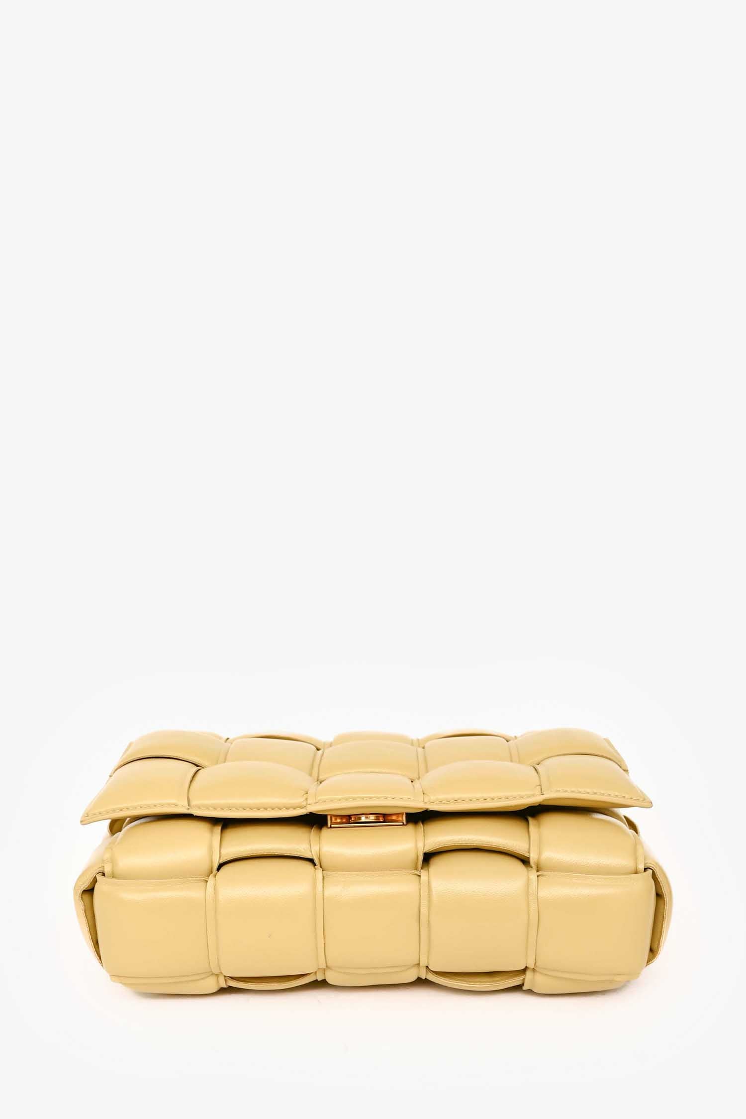 Refresh availabilityBottega Venetta Butter Green Leather 'Padded Cassette' Bag. Fold-over flap. Pull-through closure. Gold-tone hardware. Unlined interior. Zipped pouch. Adjustable crossbody strap. Tonal stitching.