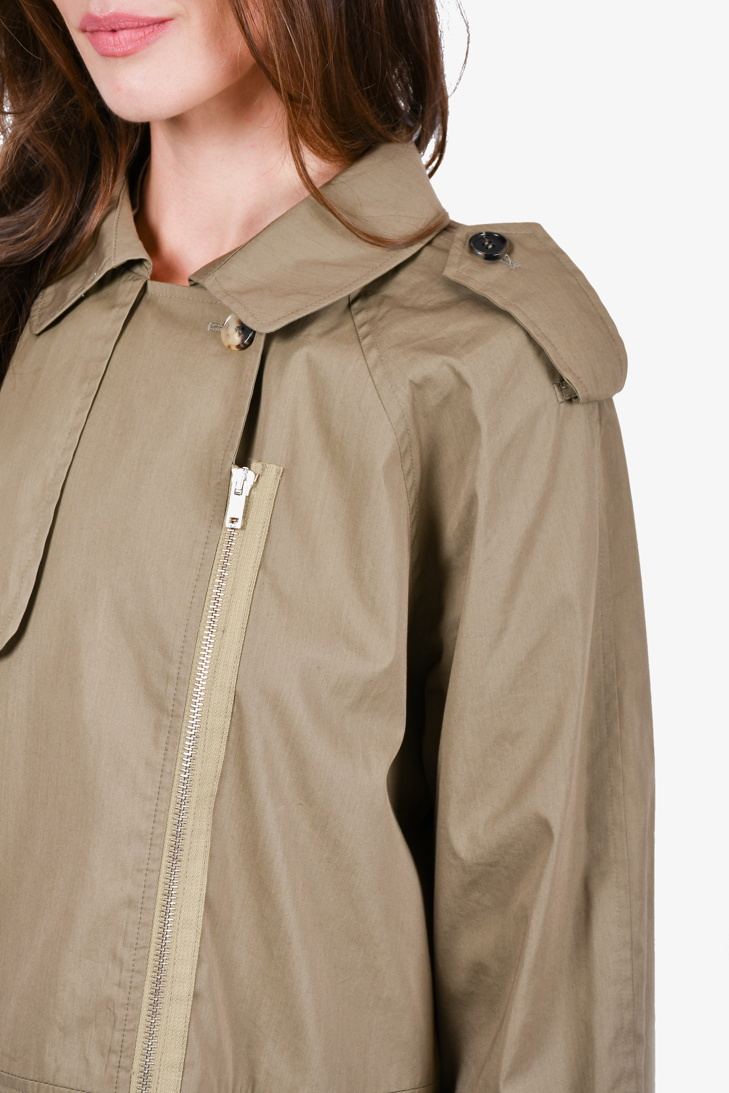 Refresh availabilityBoy. by Band of Outsiders Light Green Pleated Hem Trench Coat. Front zip closure. Half-lined. Tonal stitching.
