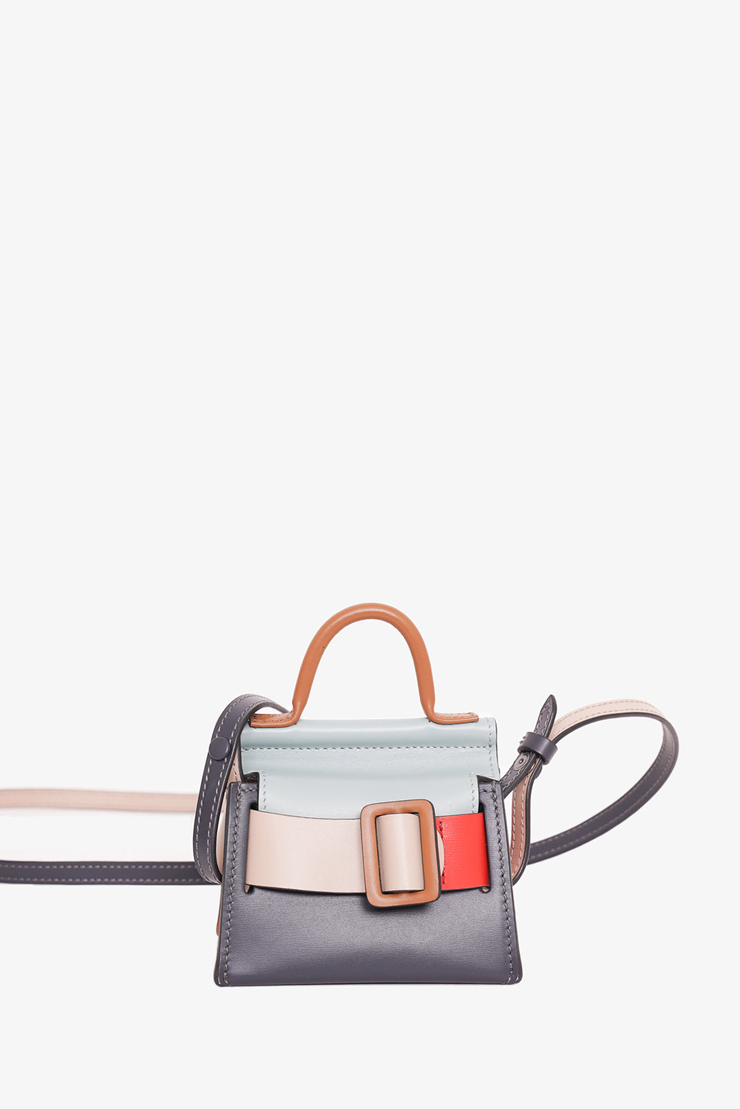 Refresh availabilityBOYY Multicolor Bobby Leather Mini Handle Bag. Top flap closure. Top handle. Adjustable shoulder strap. Front belt detailing. Grey interior suede lining. Tonal stitching.