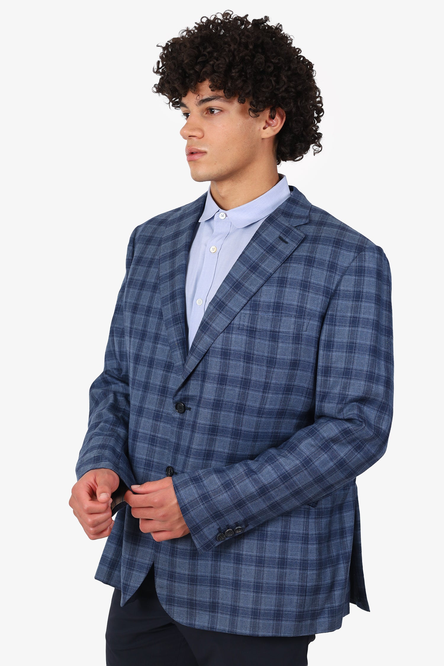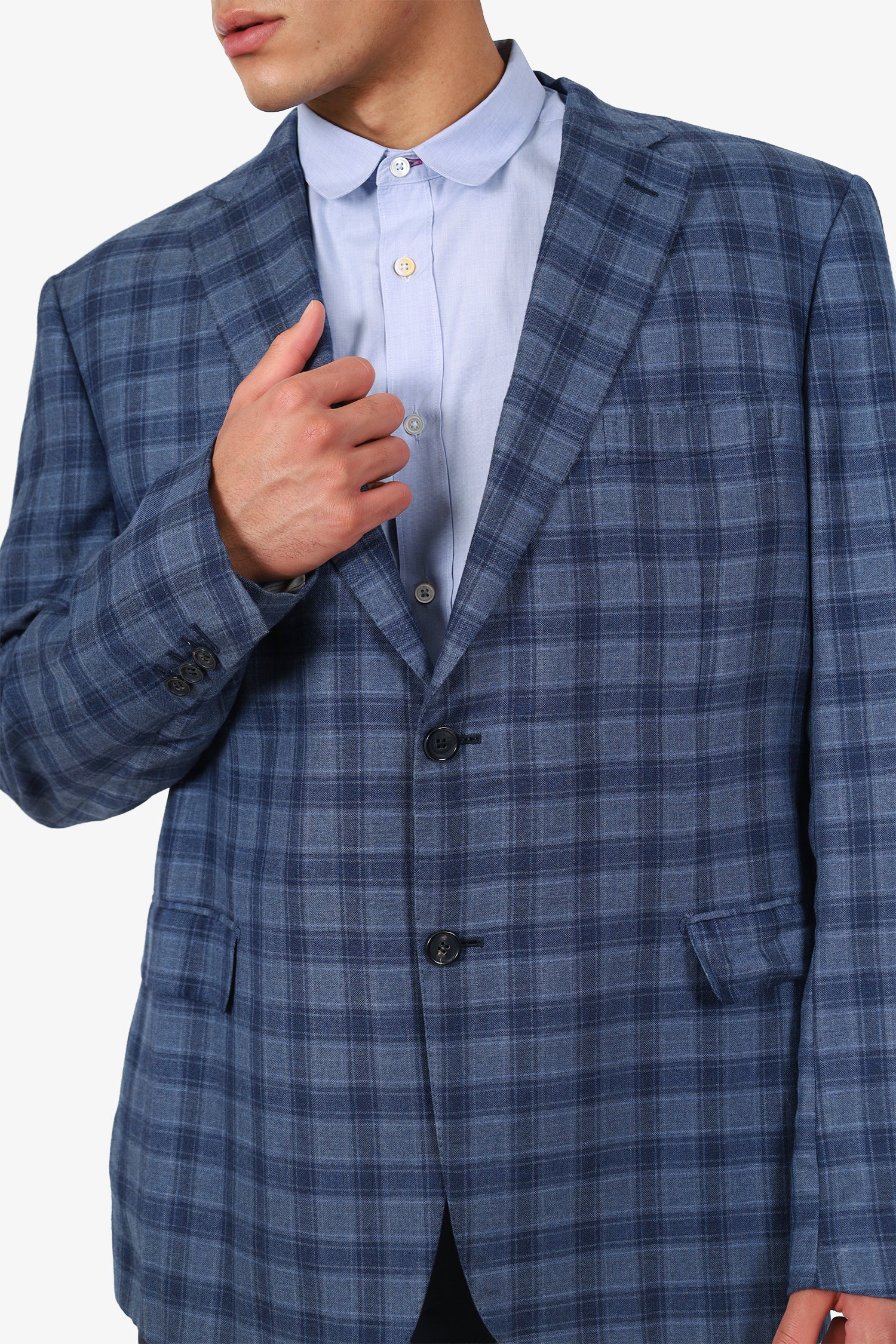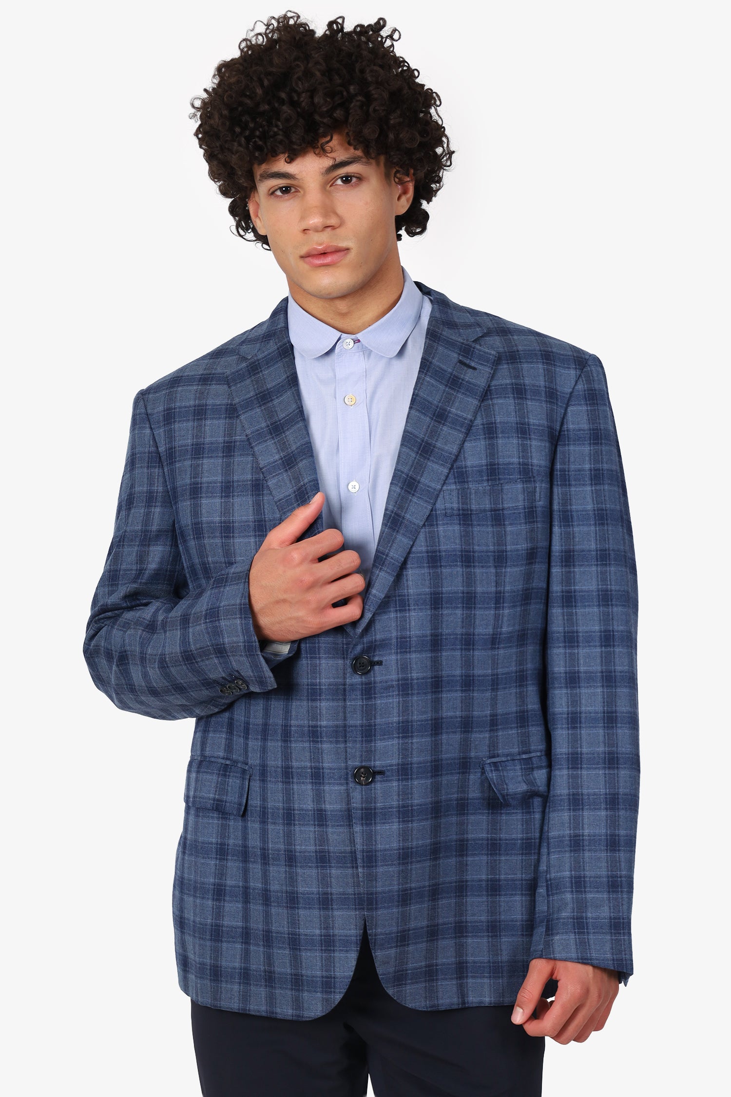 Brioni Blue Silk Cashmere Blend Plaid Blazer Size 58R Mens