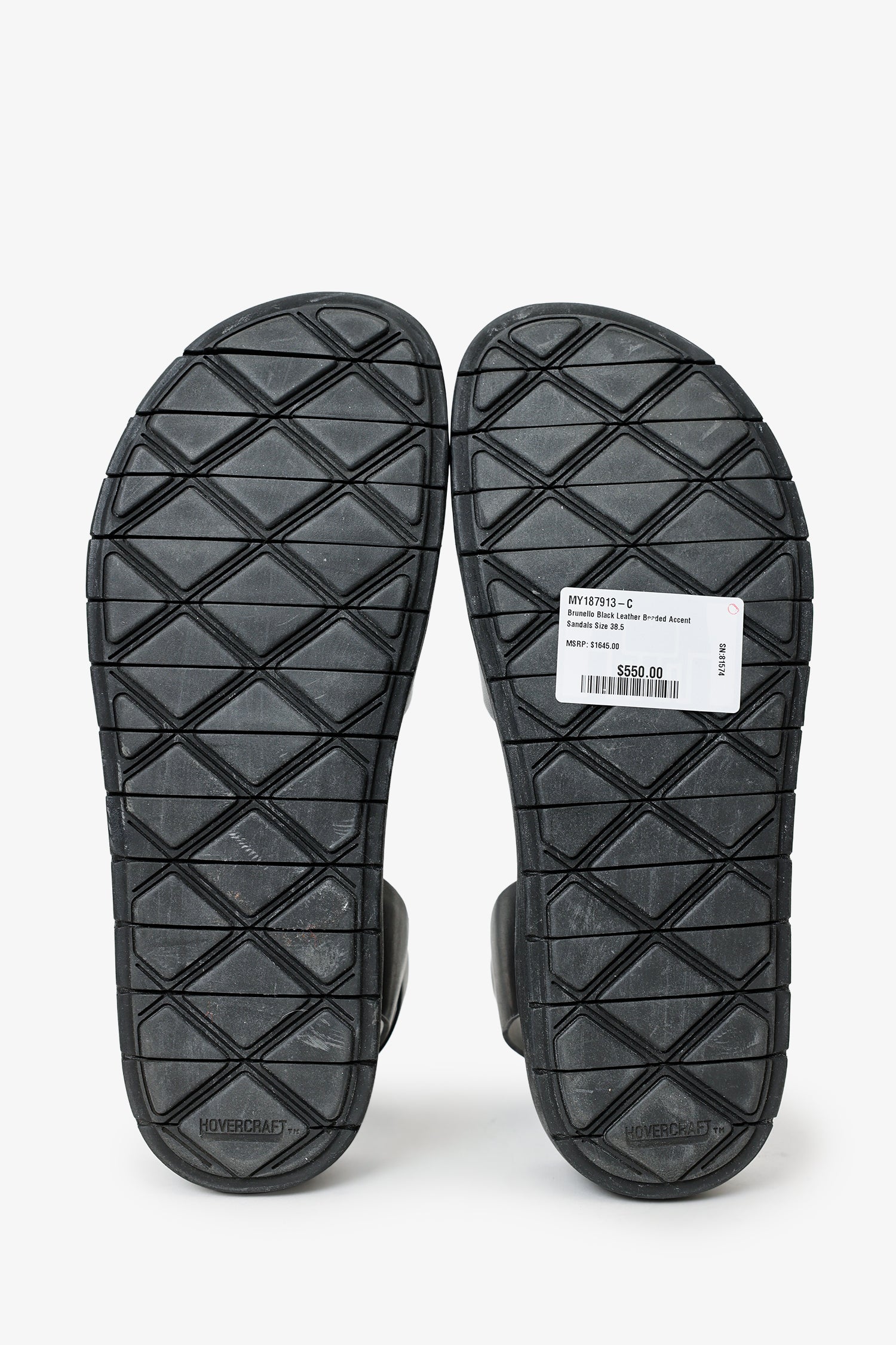 Brunello Black Leather Beaded Accent Sandals Size 38.5