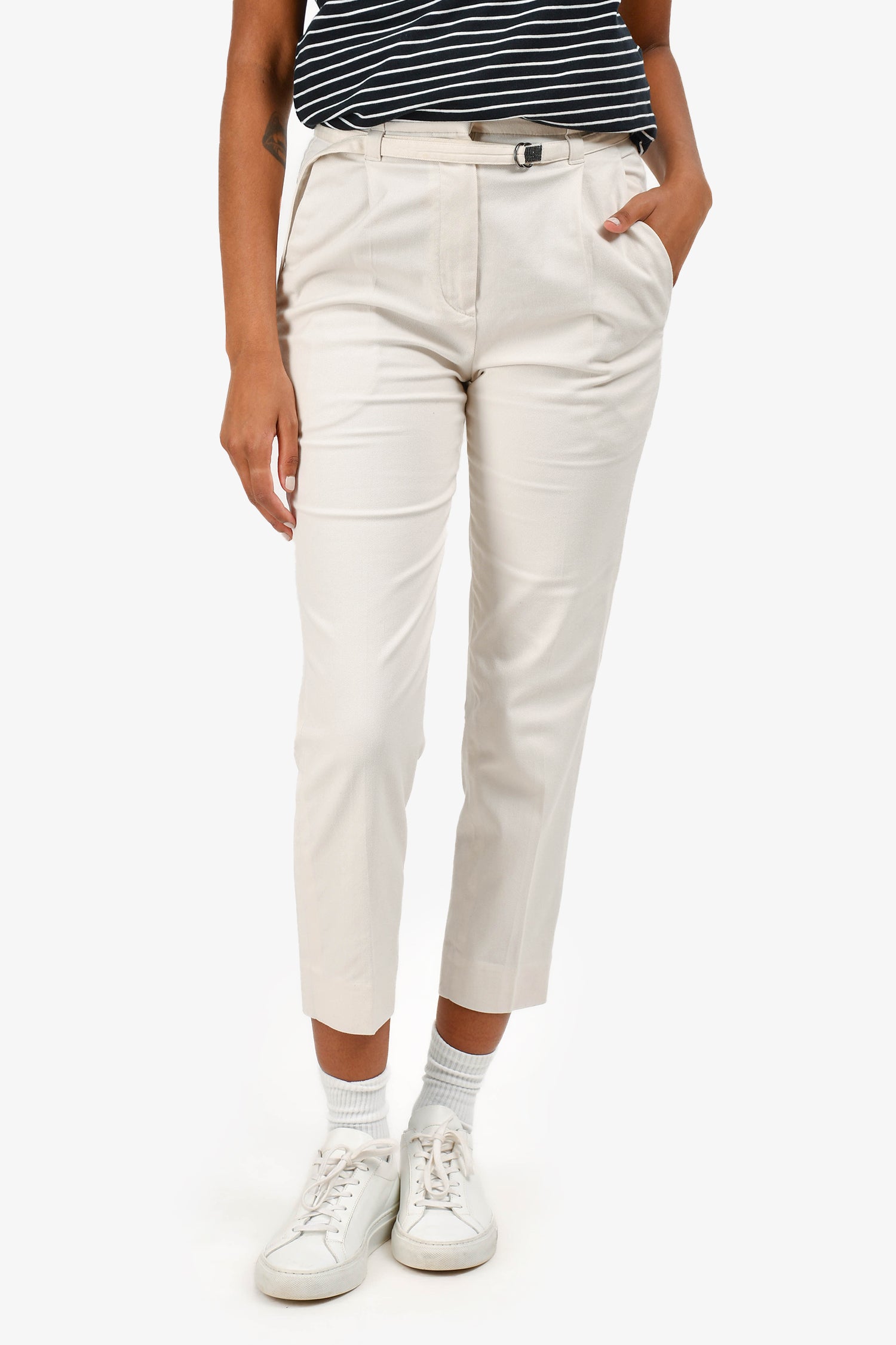 Brunello Cucinelli Cotton Highwaisted Belted Pants Size 0