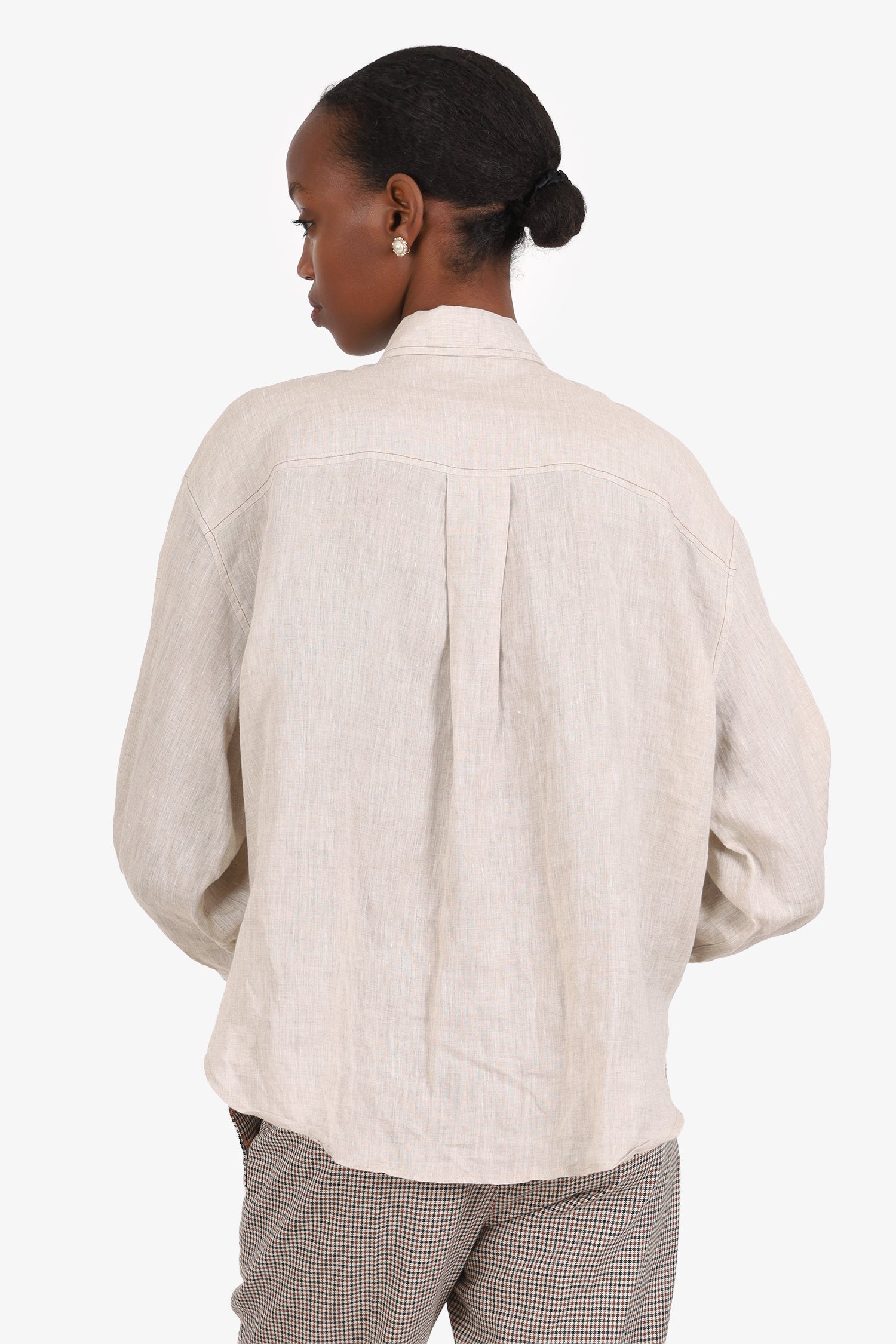 Brunello Cicinelli Beige Linen Beaded Detail Blouse Size XS