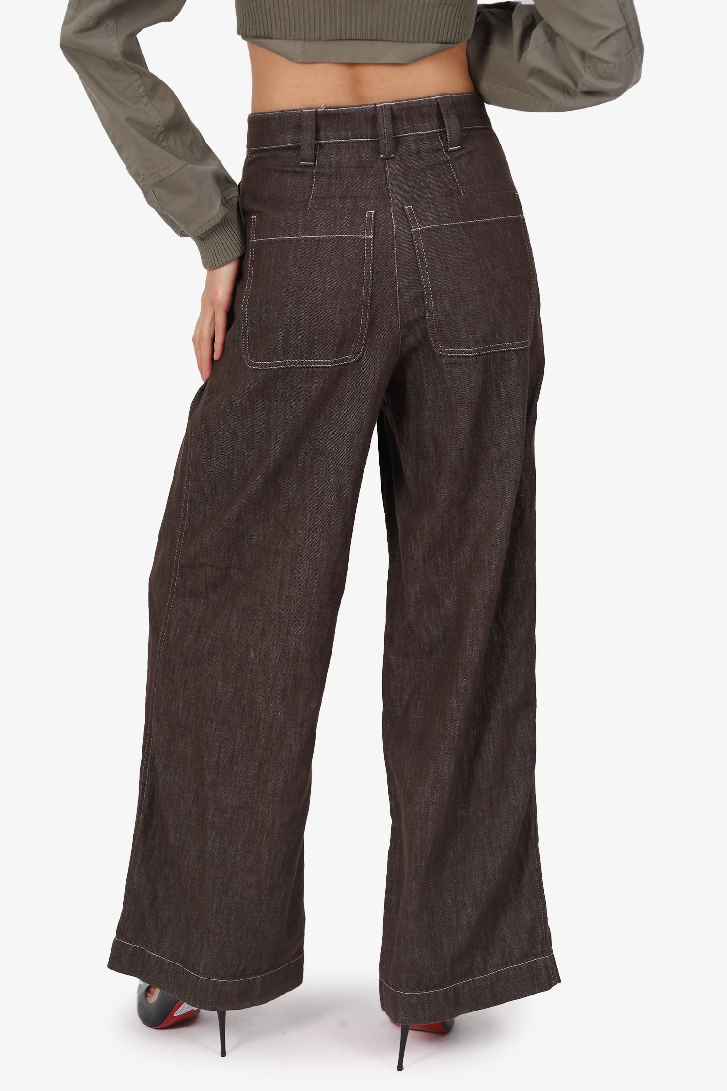 Brunello Cicinelli Brown Denim High Waisted Wide Leg Trousers Size 38