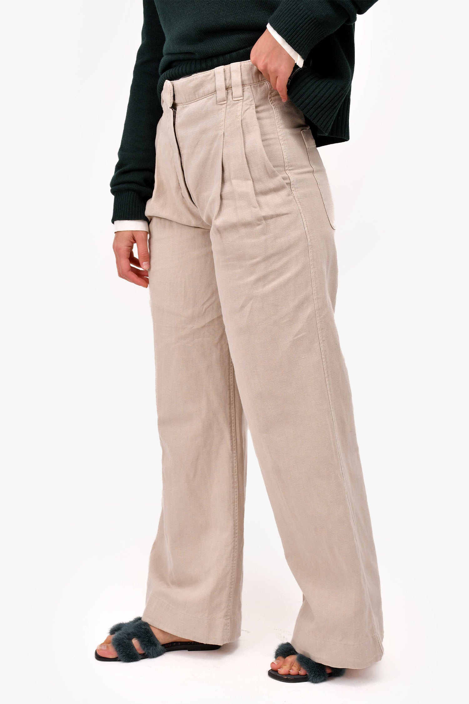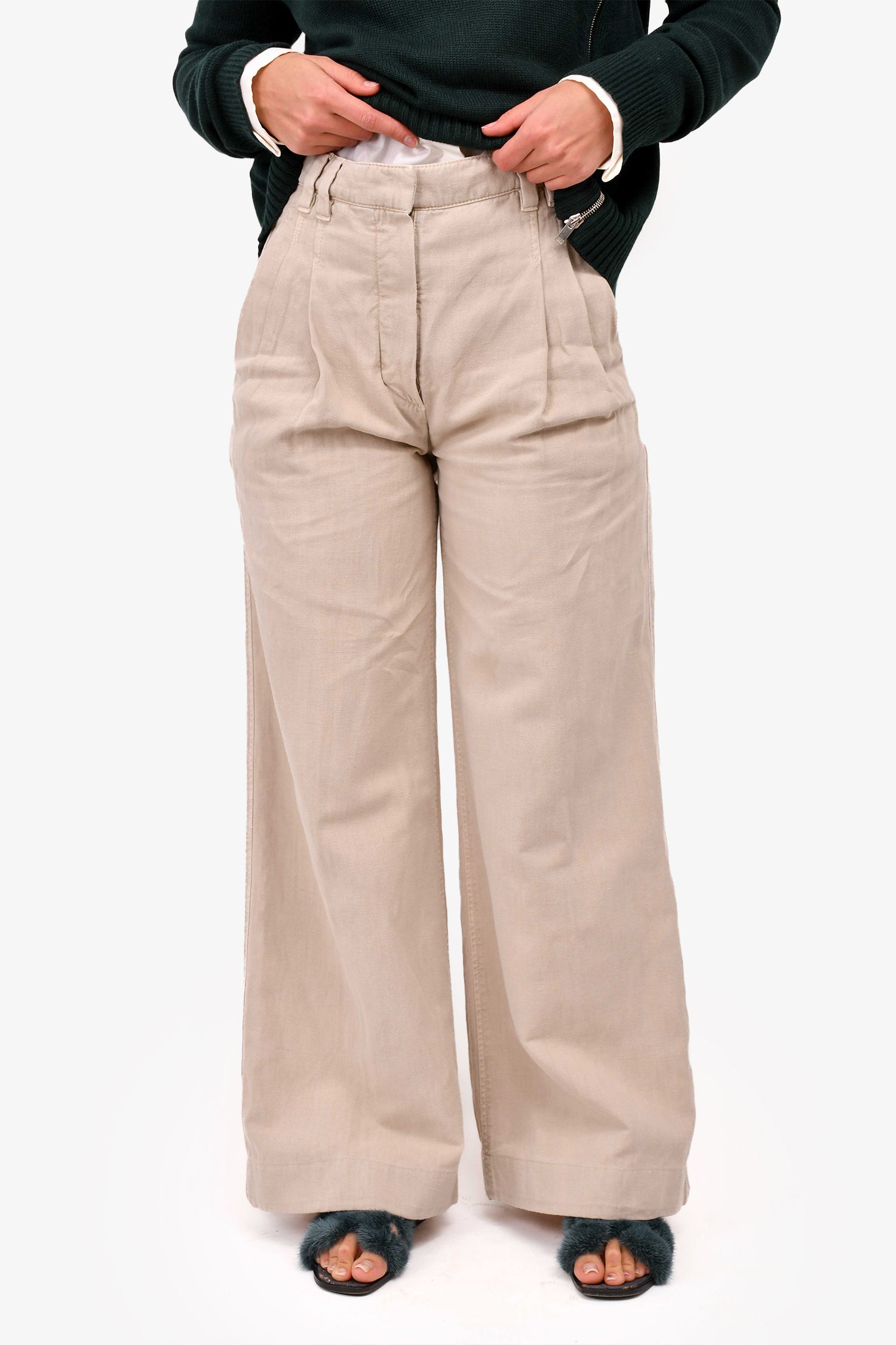 Brunello Cucinelli Beige Cotton Blend Pleated Pants Size 0 (As Is)