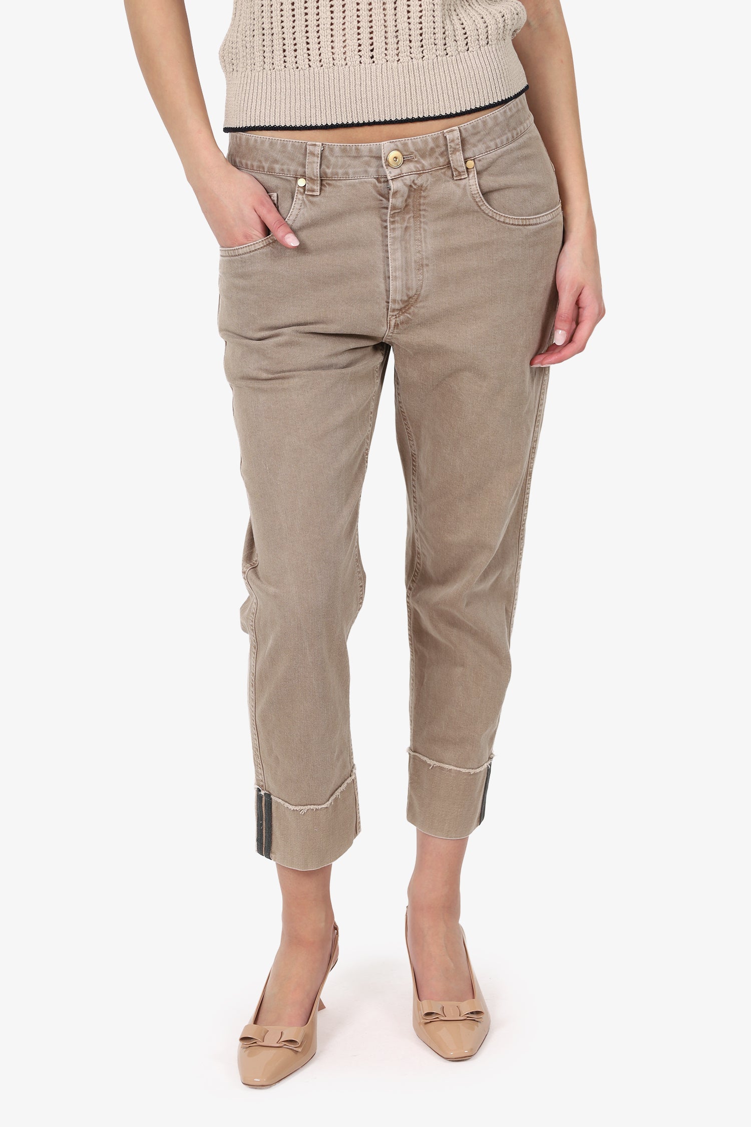 Brunello Cucinelli Beige Denim Cropped Jeans Size 6