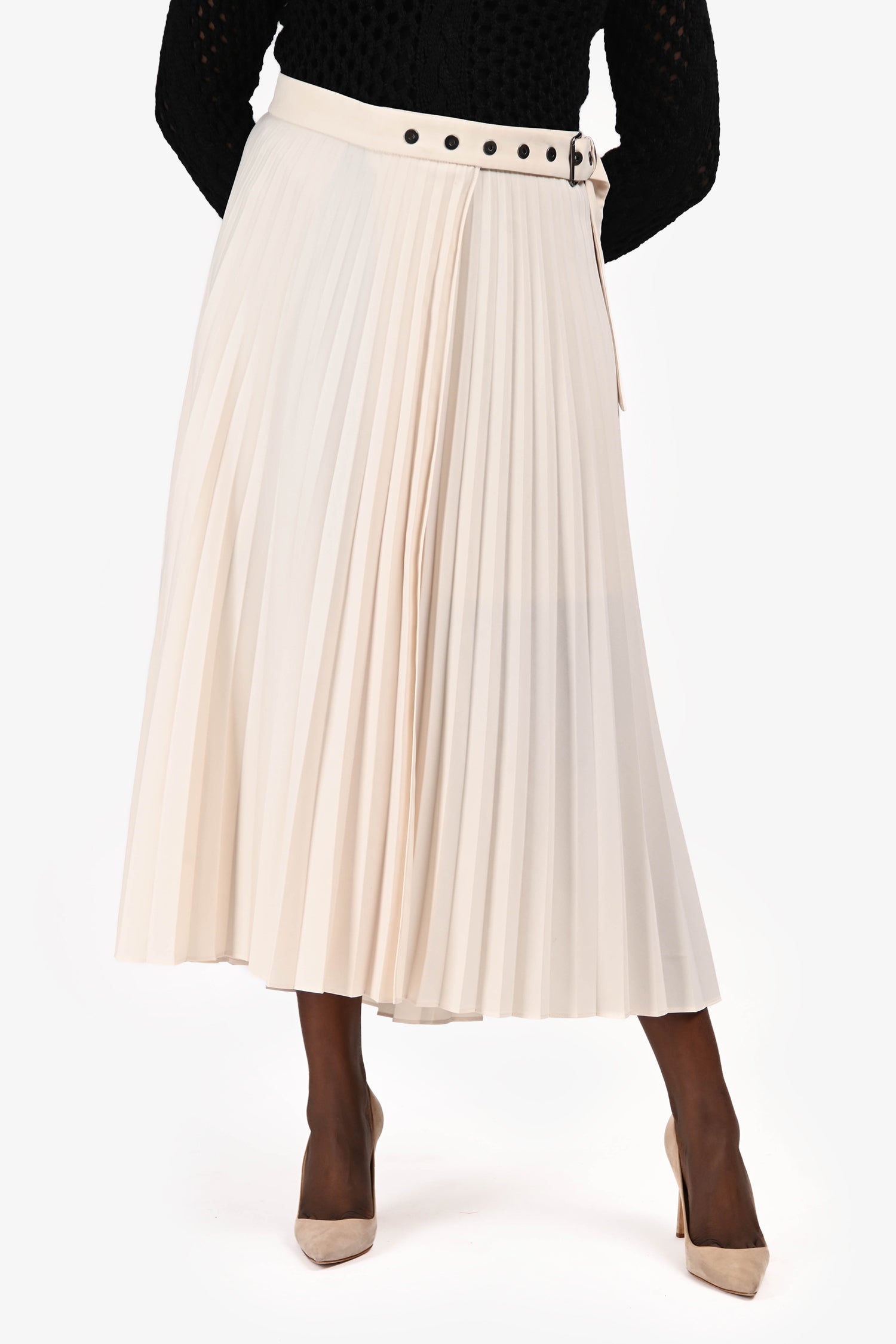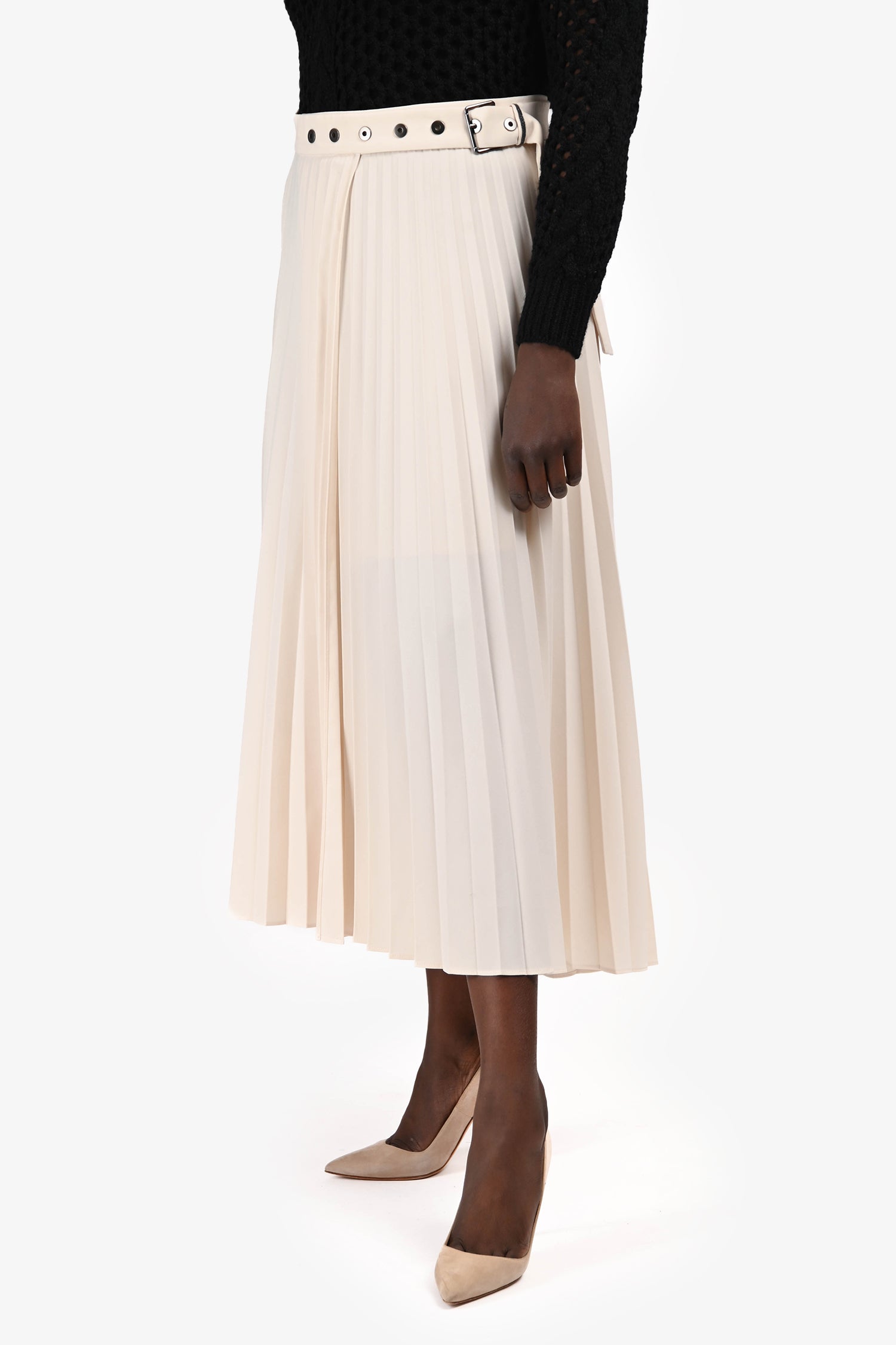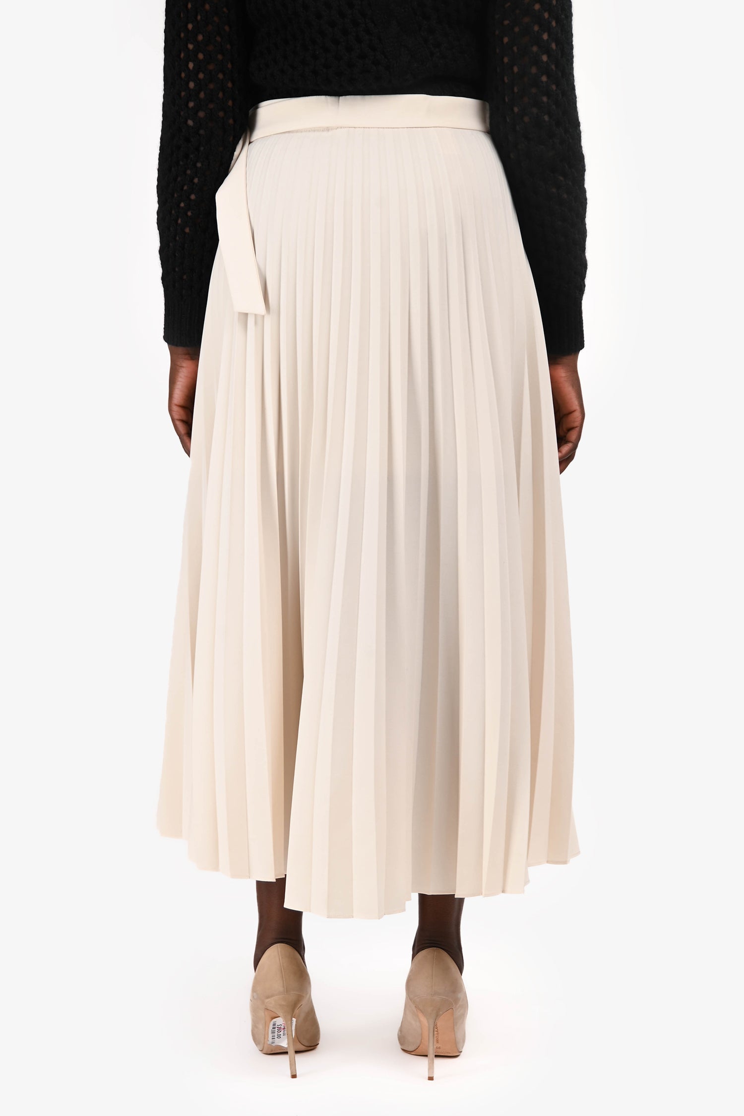 Refresh availabilityBrunello Cucinelli Beige Pleated Maxi Skirt. Pull-on. Hidden button closure in the front. Adjustable belt detailing at the waist. Partly lined. Silver-tone hardware. Tonal stitching.
