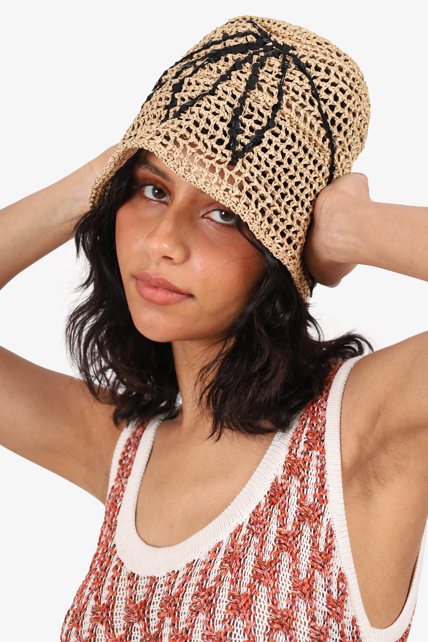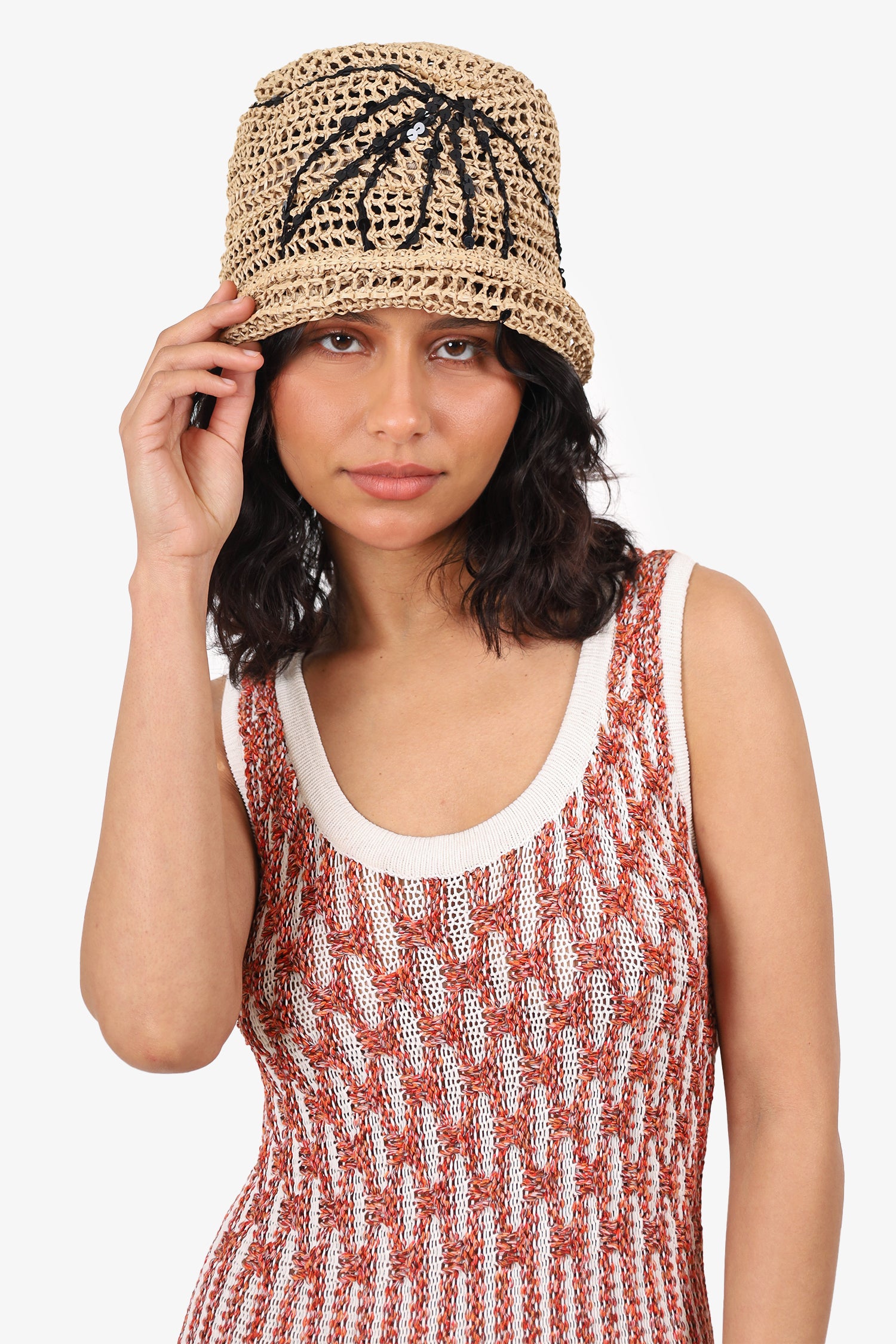 Brunello Cucinelli Beige Raffia Sequin Bucket Hat Size M